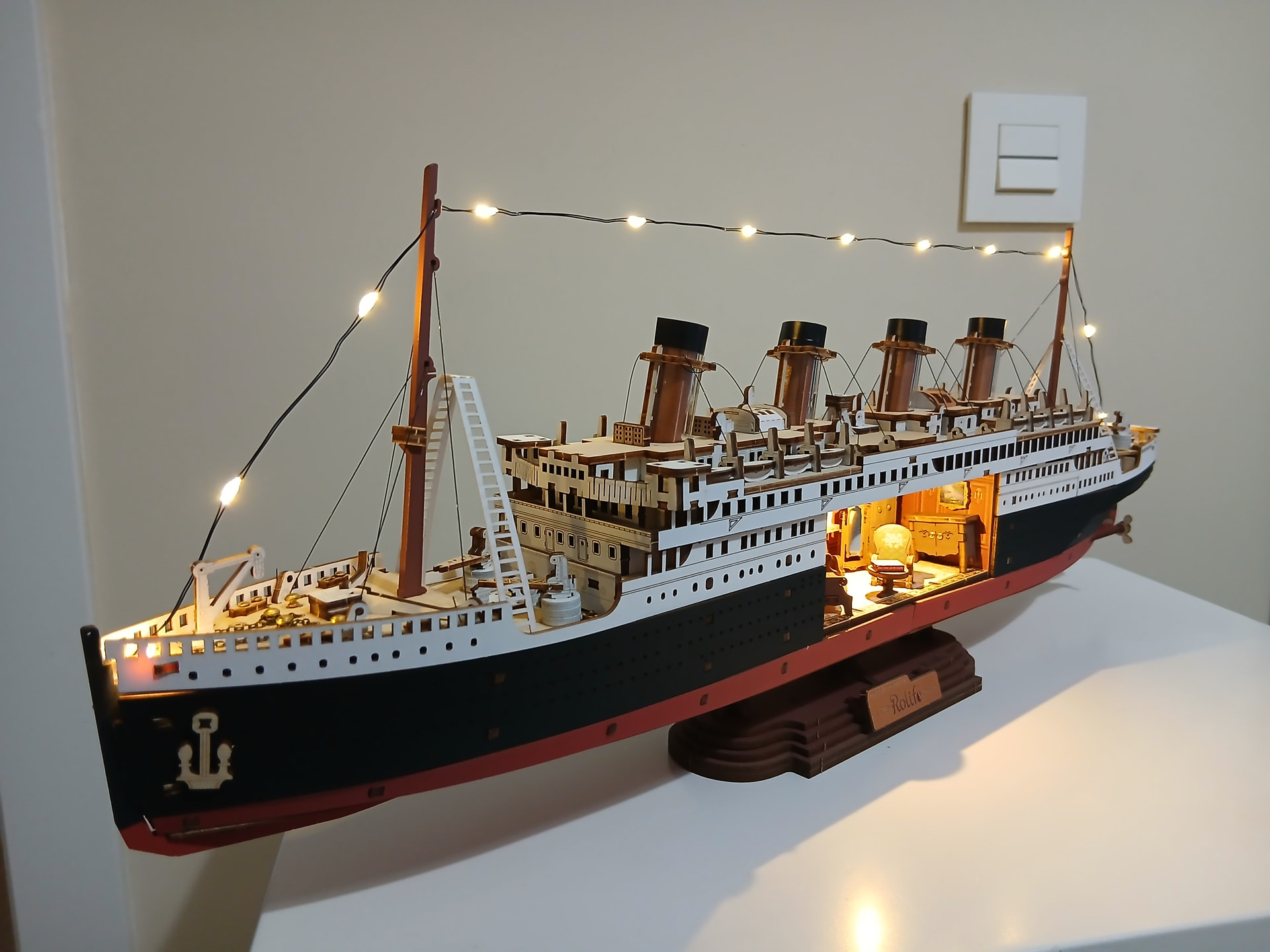 I was really happy of the result. The cord of lights was… Tricky to attach to the front of the ship due to the really tiny gap through which you need to hook it, but it does the job. The chimnets were also tricky yet fun to put together. It really is a wonder of a kit… Even when my red part of the hull remains “crooked”, but it’s not affecting the whole image so I’m not that bugged about it.
