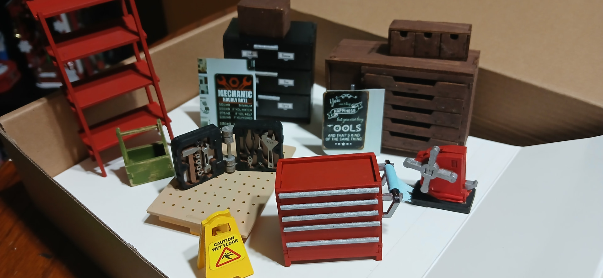 Loving the changes you’ve made, and the idea of the toothpicks painted silver really make the tool box feel more authentic. I also love the aged look to the green carry box because who has heard of a garage where everything is spic and span?