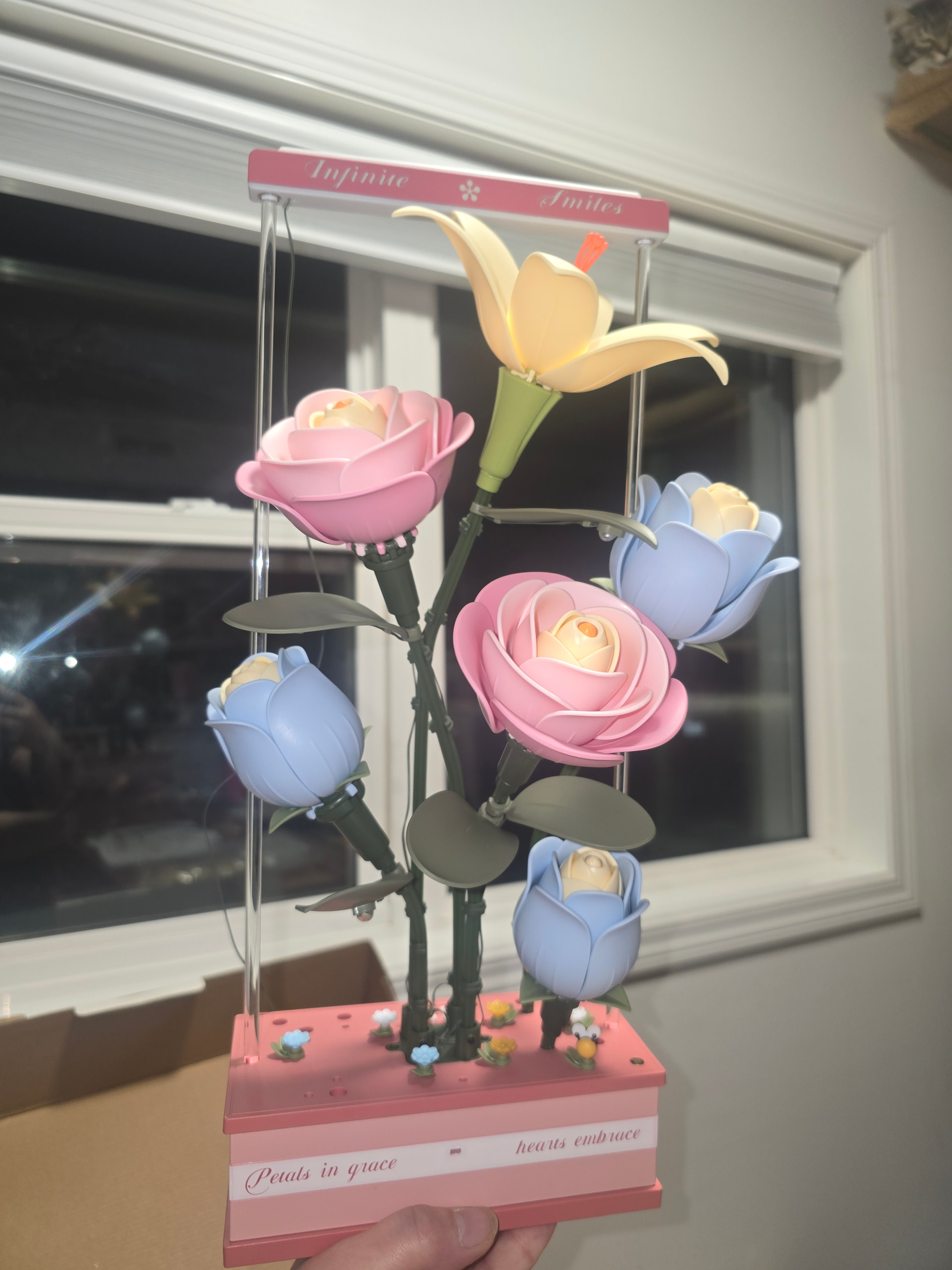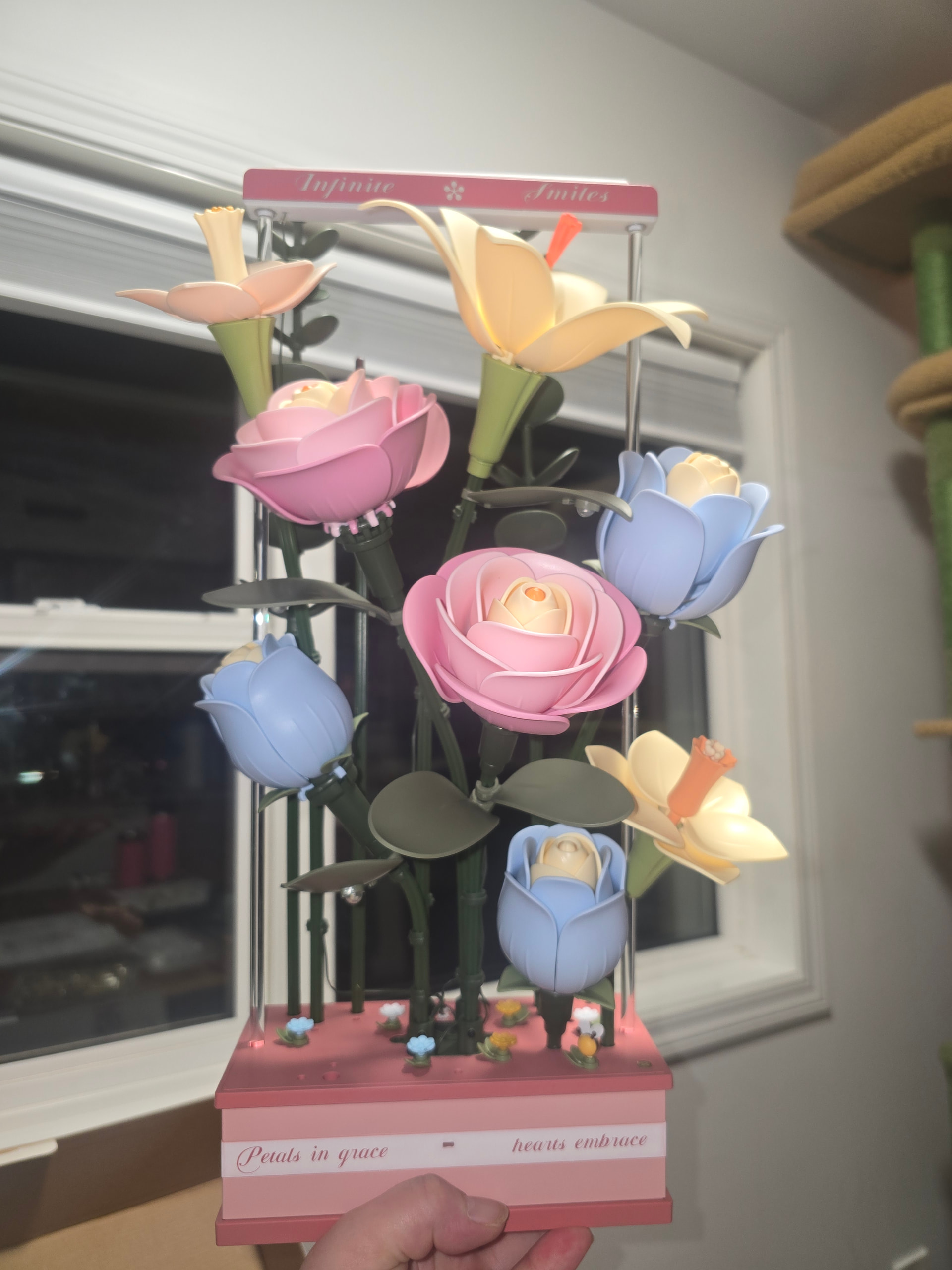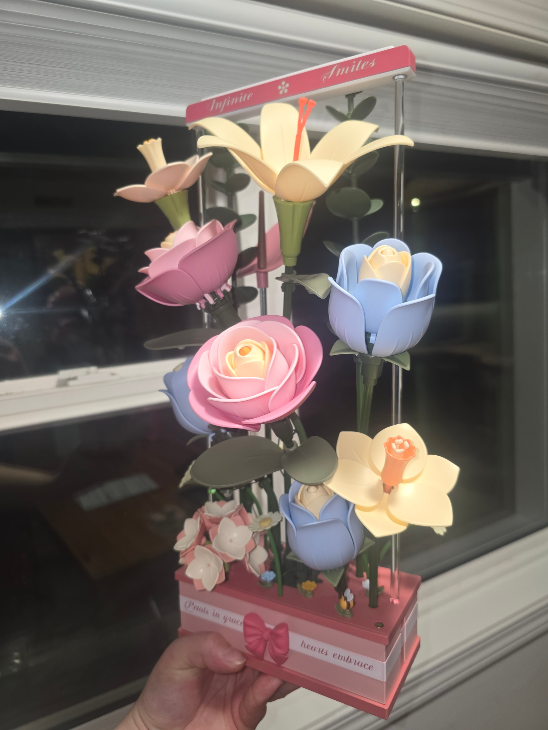 After doing my meet-up, I was able to get this amazing build! I’ve always had eyes on this build since I started The moving flowers have have intrigued me! Im so happy I could finally build it, its now living has my nighttime lamp