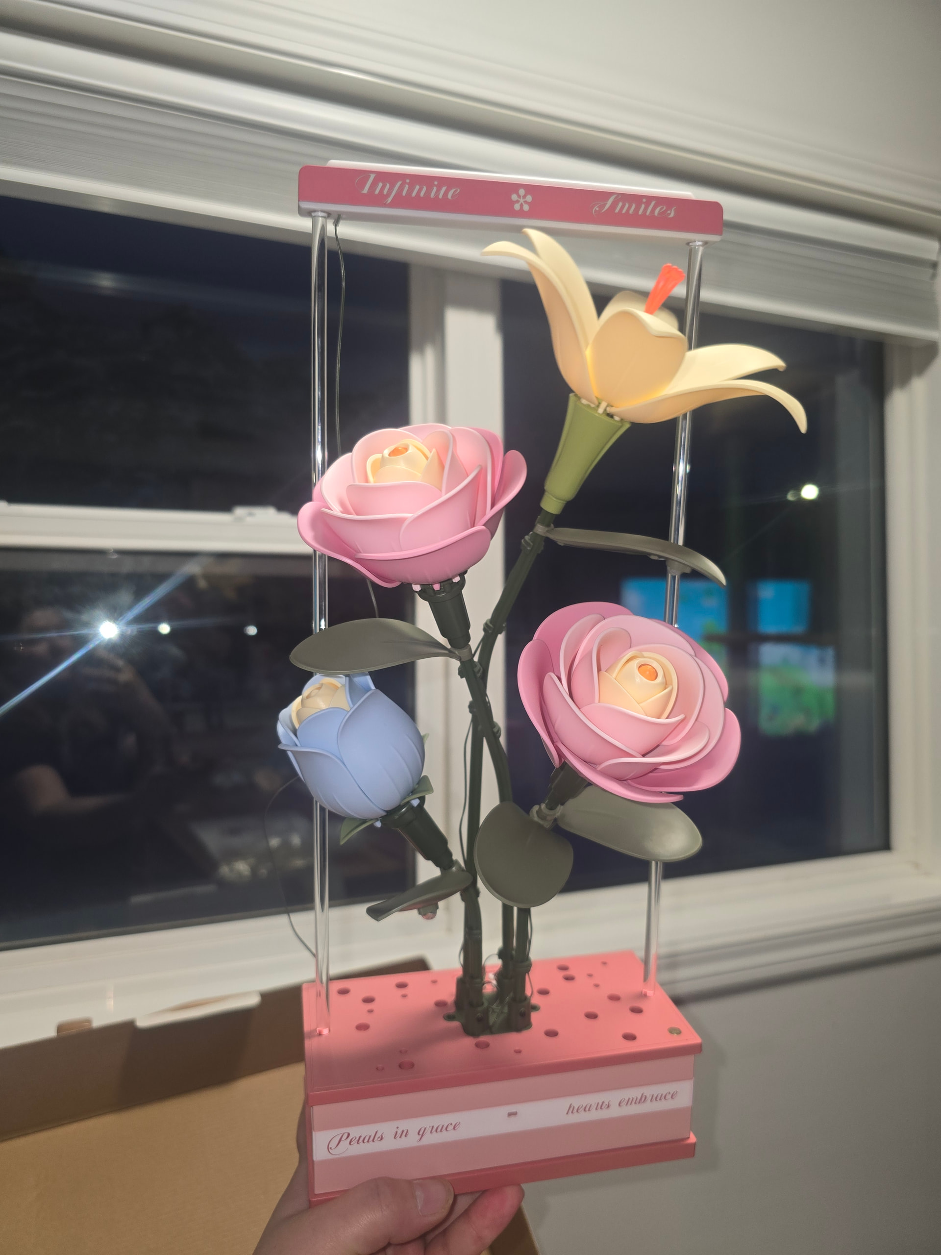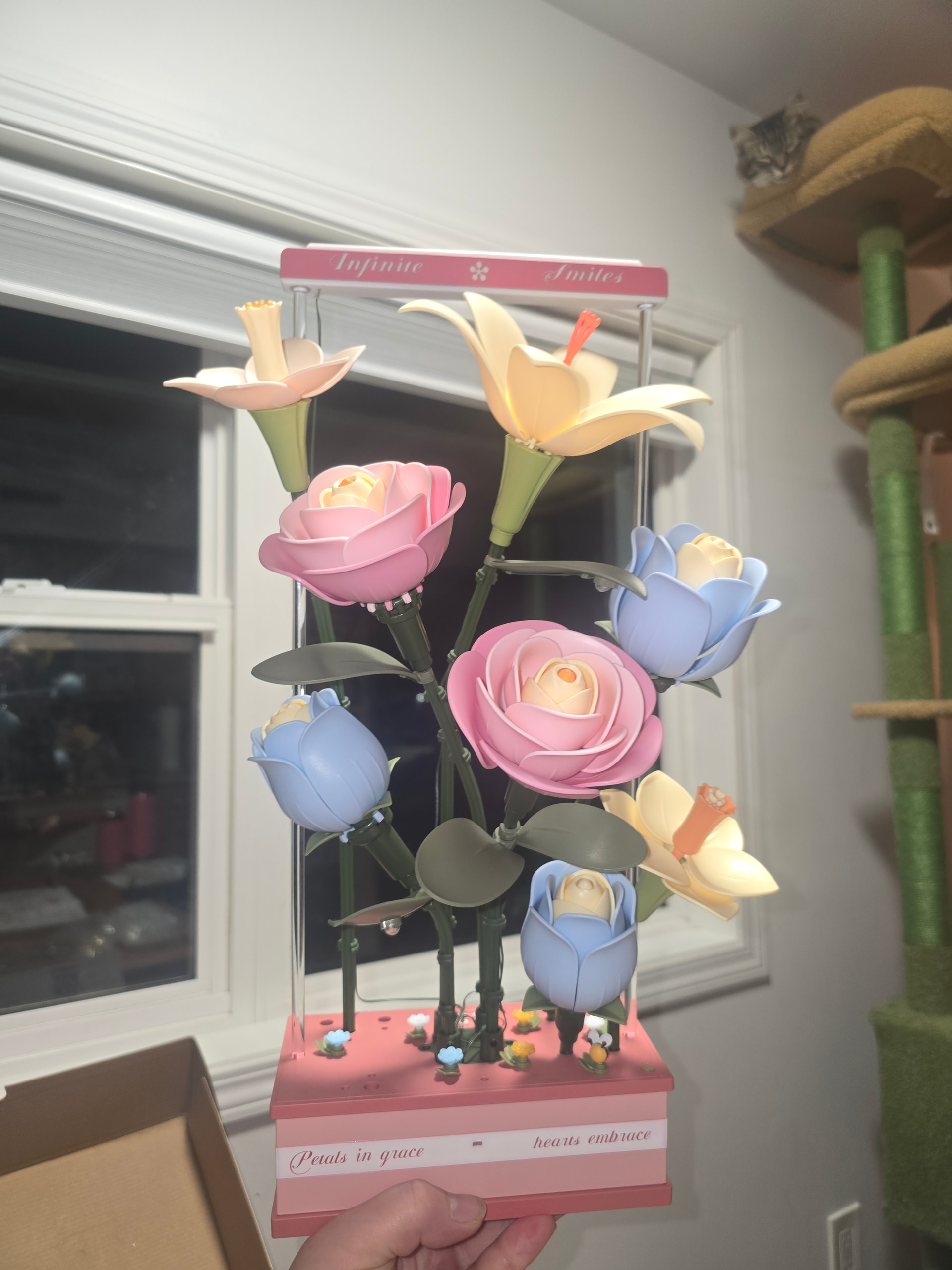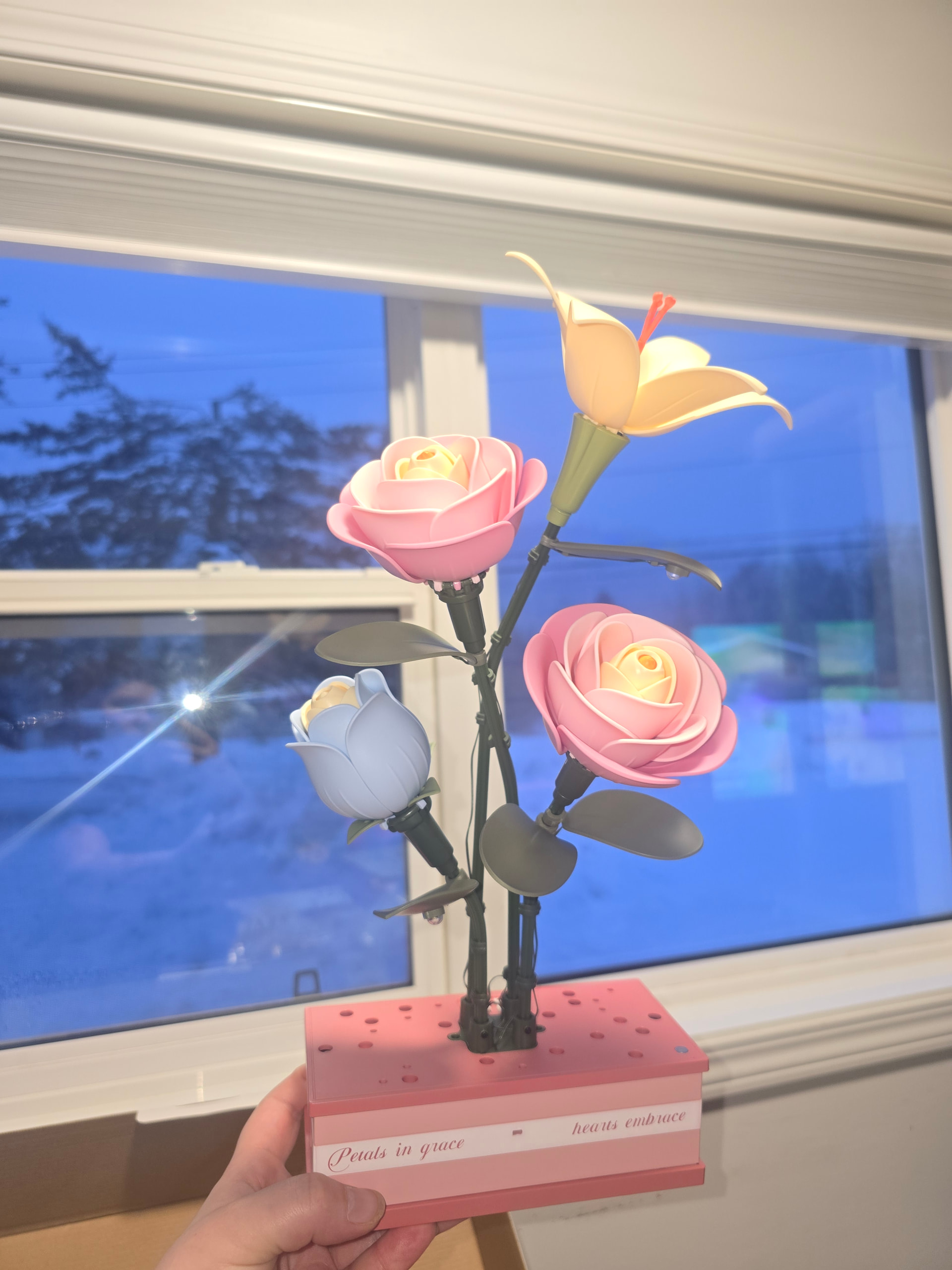 After doing my meet-up, I was able to get this amazing build! I’ve always had eyes on this build since I started The moving flowers have have intrigued me! Im so happy I could finally build it, its now living has my nighttime lamp
