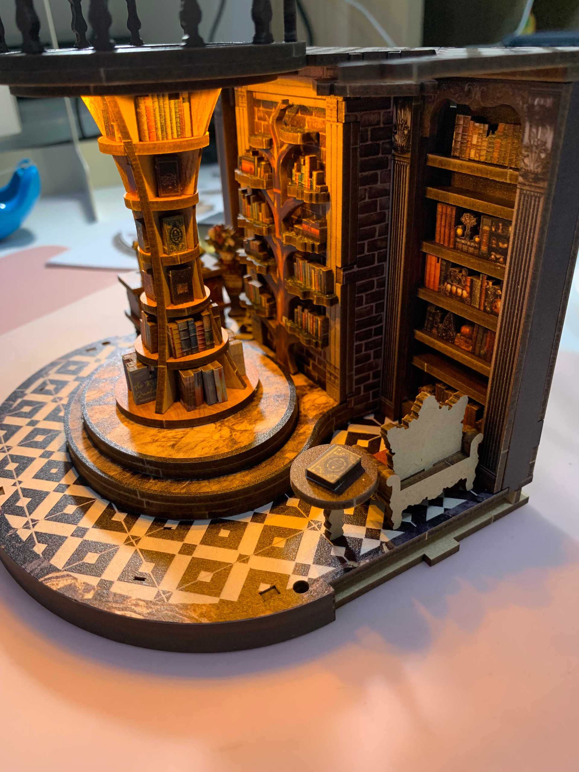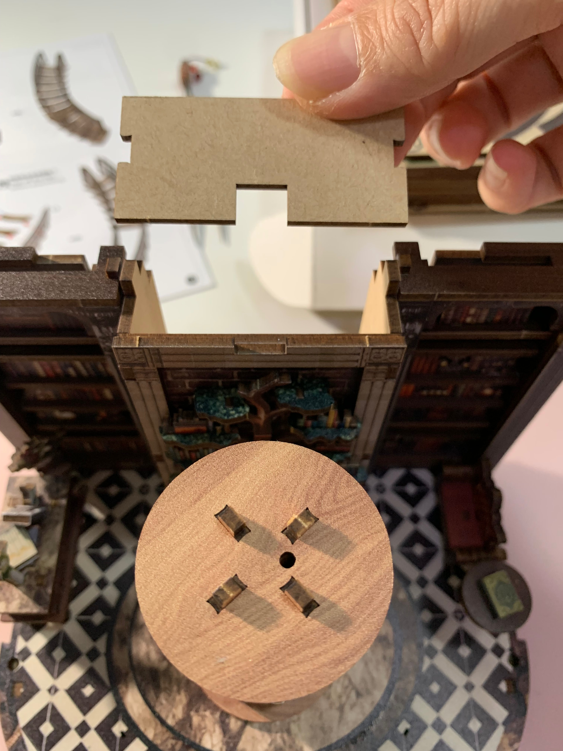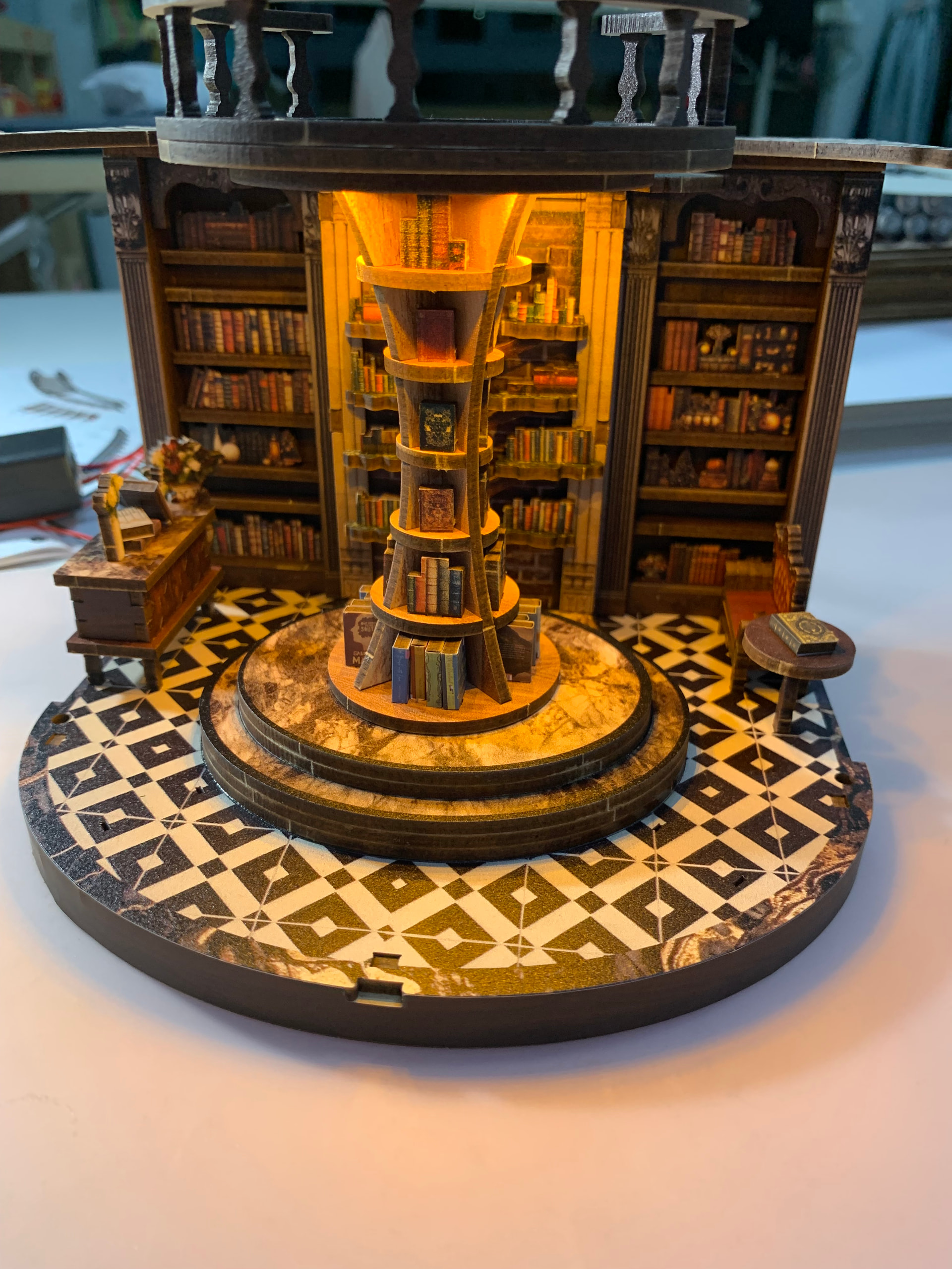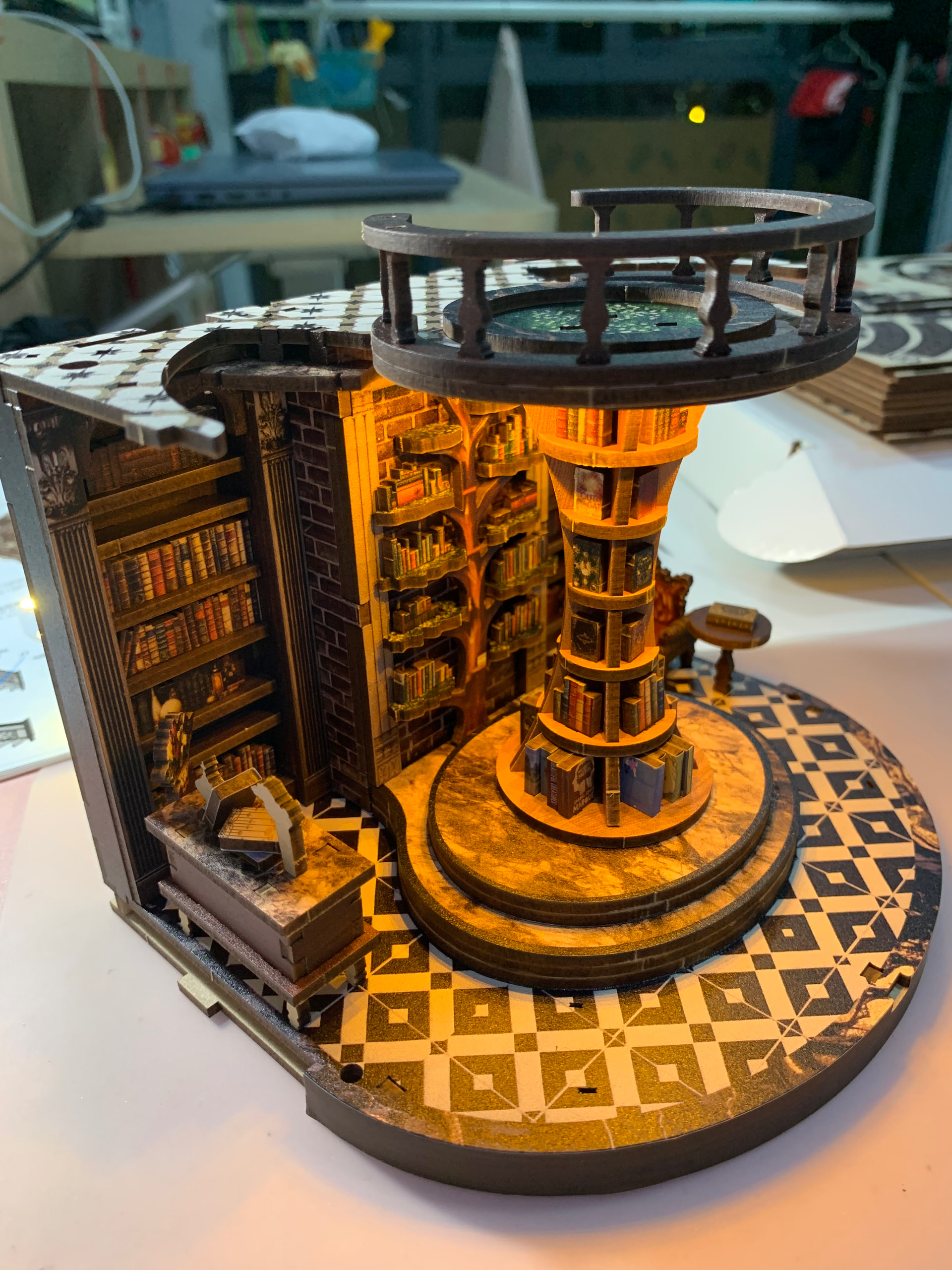 Place & glue the round lighting on the backward of the second floor base… glue it… ![]()