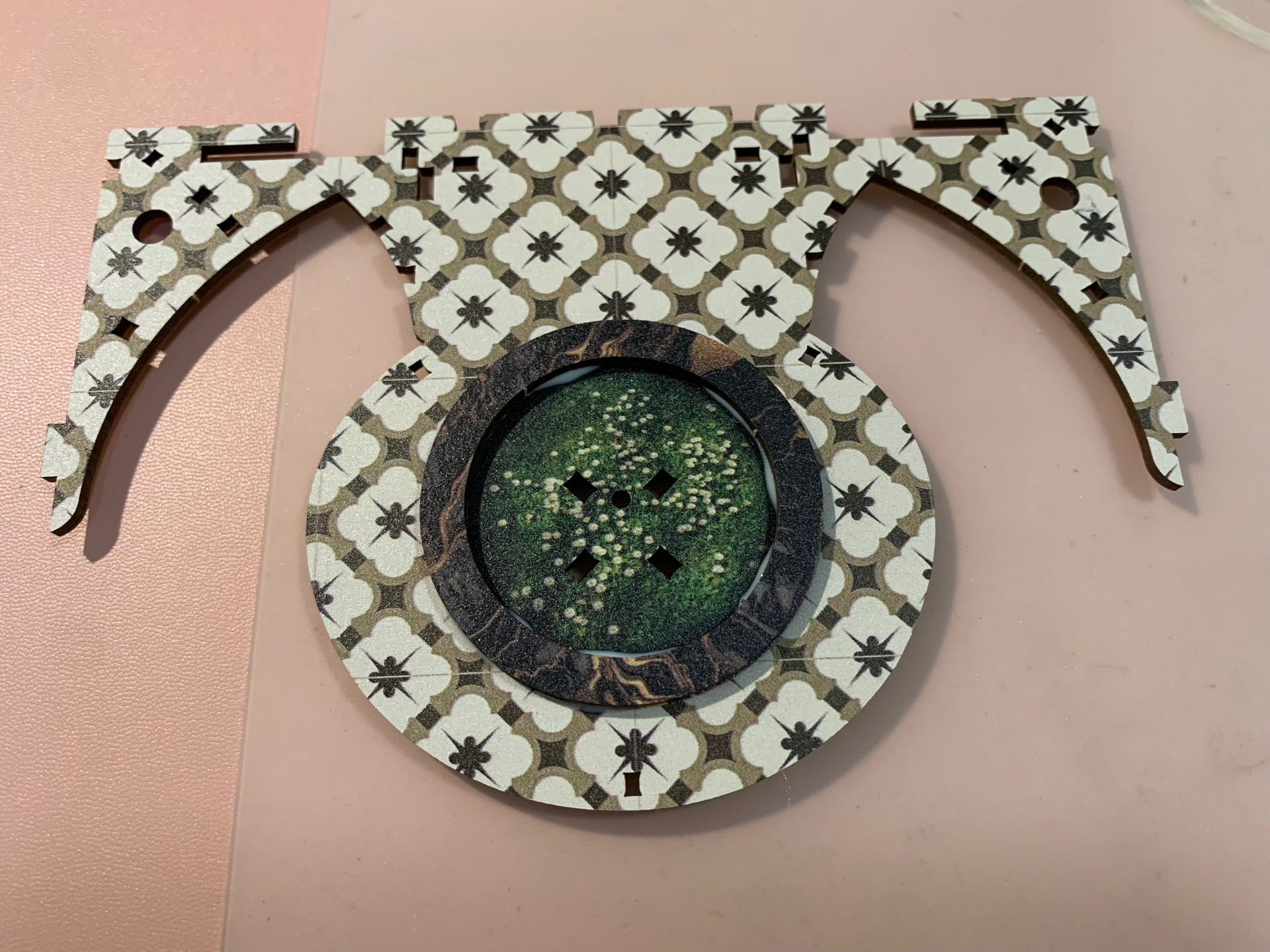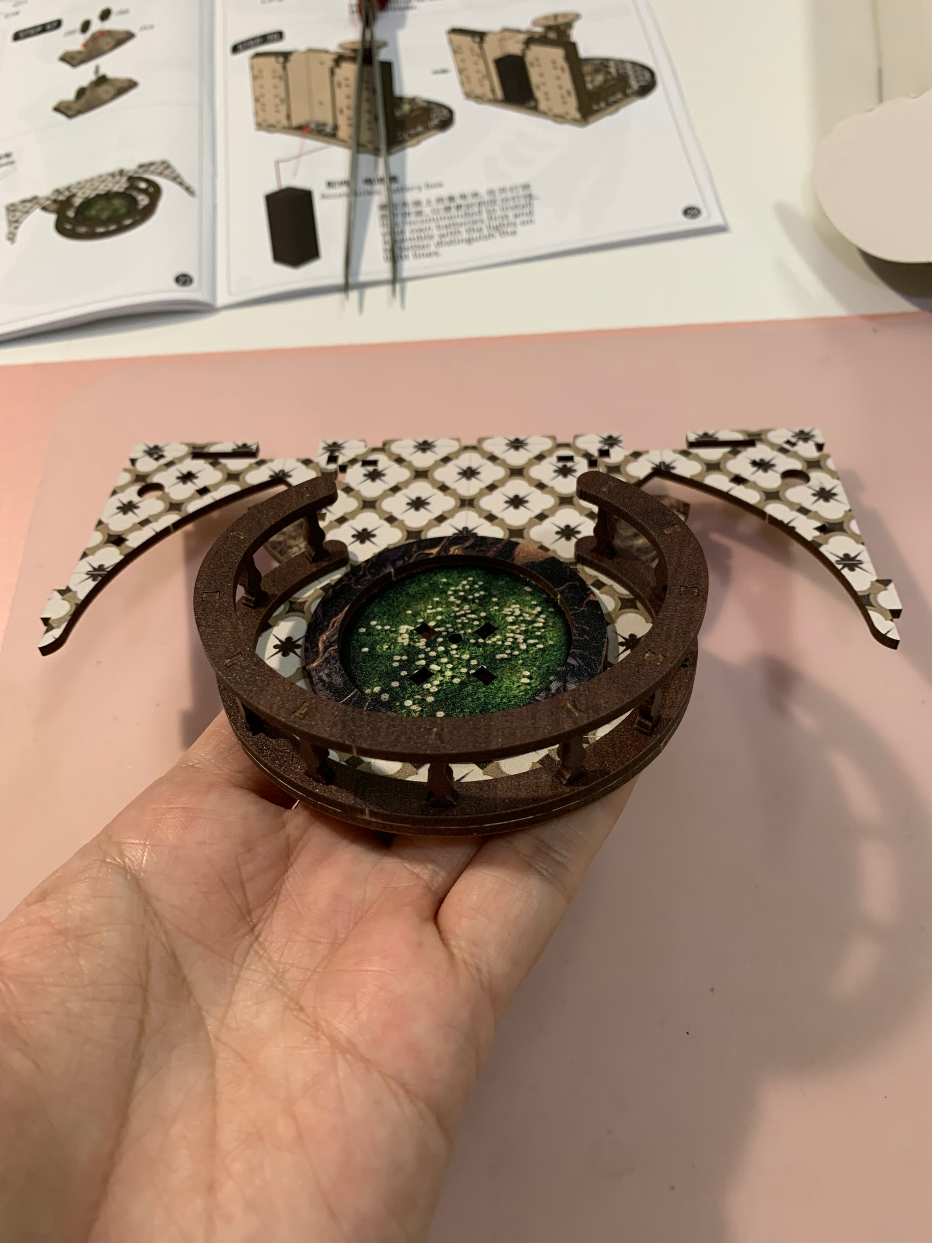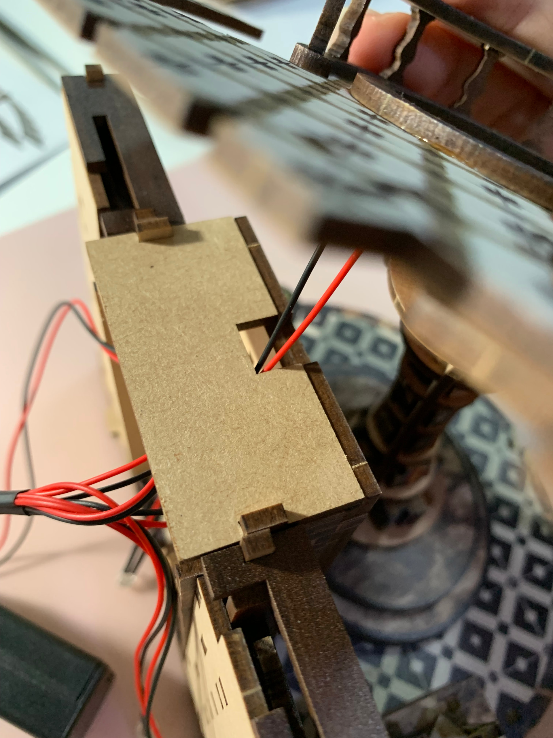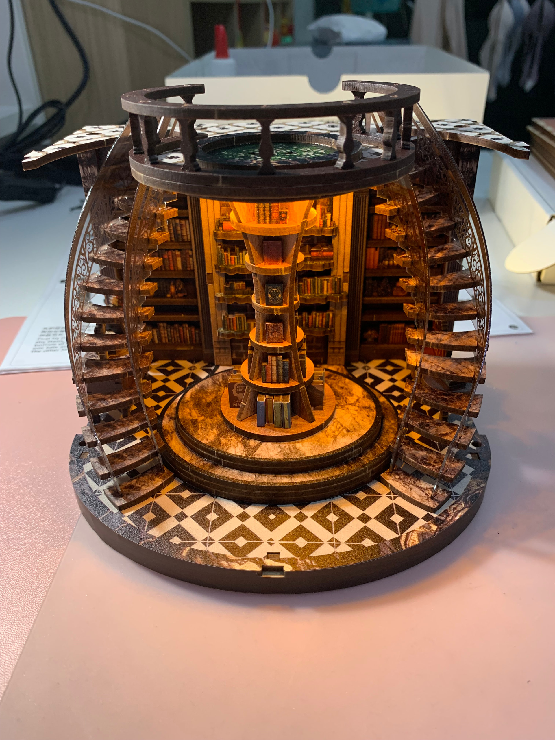 Place & glue the round lighting on the backward of the second floor base… glue it… ![]()
