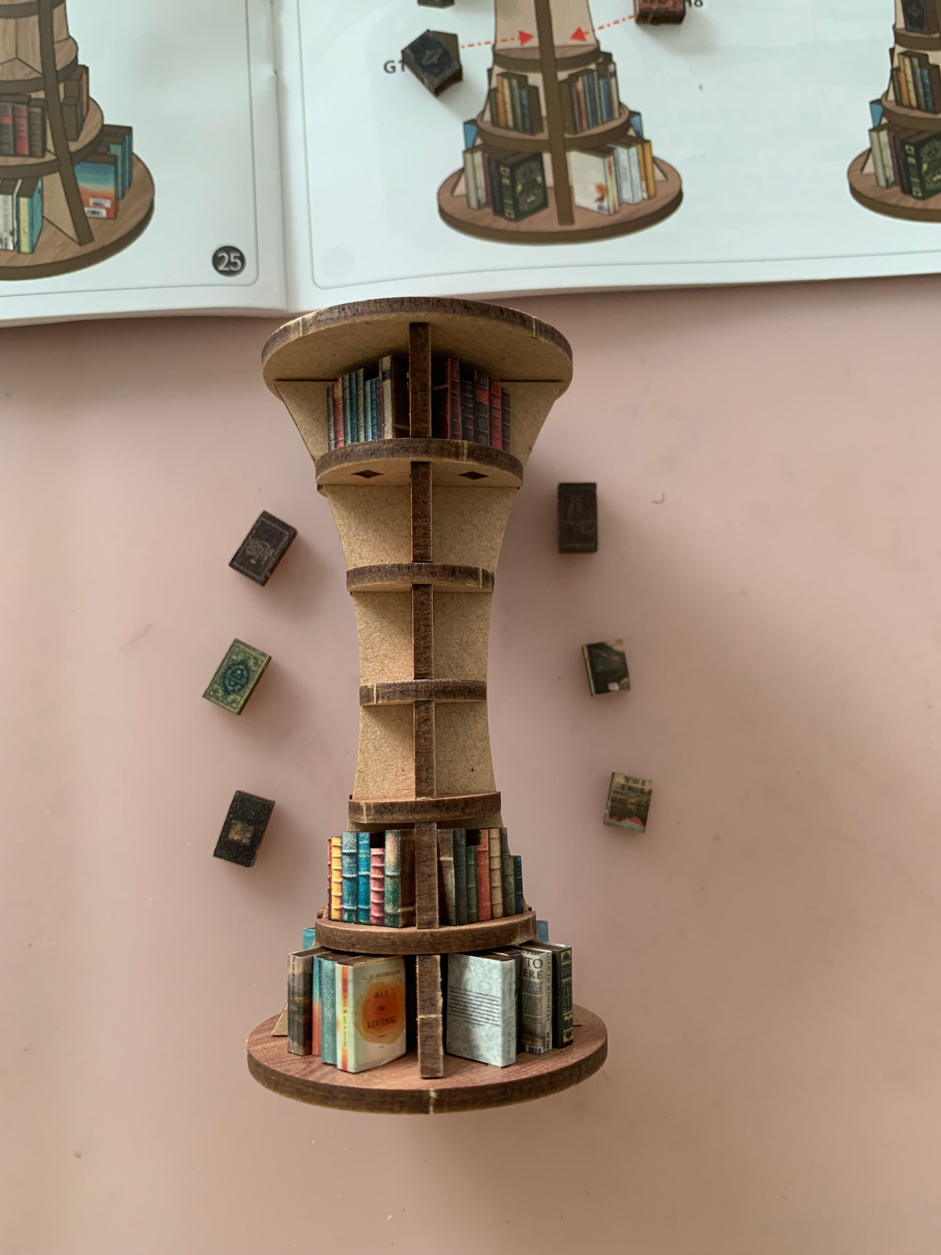 Bookcase will build up from the bottom, need to gather the book around the cycle…