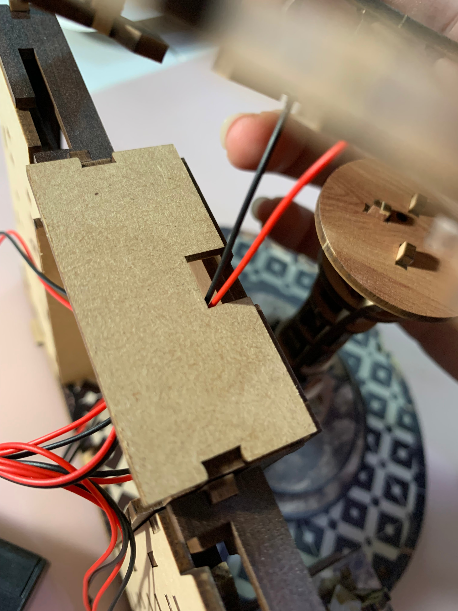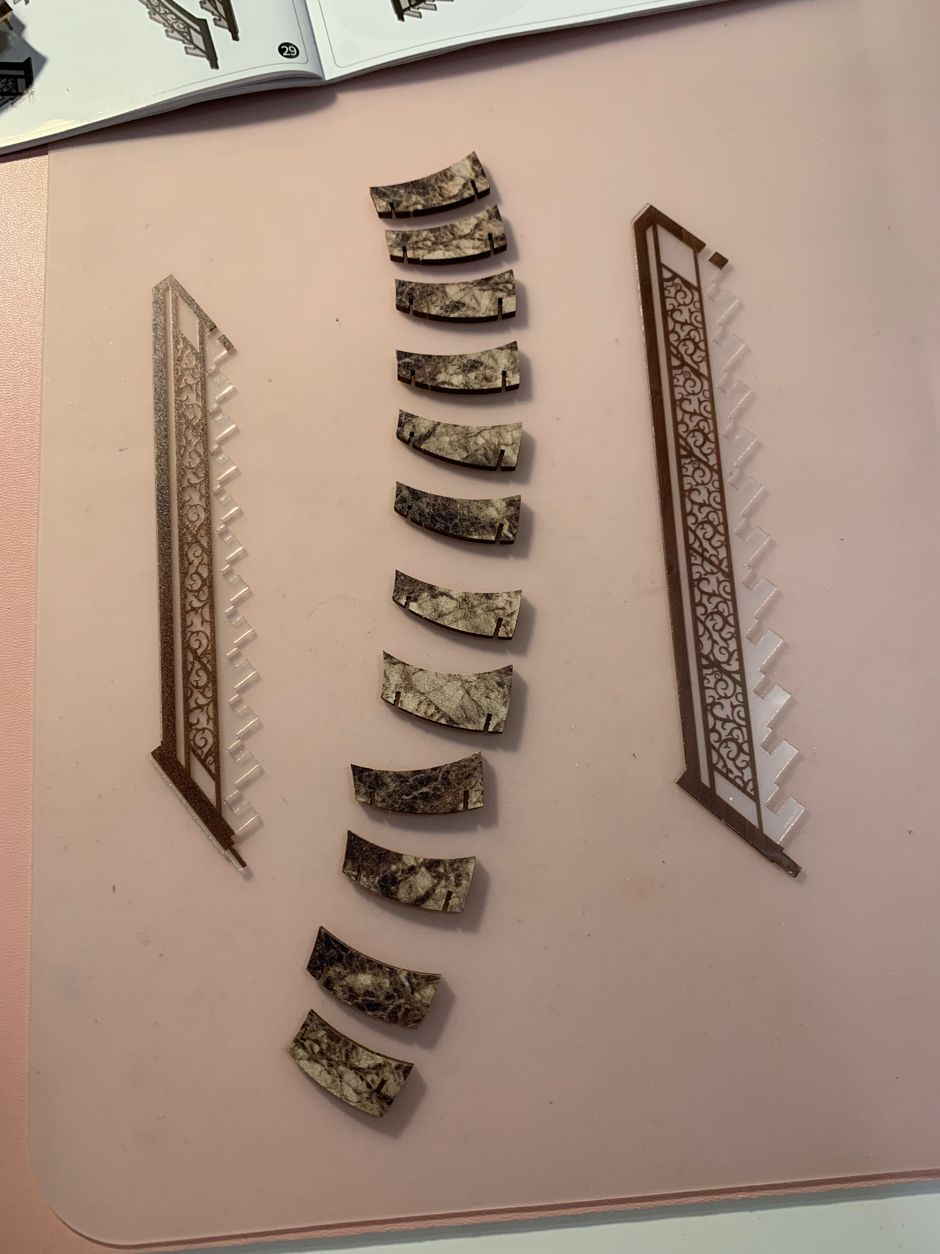 The acrylic pieces need to take off the protection plastic before the assembly… it not too hard & easy to band for the shape…