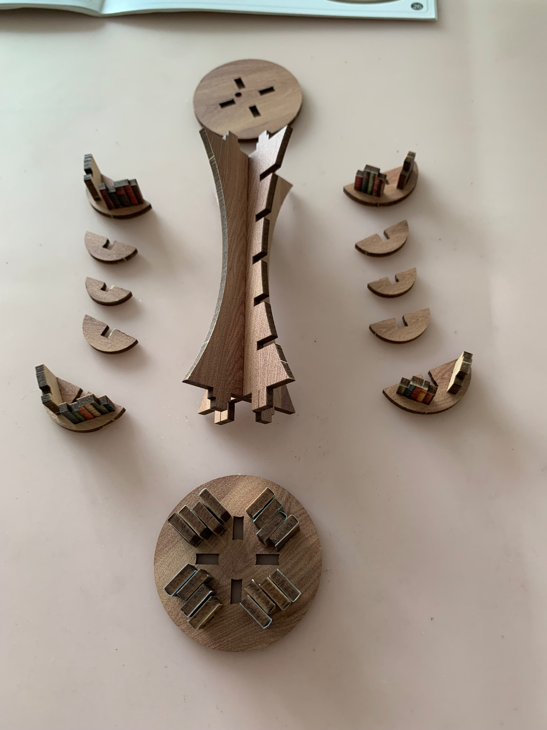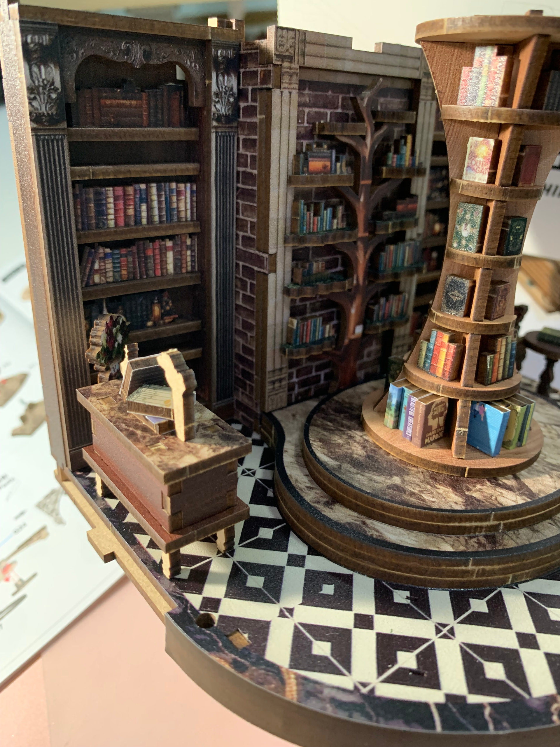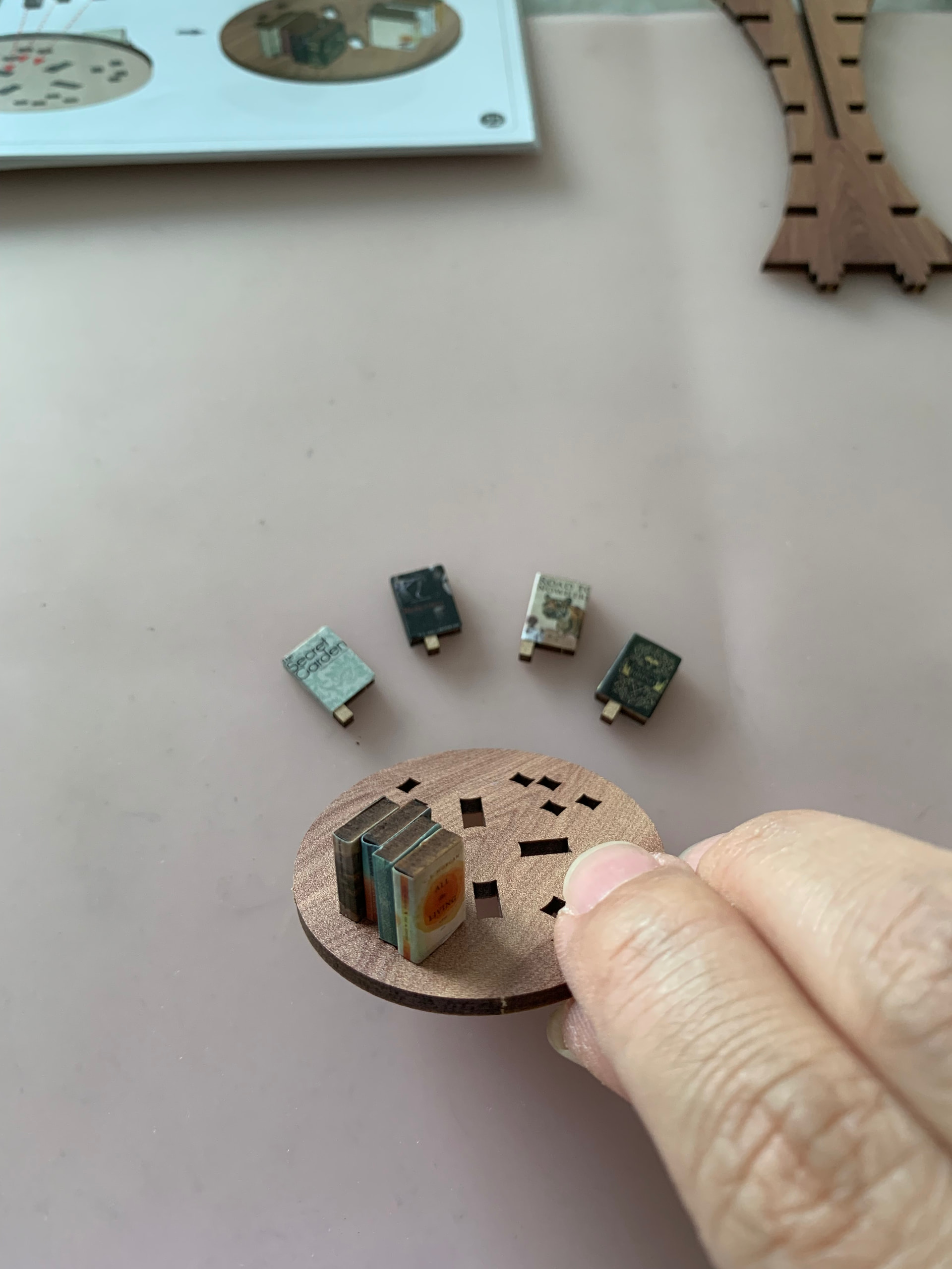 gather all the apart to completed the whole bookcase & use the glue to stick the book on the empty layer…