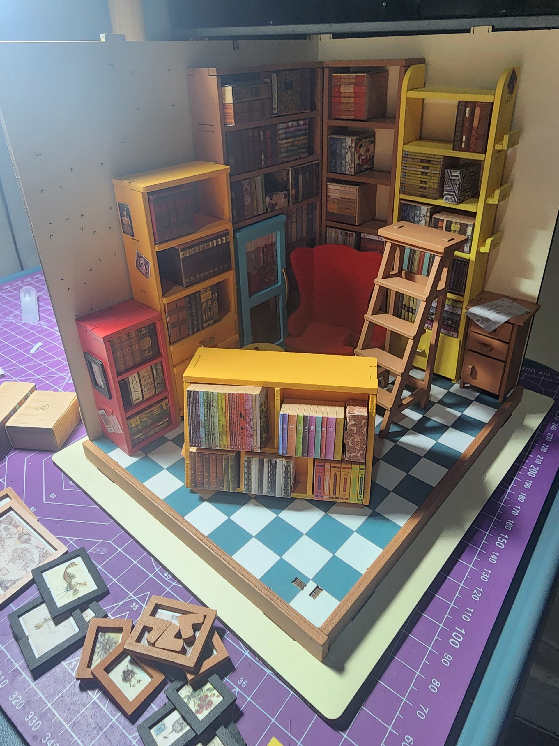 The tricky part for me with kits like this is the final assembly especially placing all the books. I tried following the instruction photos exactly, but it’s not always 100% the same. In the end, you just match the general type of book or just place them however you like. It still turns out great either way.
