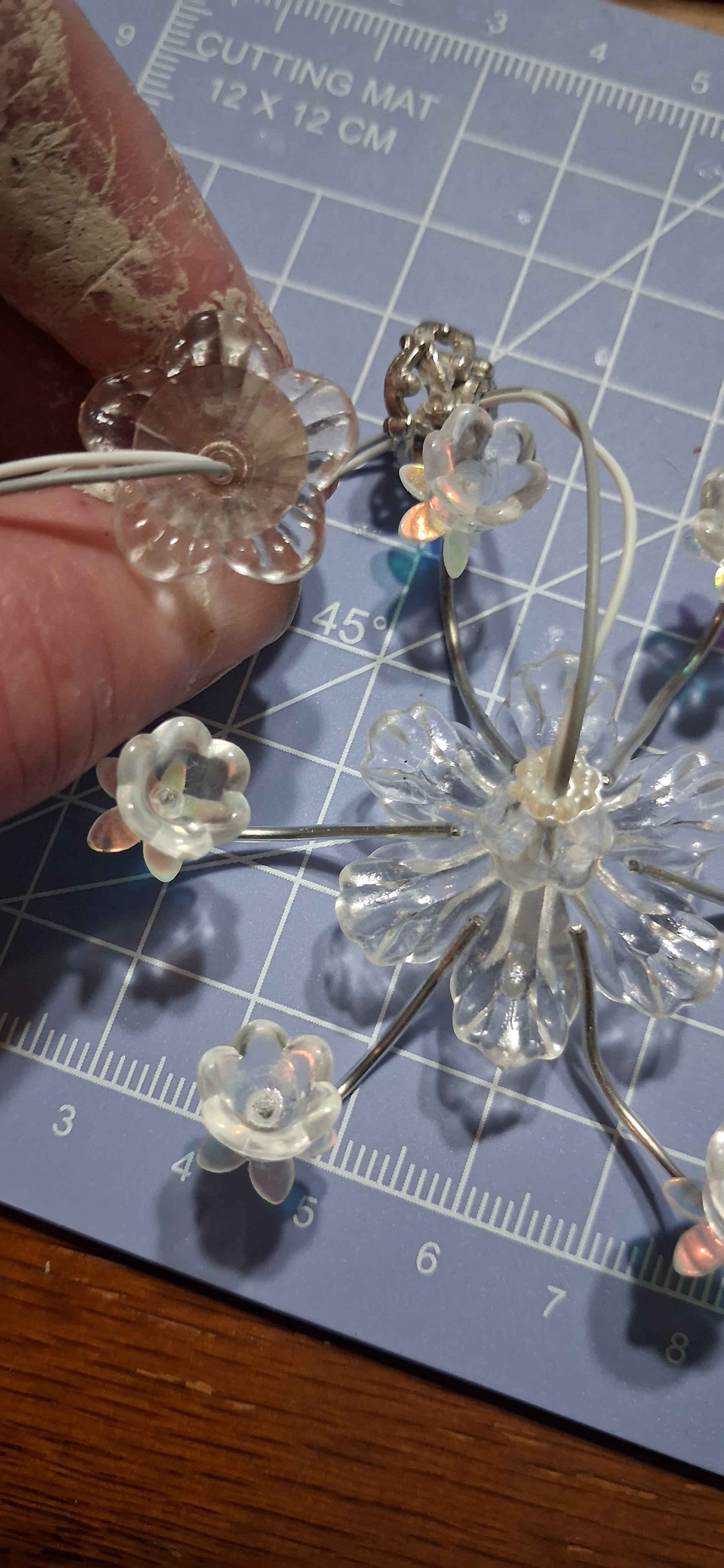 Another thing…I am trying to finish this darn chandelier…BUT they give you 6 pieces to add with only FIVE points on this upper flower (while the lower one has 6)