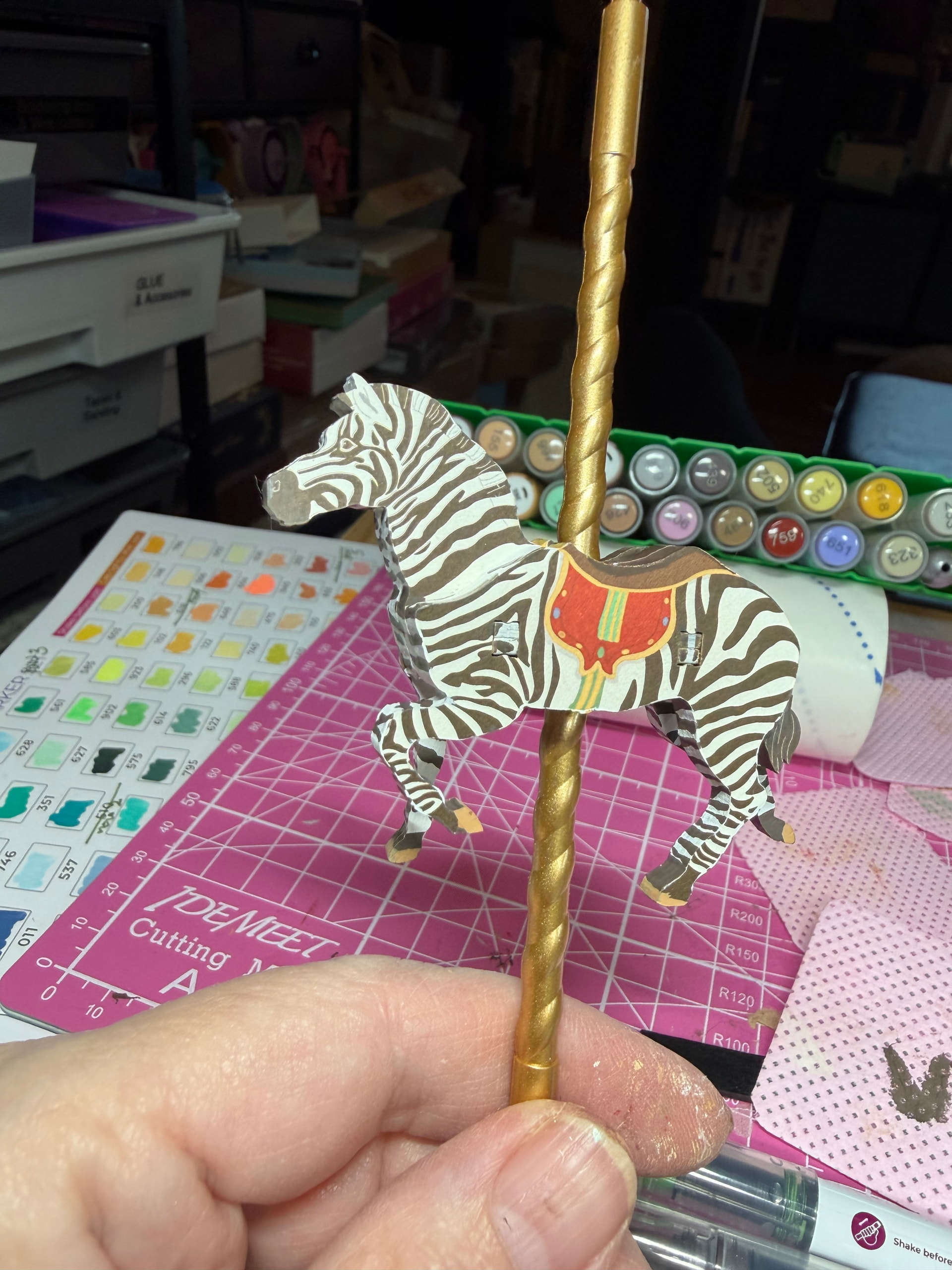 Hi Kim_Kieffer, your zebra looks absolutely stunning with those custom stripes, and I love that you spotted the unique horse that looks like a goat! It is so rewarding to finish an intense project like this without needing a single drop of glue. Your attention to detail and creative flair really brought this carousel to life!