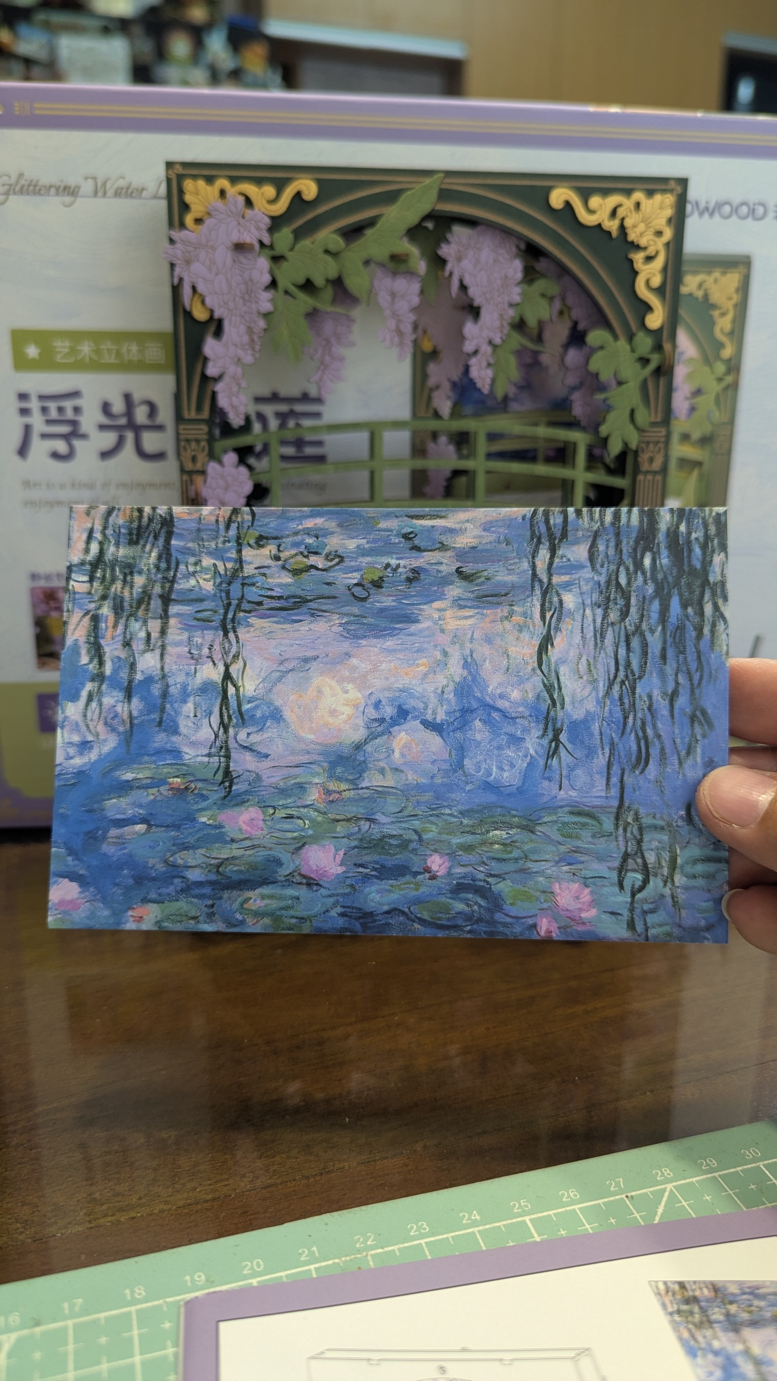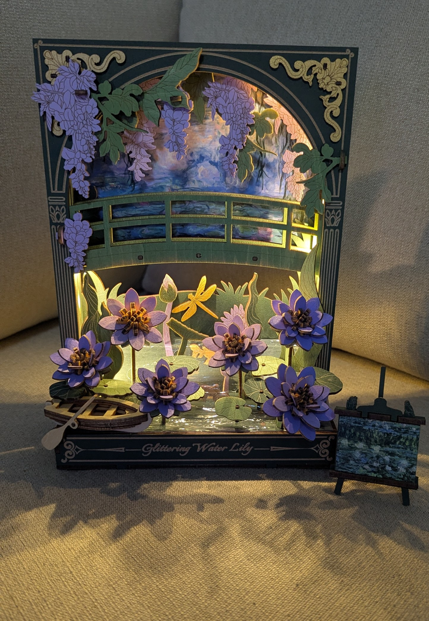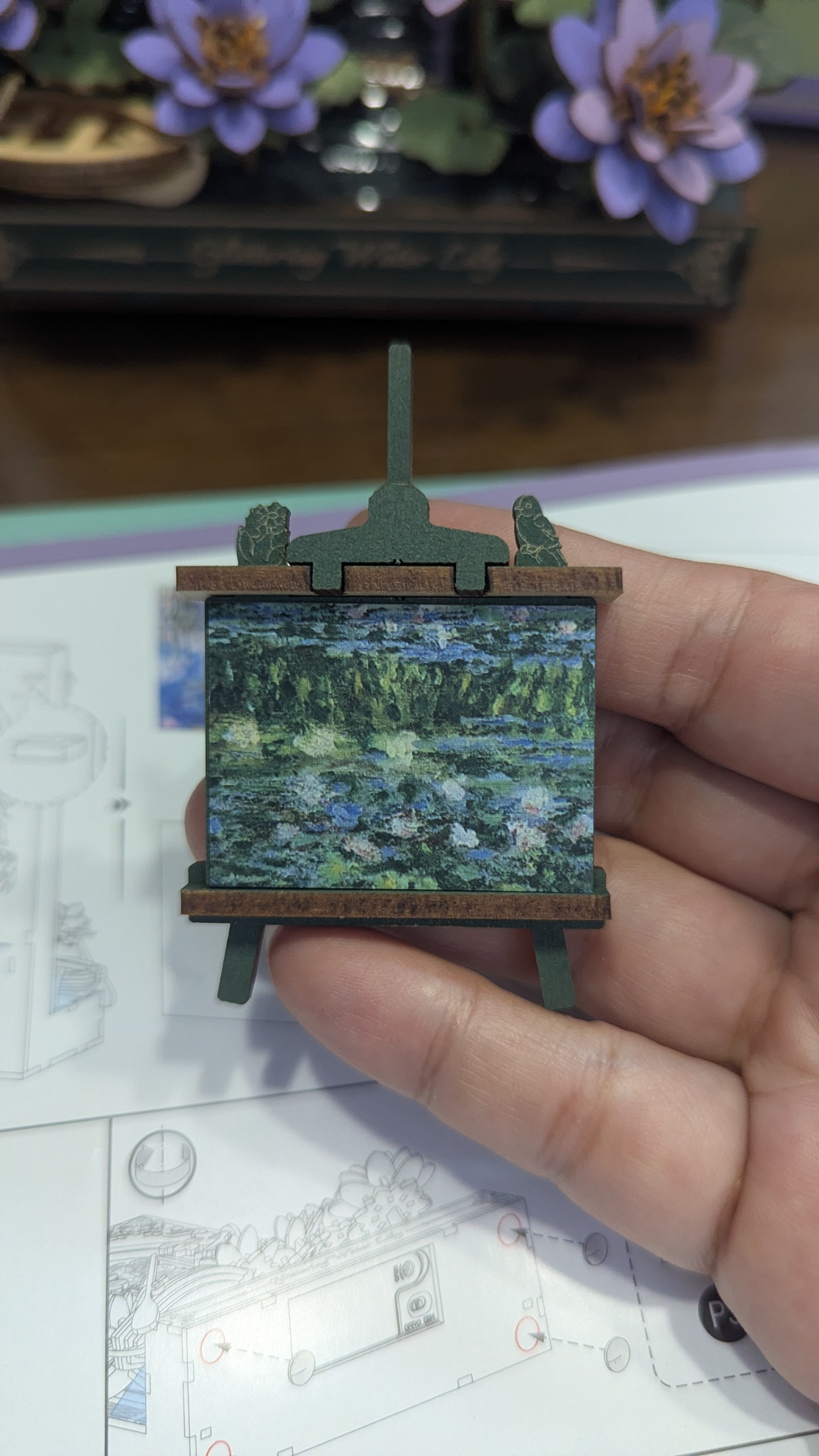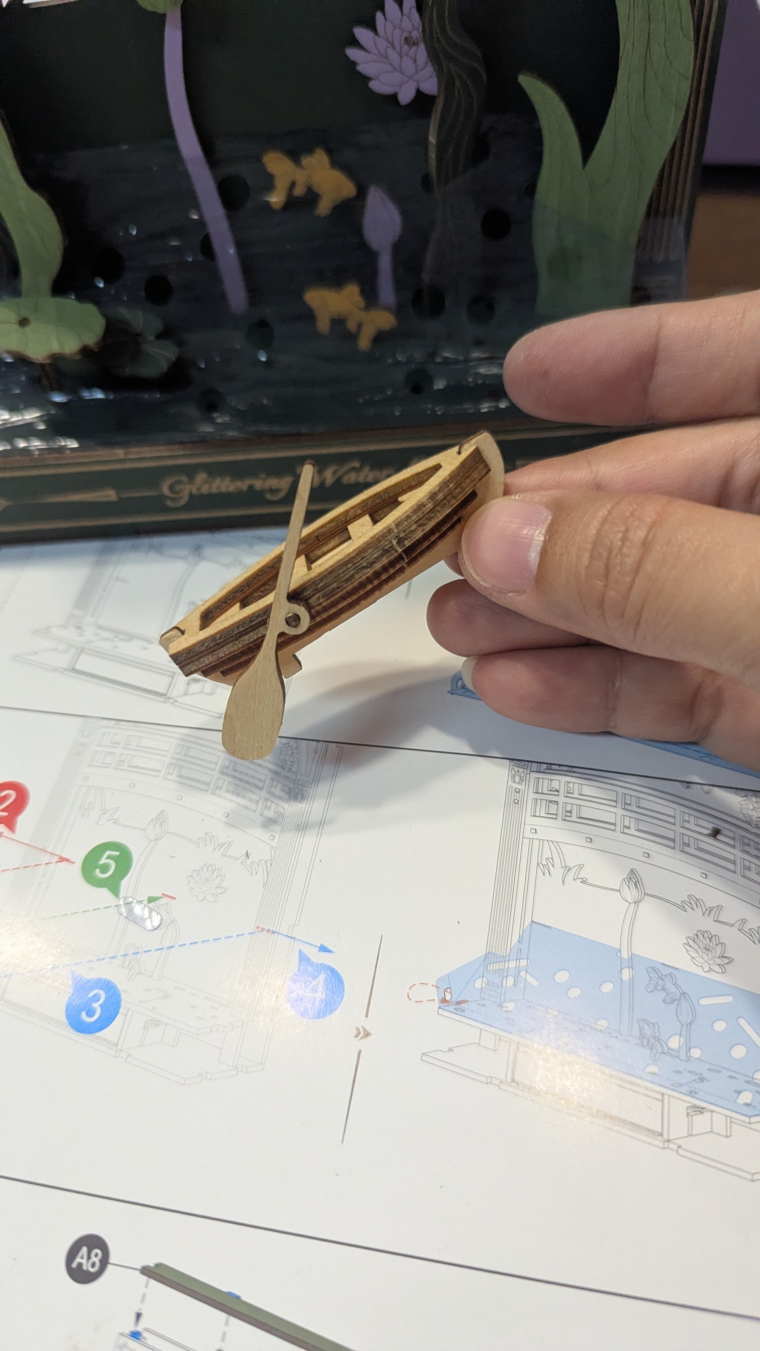 The same clear plastic material will be placed on the base to give the illusion that it’s a pond. Such a genius idea! Then I placed each lilies and pads one by one. The little boat is also so cute.