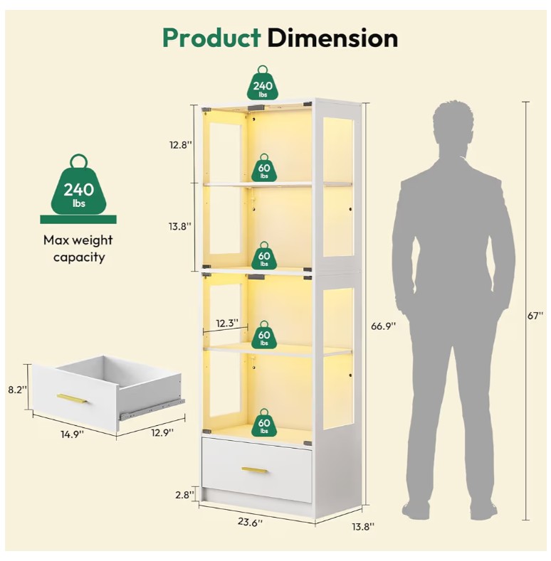 So..i decided to invest in a clear Glass display case to save some space. It comes with glass doors and built in LED lights so i dont have to turn every single kit on which is a workout