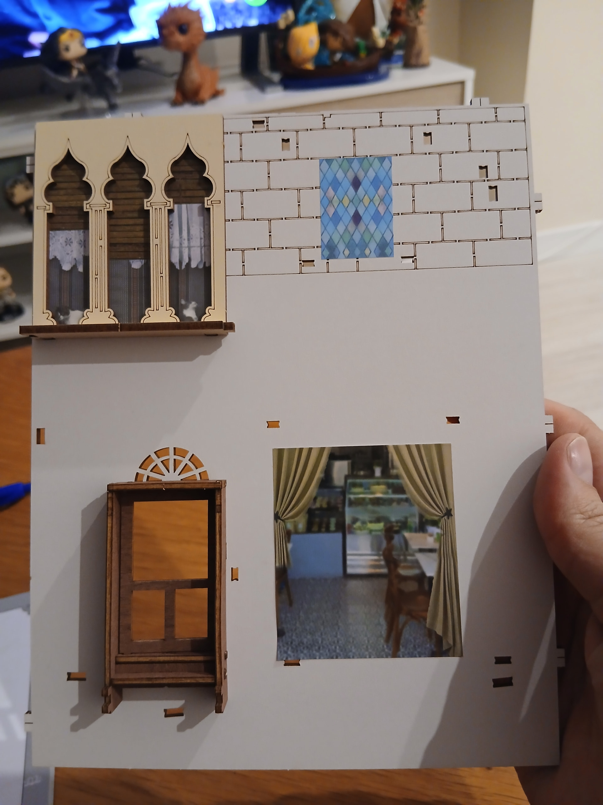 Actually, that door/window/thingie fits in one of the walls! That’s just so cute. I’ve always loved the designs printed on the outer side of the walls of any Book Nook, they’re usually gorgeous. And yeah, there are so many thing to fit in this wall! But we’ll get there. Not today (mostly) though.