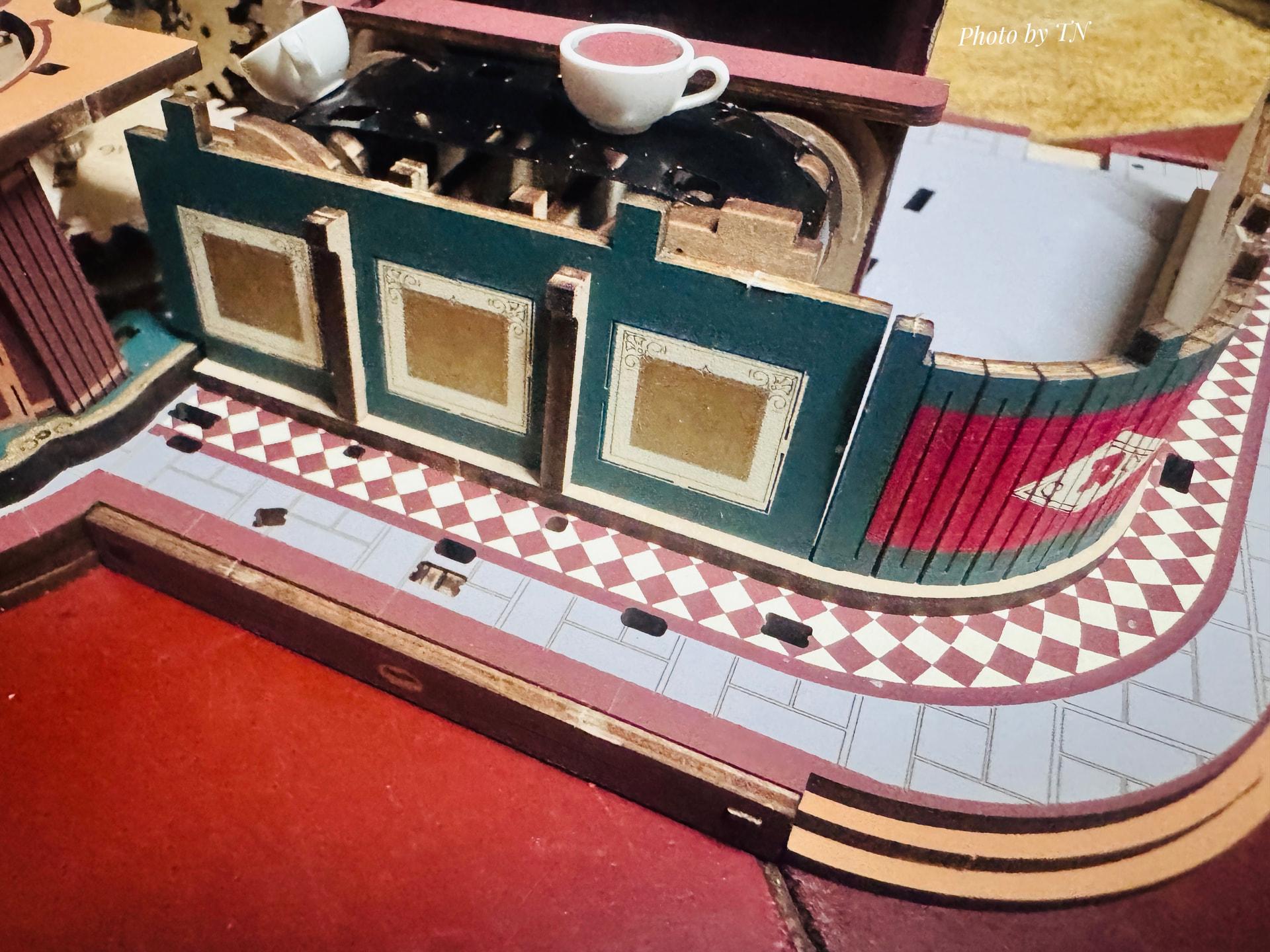 You’ve come a long way; it looks fantastic so far I love the colors of this kit; it’s perfect for a coffee shop. Am I right that there are cat paws serving the coffee? It looks so cute