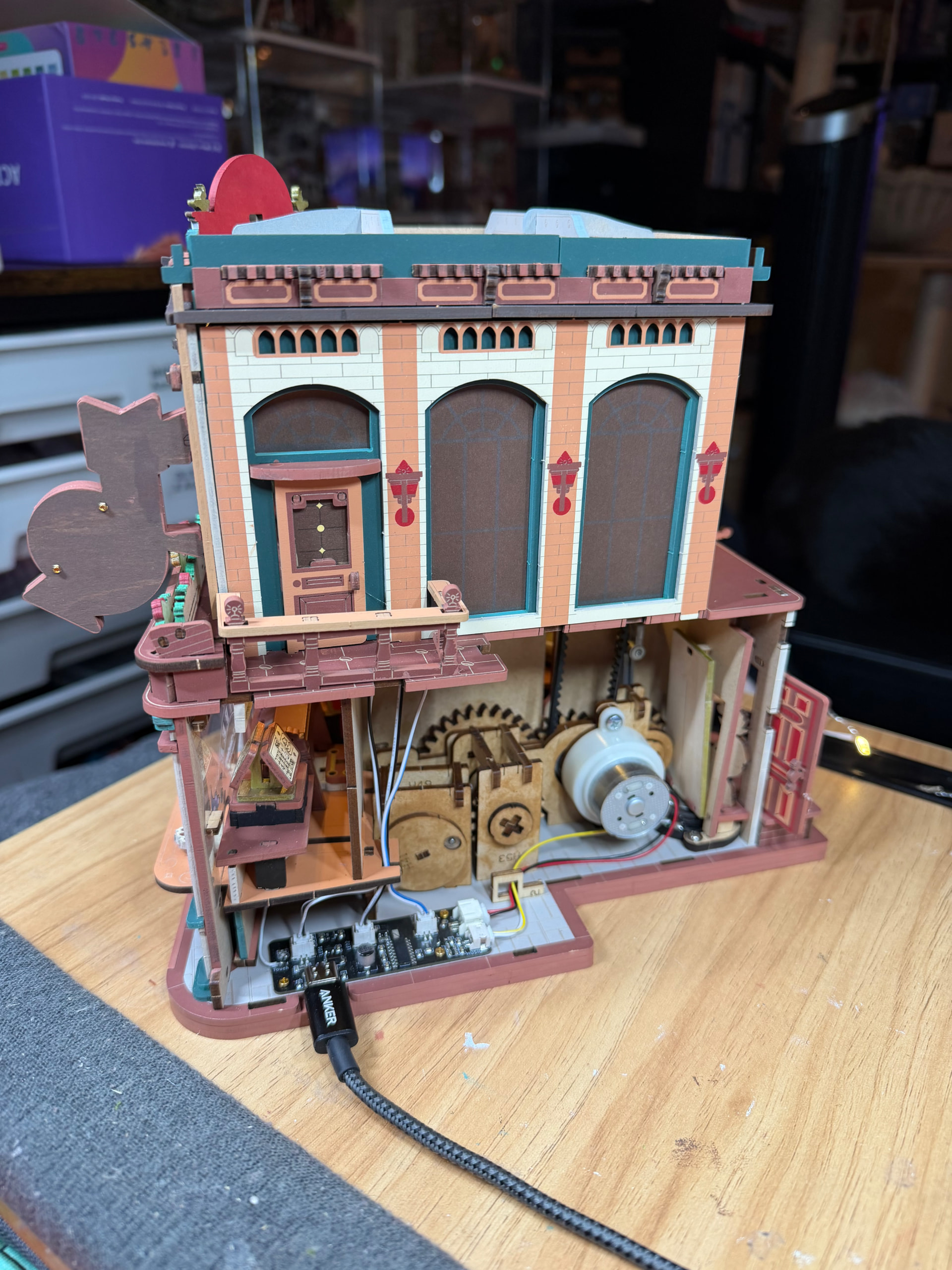 Made more progress on the second level and got the latte art sign installed. Things are really coming together now! I think everything is plugged in at this point, so we’re getting closer to the finish line