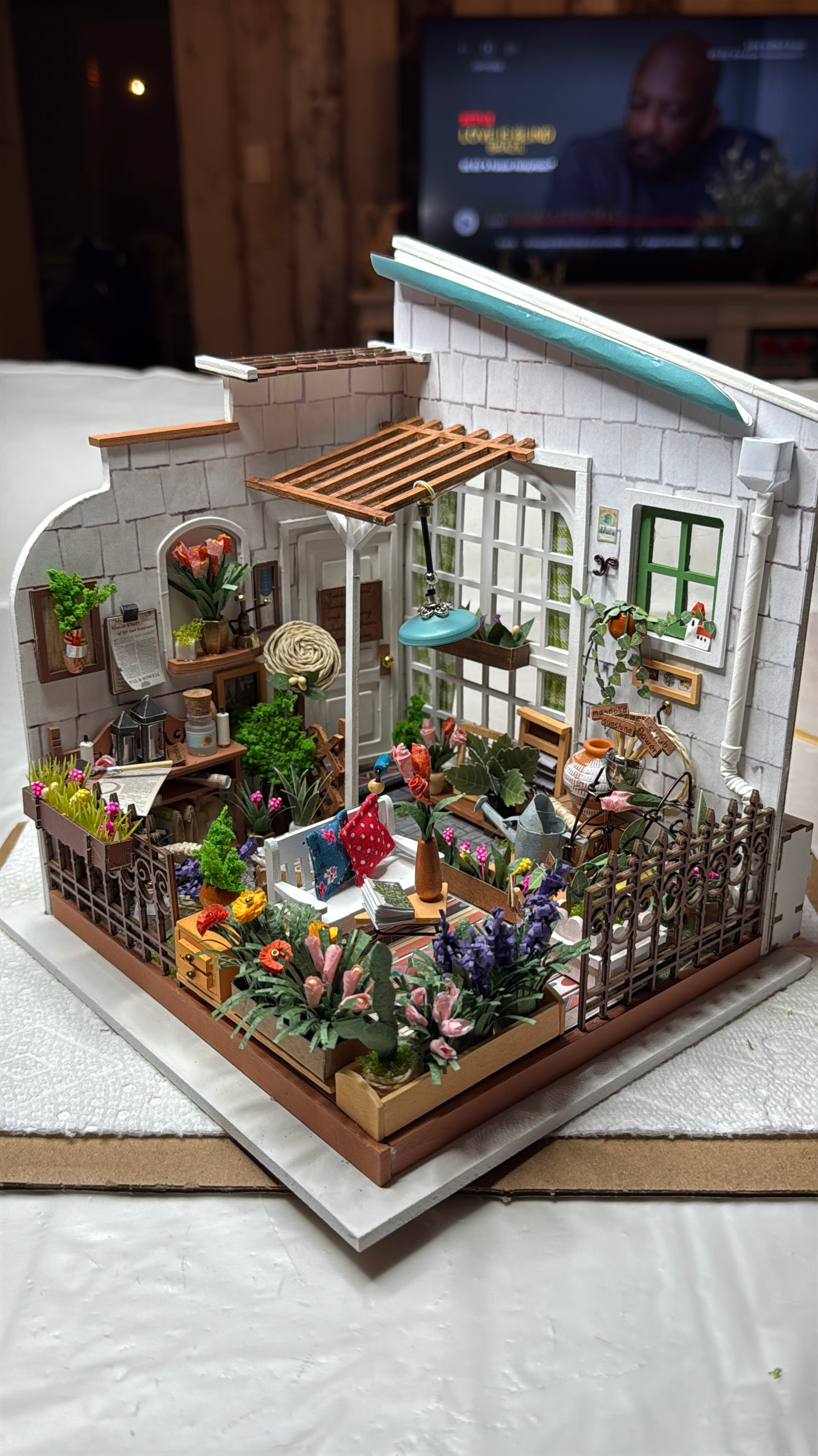 And finally a kit that Robotime sent me to document and share on my social media. They sent me Emily’s Flower Shop (surprised me), the new version. This was so much fun as I hadn’t done any of the newer kits yet and it was on my list. I will share a sneak peek. Tell me if you can guess my theme for this flower shop.