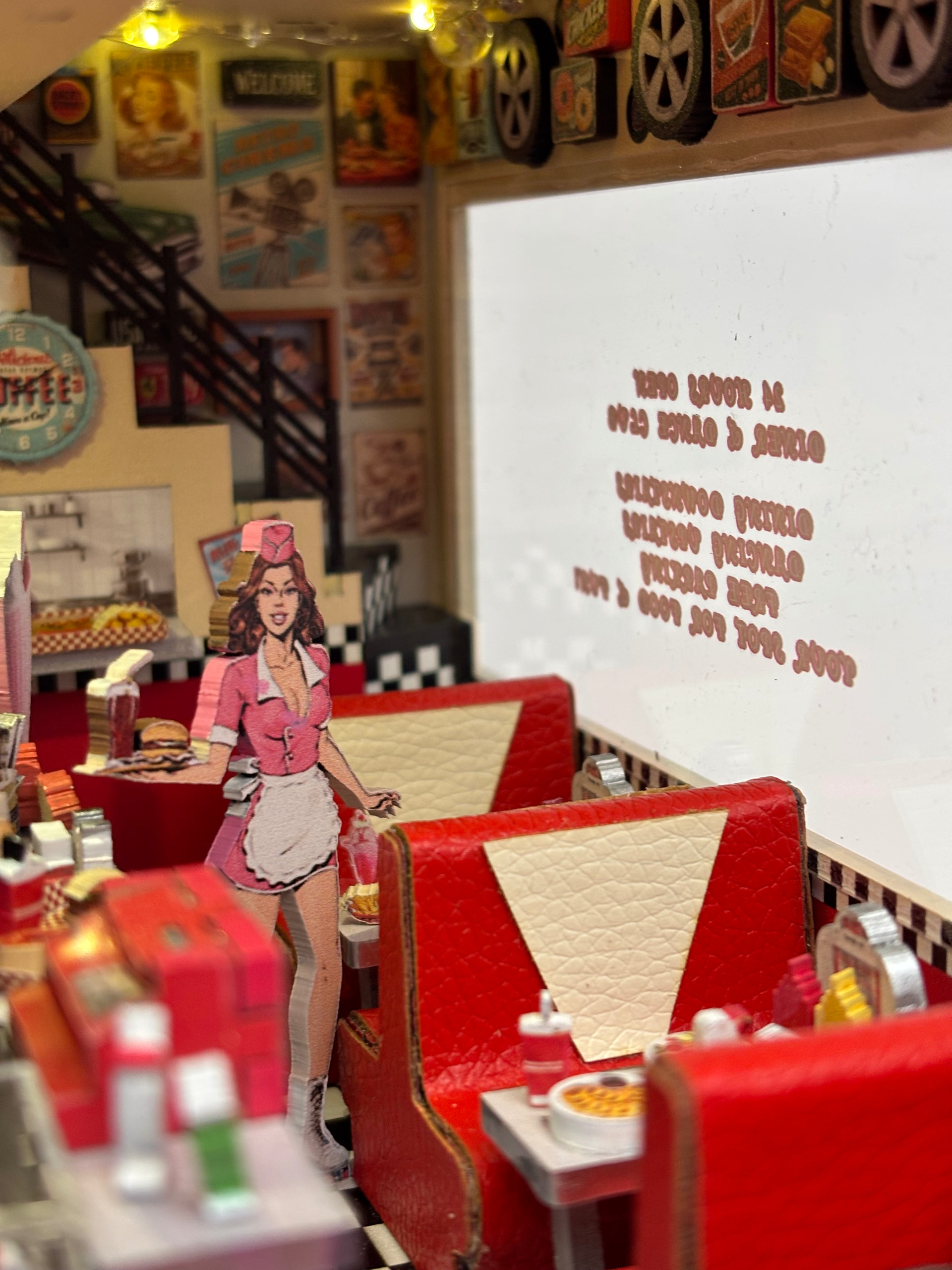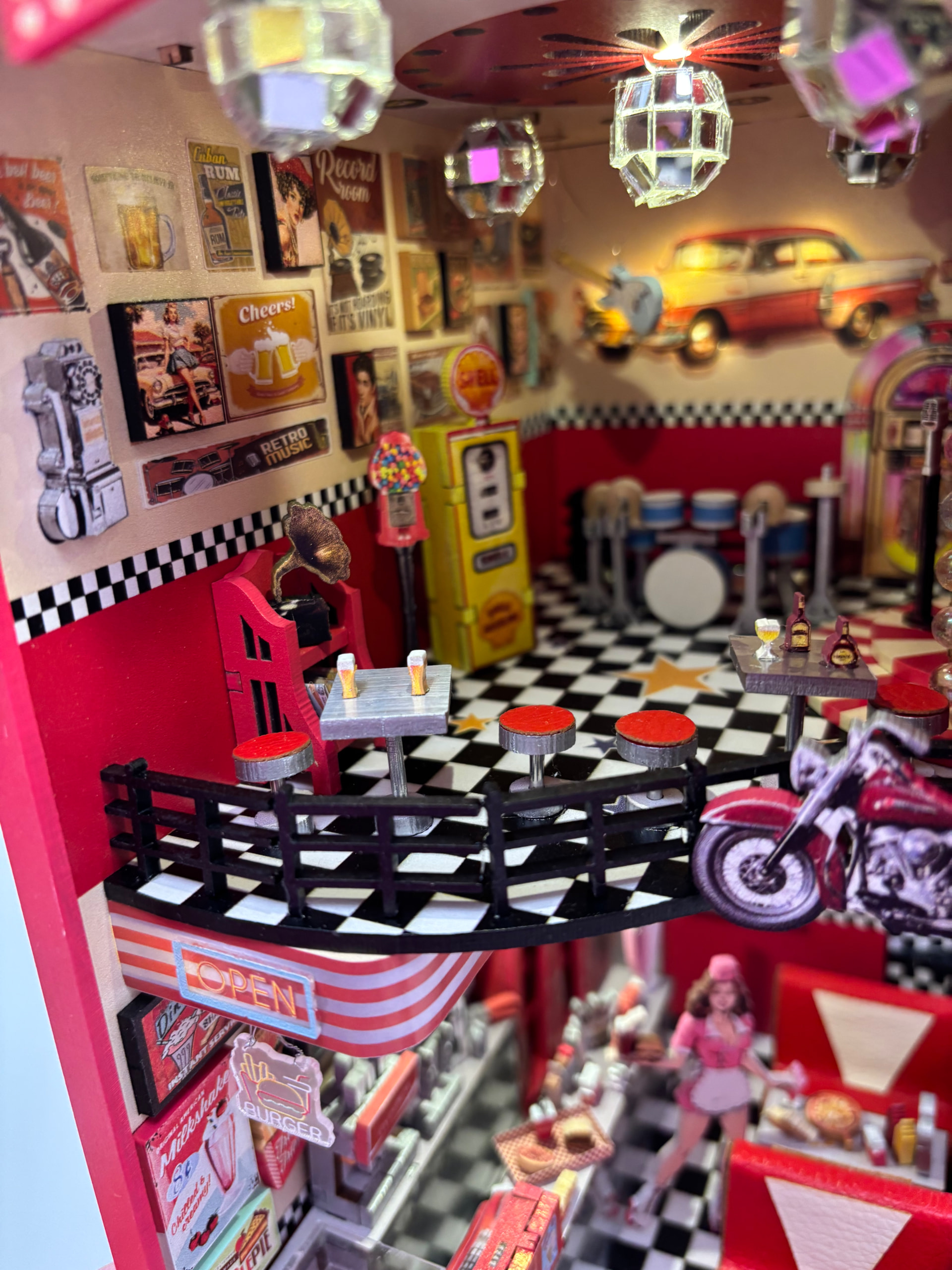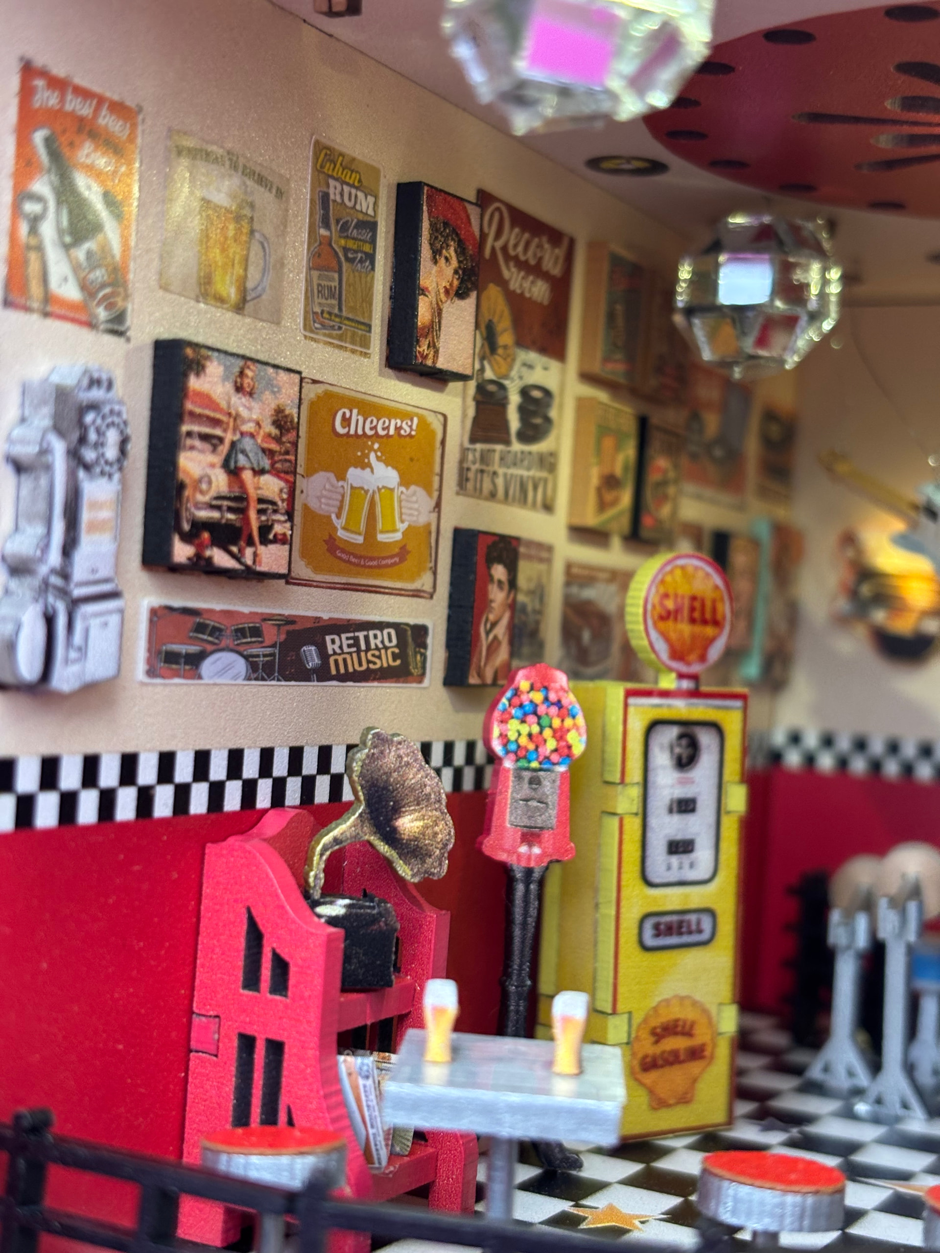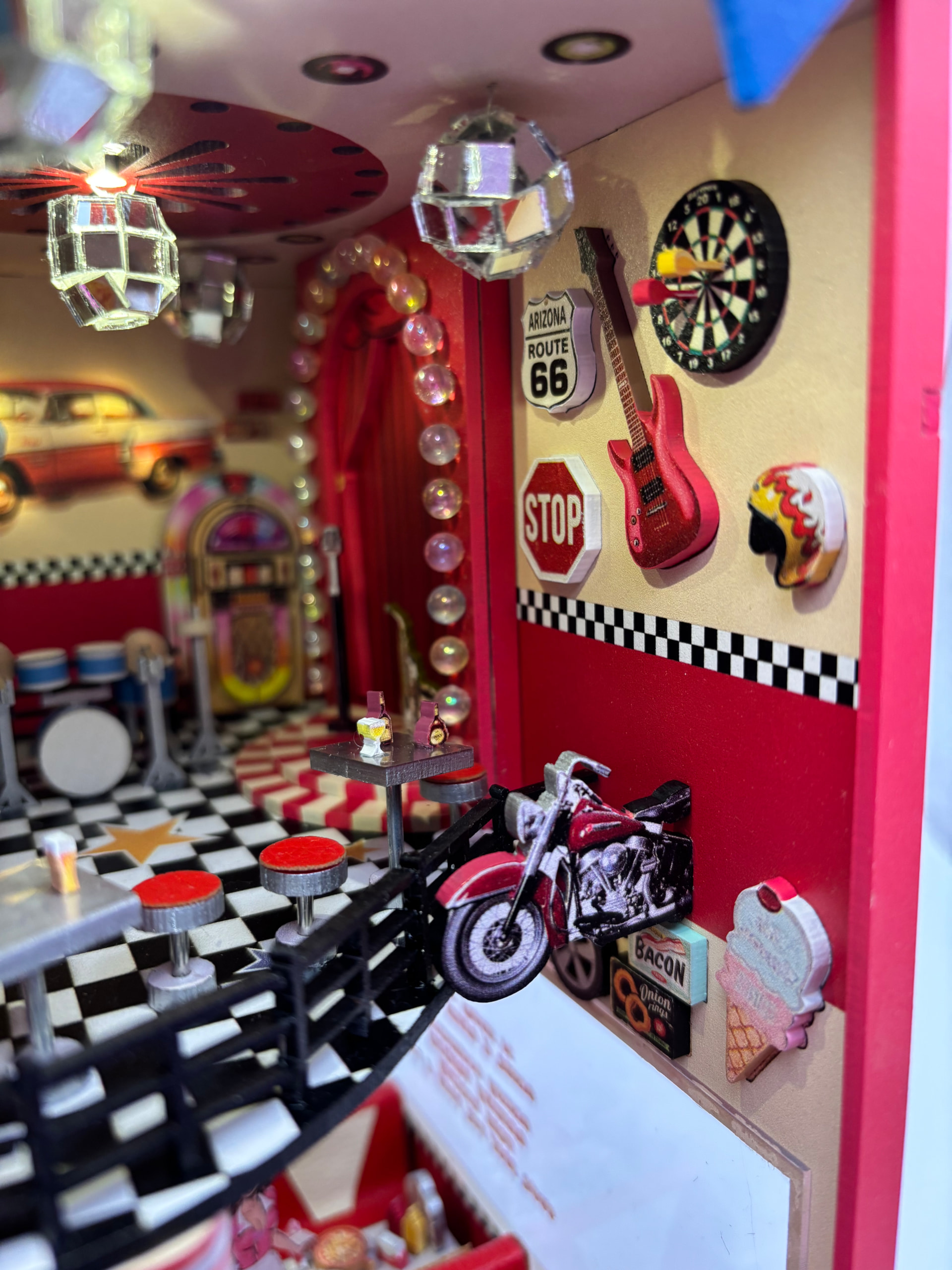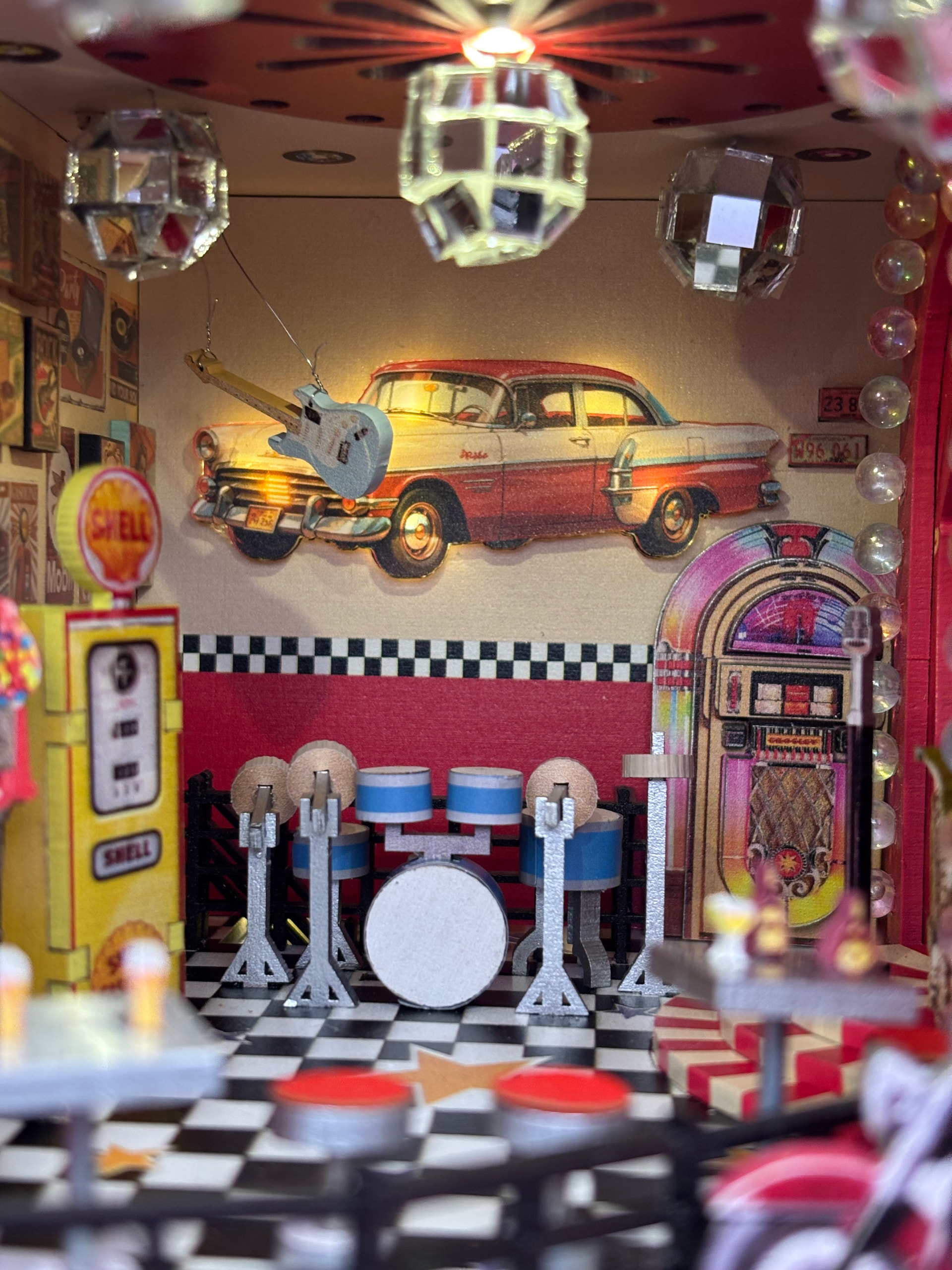 This really is a SUPER COOL kit. So many cute details here that I can’t pick a favorite. The neon car sign is pretty awesome though. You did an amazing job here! I agree that having something like blue suede shoes or the twist would have been much better.