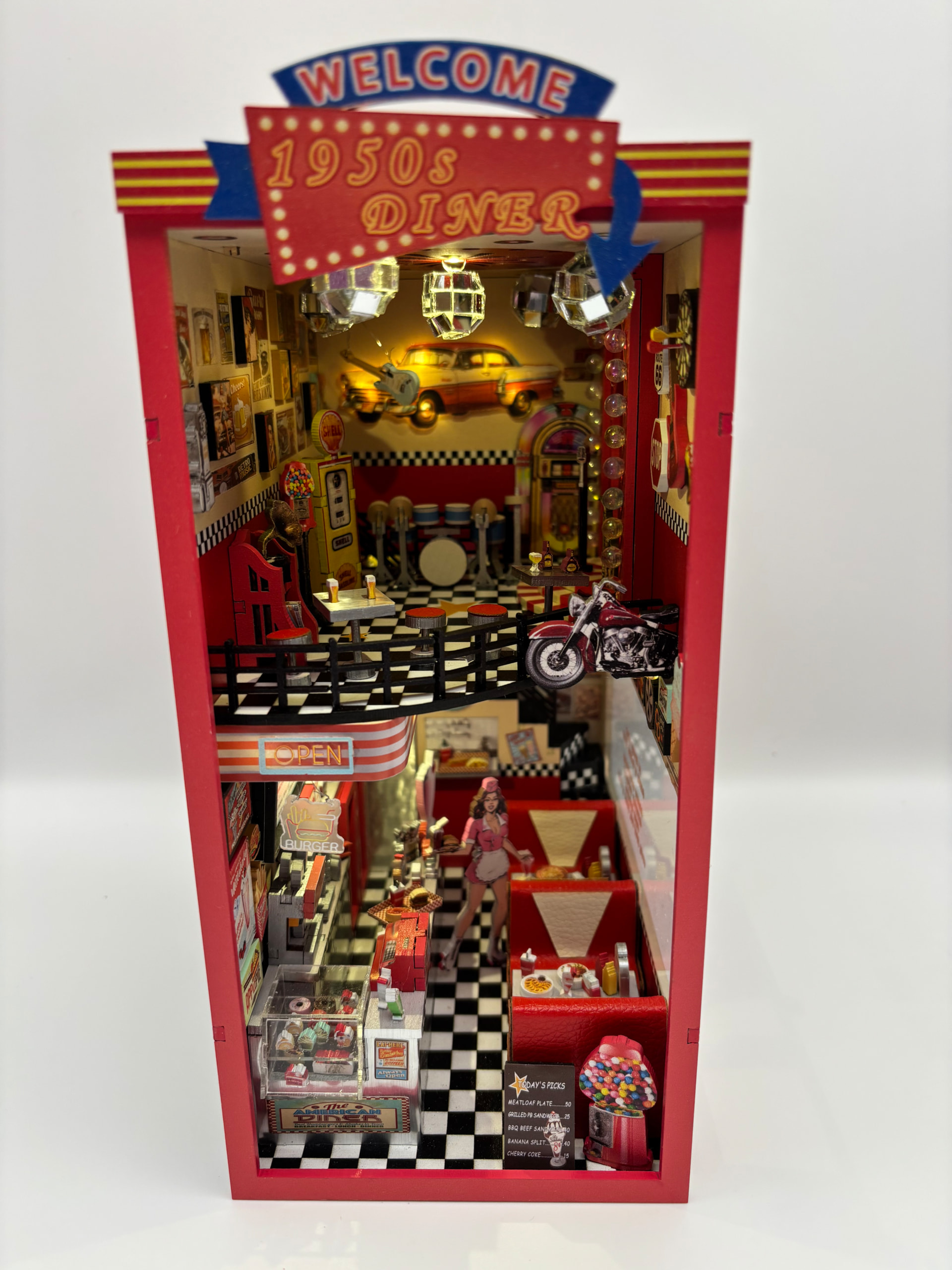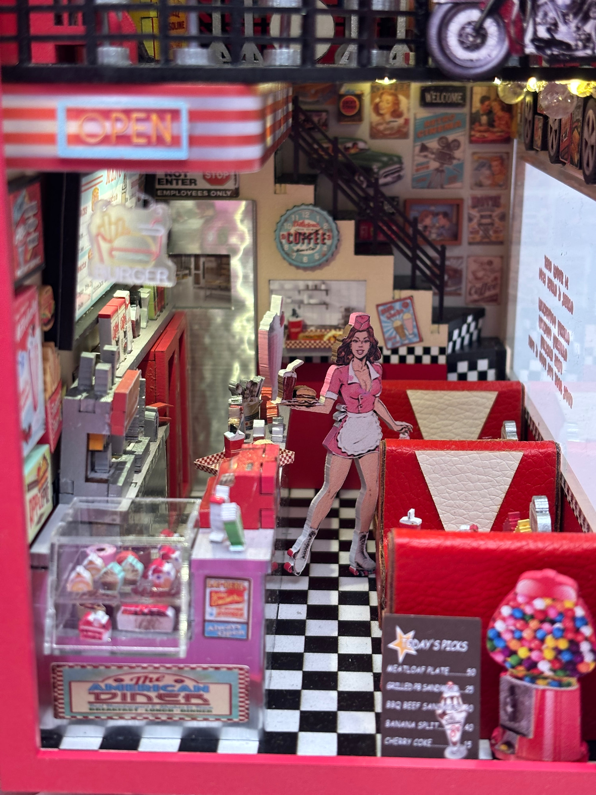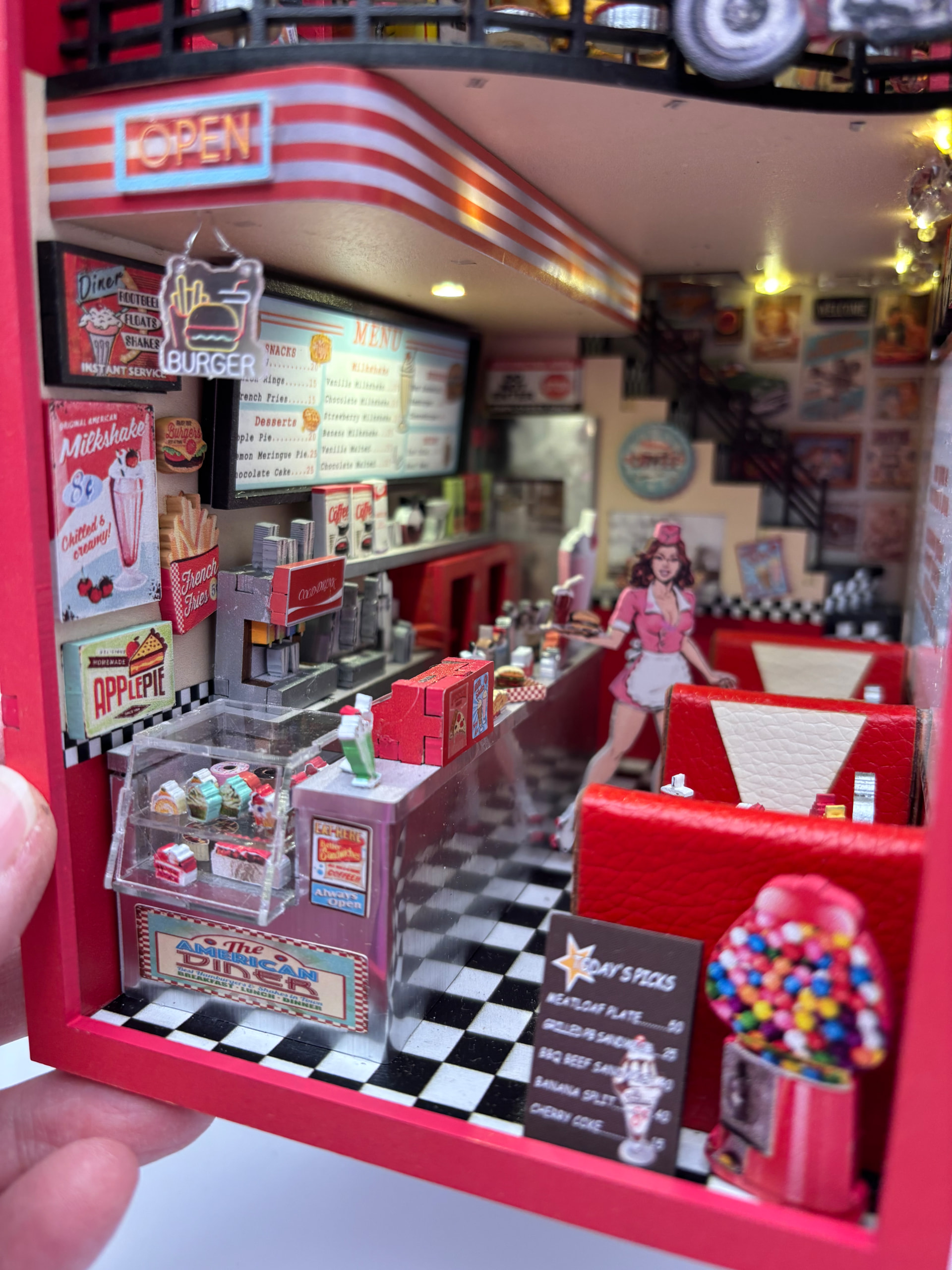 The day finally came…I got it finished. I love the end result so much! This fit together without any issues. All of the little details are fantastic! It feels like a real diner! I would recommend this build with a 10/10 star rating. The only thing that would have made it more fun is if there was a music box that played 1950’s music. I’m so excited to add this to my display!