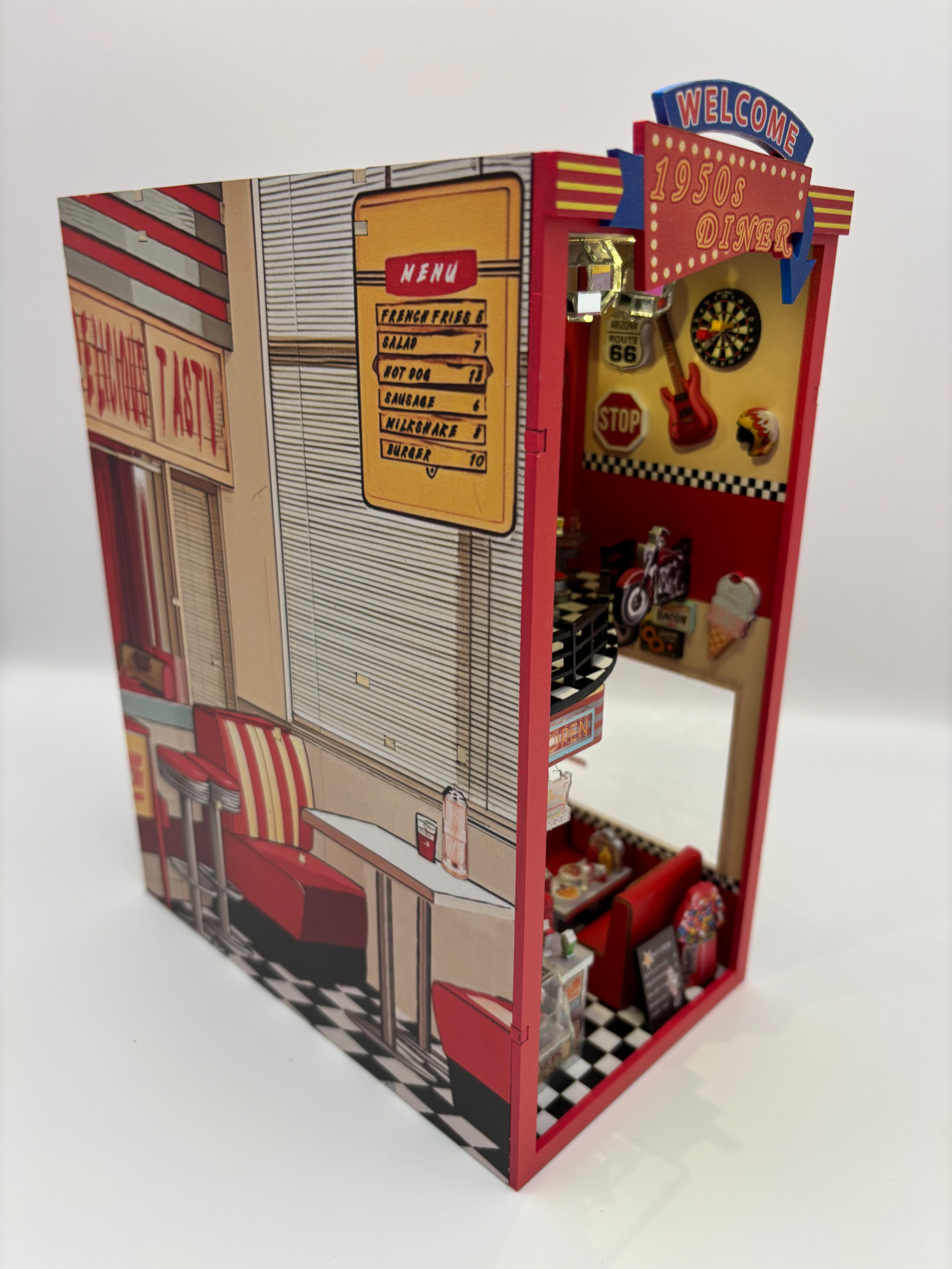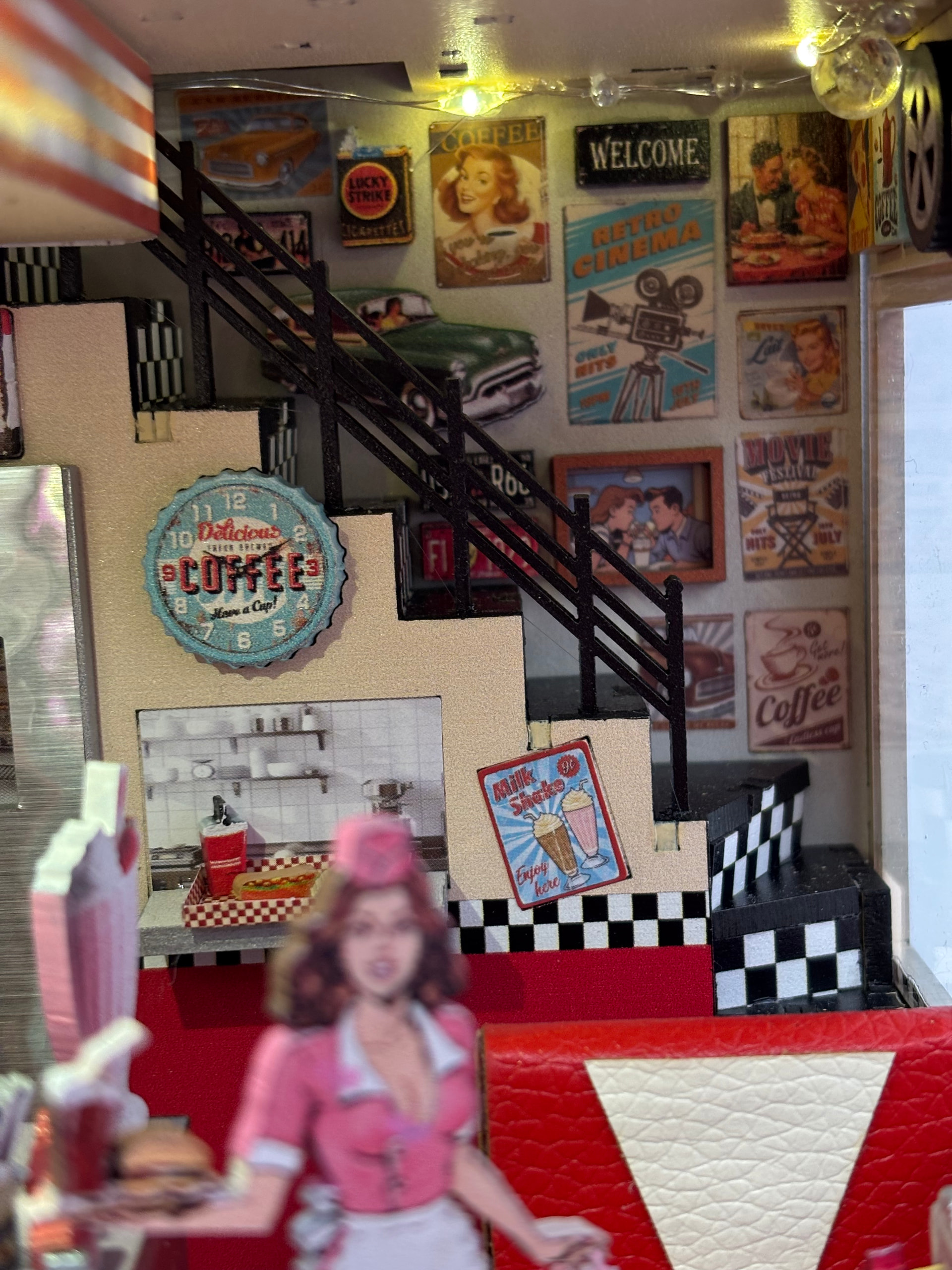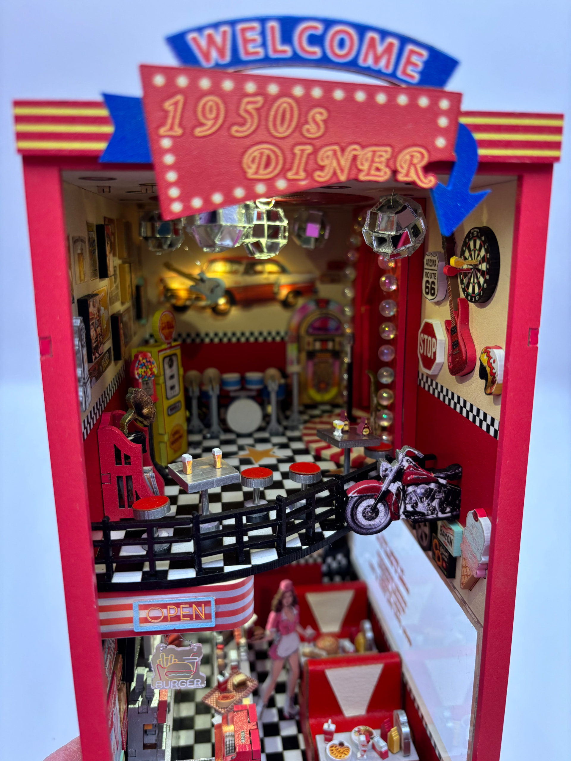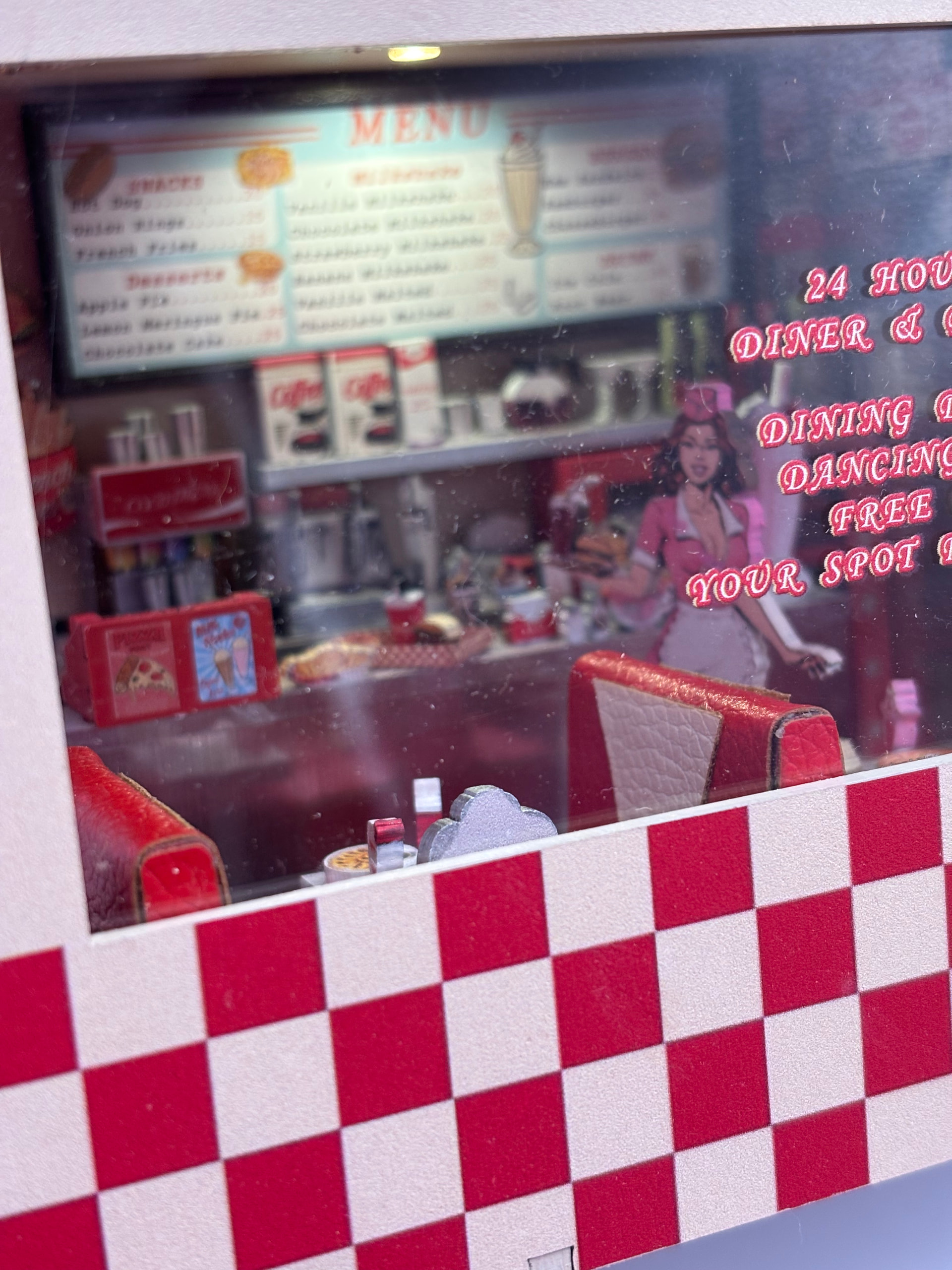 The day finally came…I got it finished. I love the end result so much! This fit together without any issues. All of the little details are fantastic! It feels like a real diner! I would recommend this build with a 10/10 star rating. The only thing that would have made it more fun is if there was a music box that played 1950’s music. I’m so excited to add this to my display!