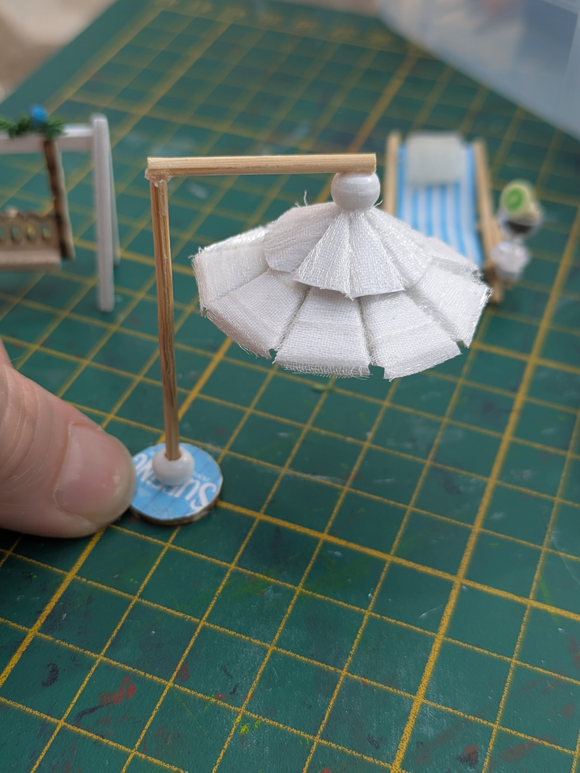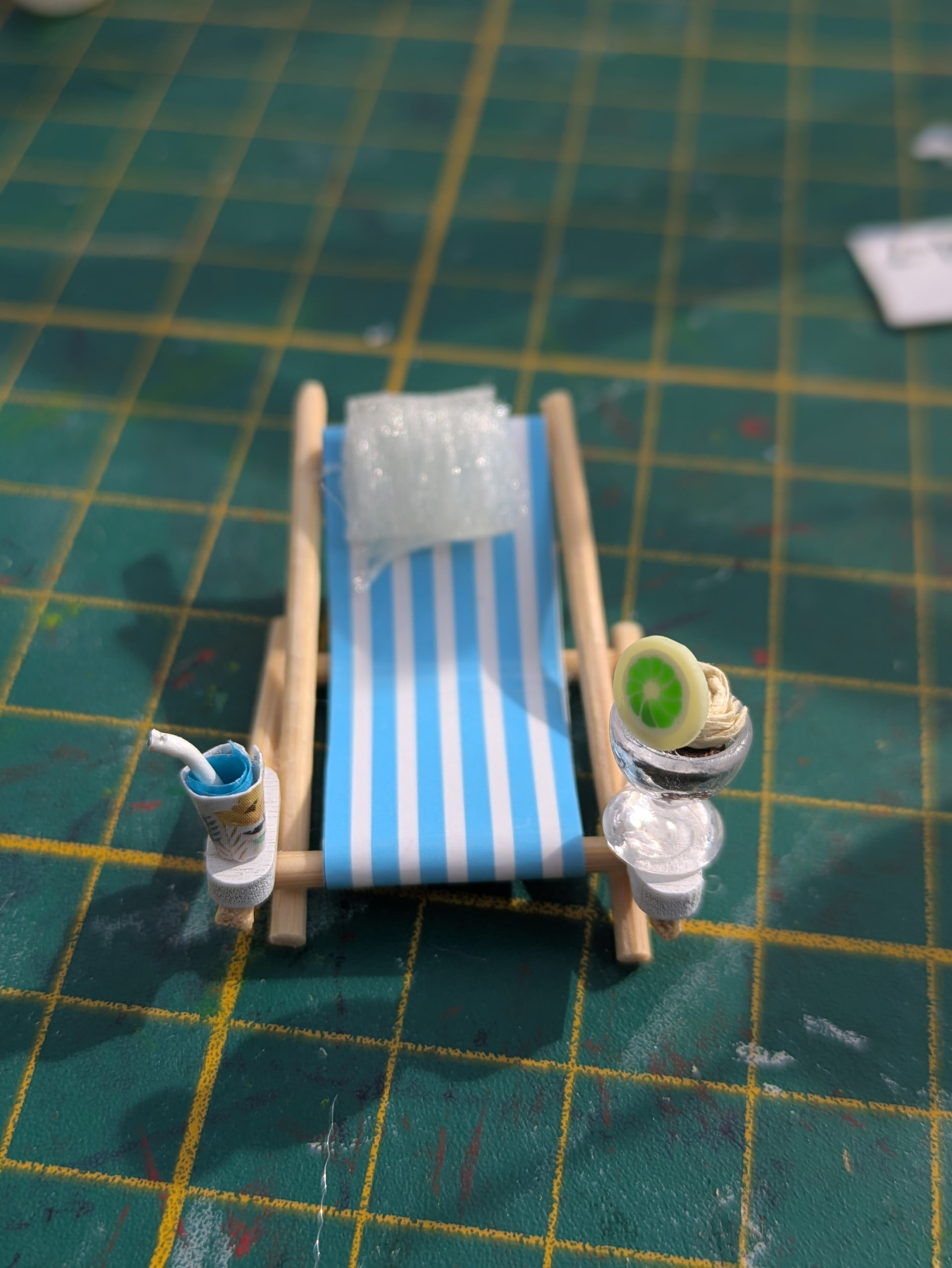Oh dear…I think I would have glued a bottom layer. Let it dry and then added another…and then another, if need be. I can’t imagine trying to keep something straight on a moving surface…YIKES!