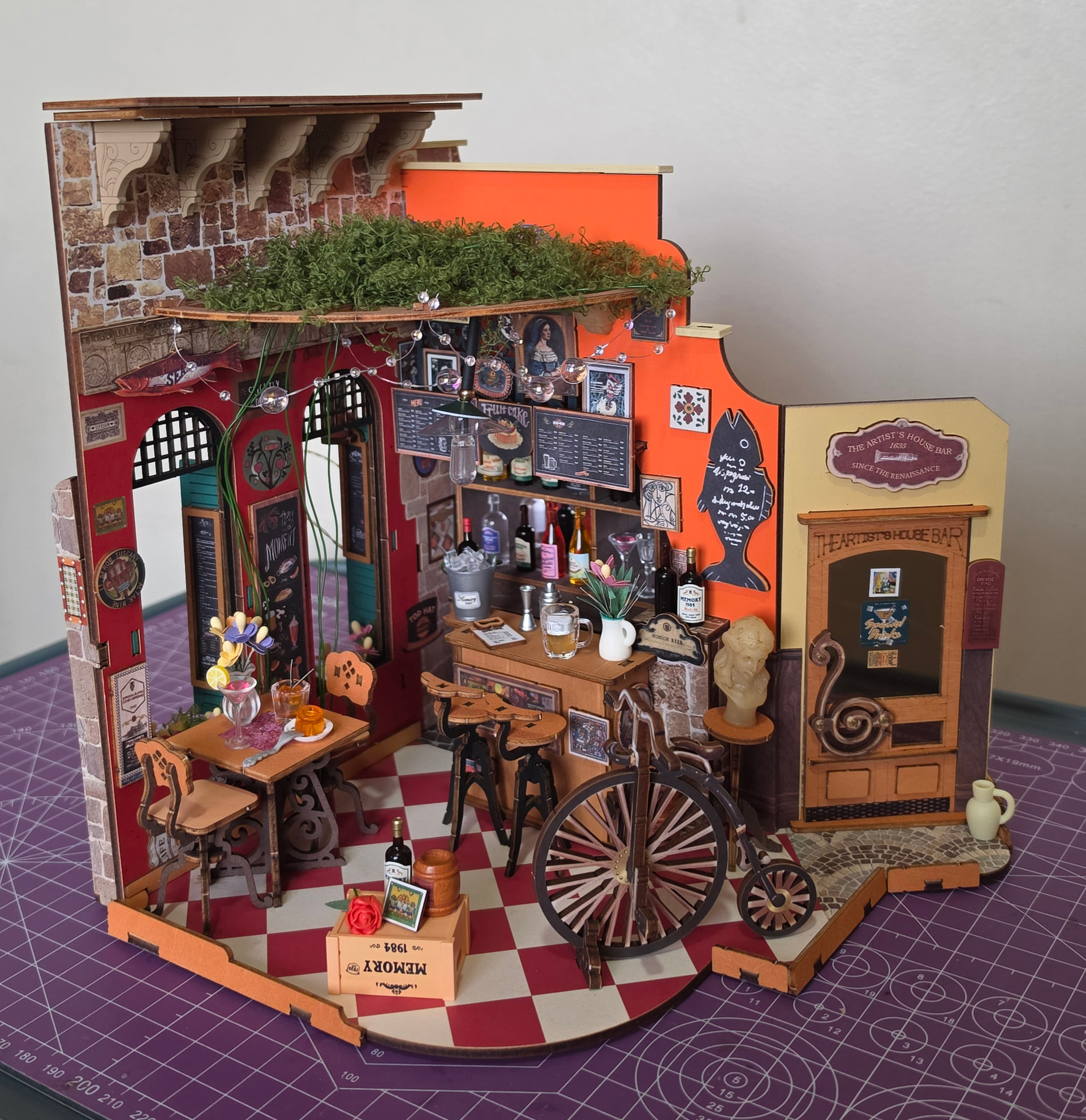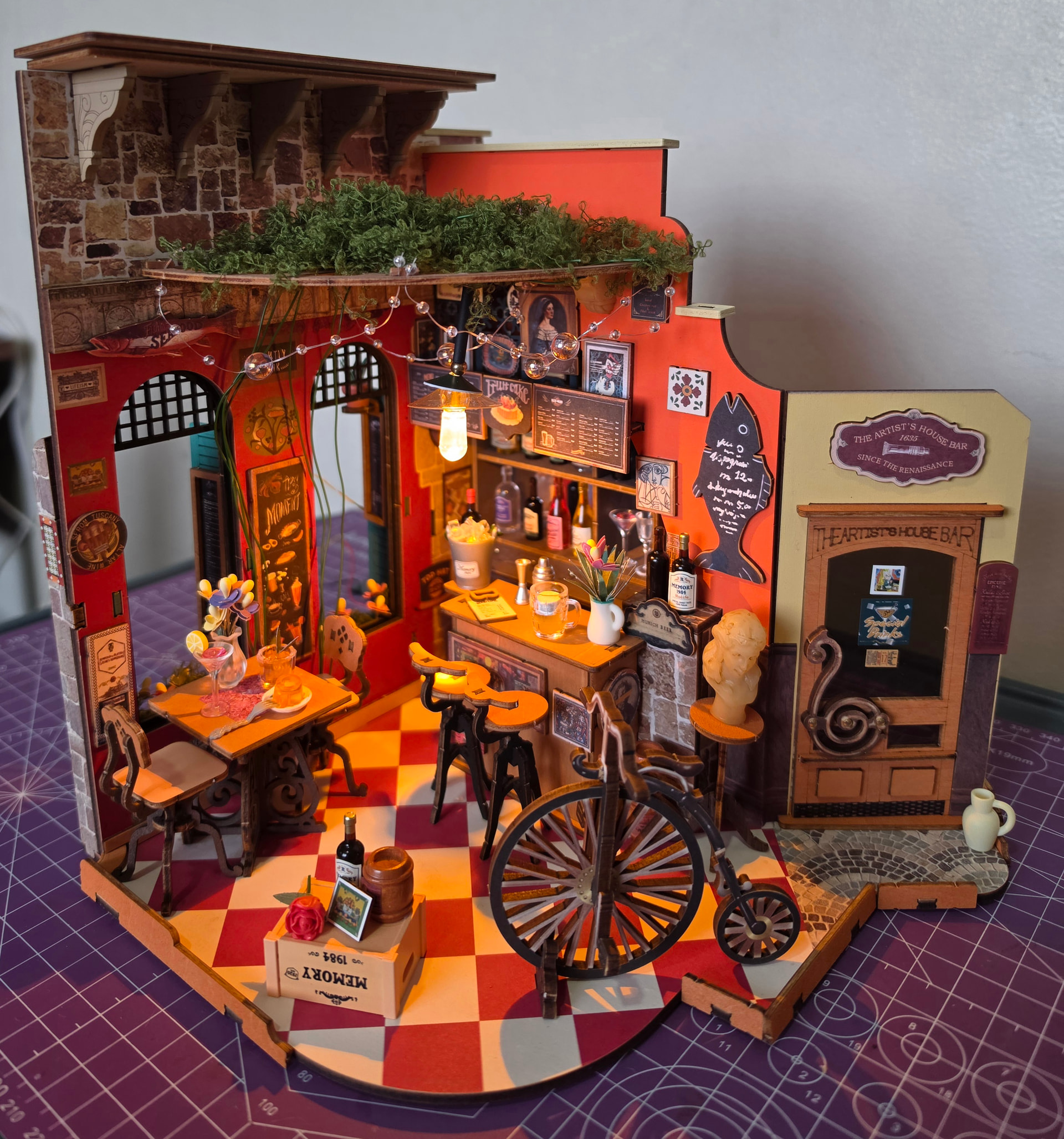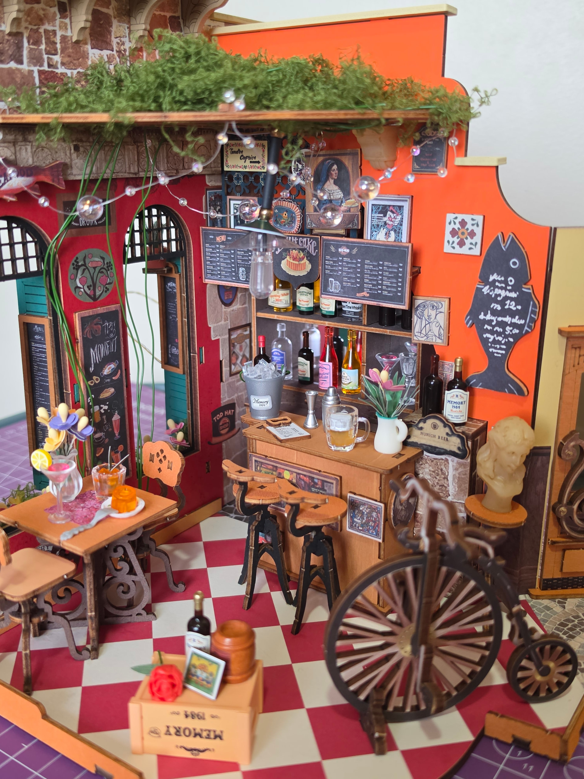 The lighting is a beautiful touch too. It really captures the warm, inviting atmosphere of a real bar. Overall, the decorations are wonderfully done and elevate the entire kit. I had fun building this kit. Weekend well spent