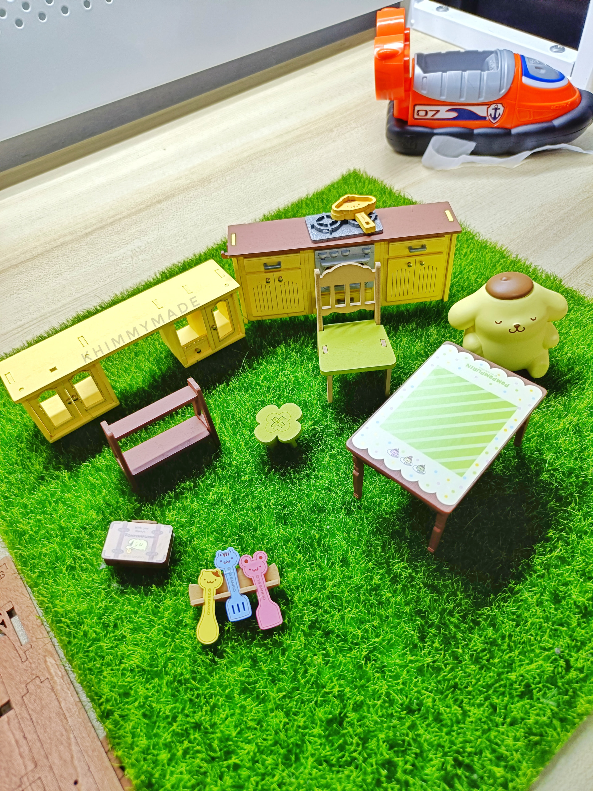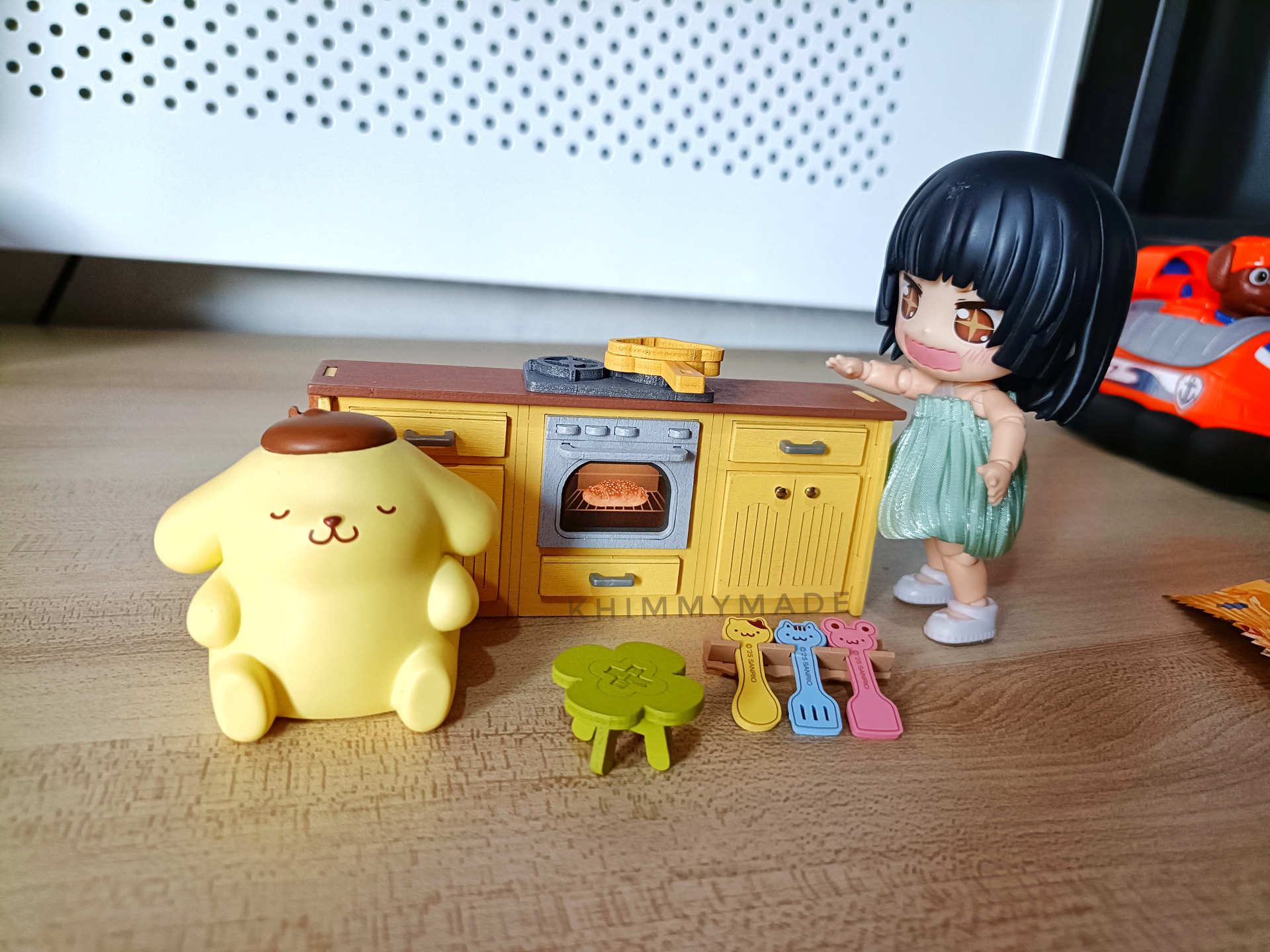 It’s kind of sad that the wallpaper had been ripped off but I think that it’s not visible at the front. (Am I right?) Your daughter looks like she is enjoying the kit a lot and her mini ver of nendo is so cute. The Pompompurin is all coming together now and it’s cute.
