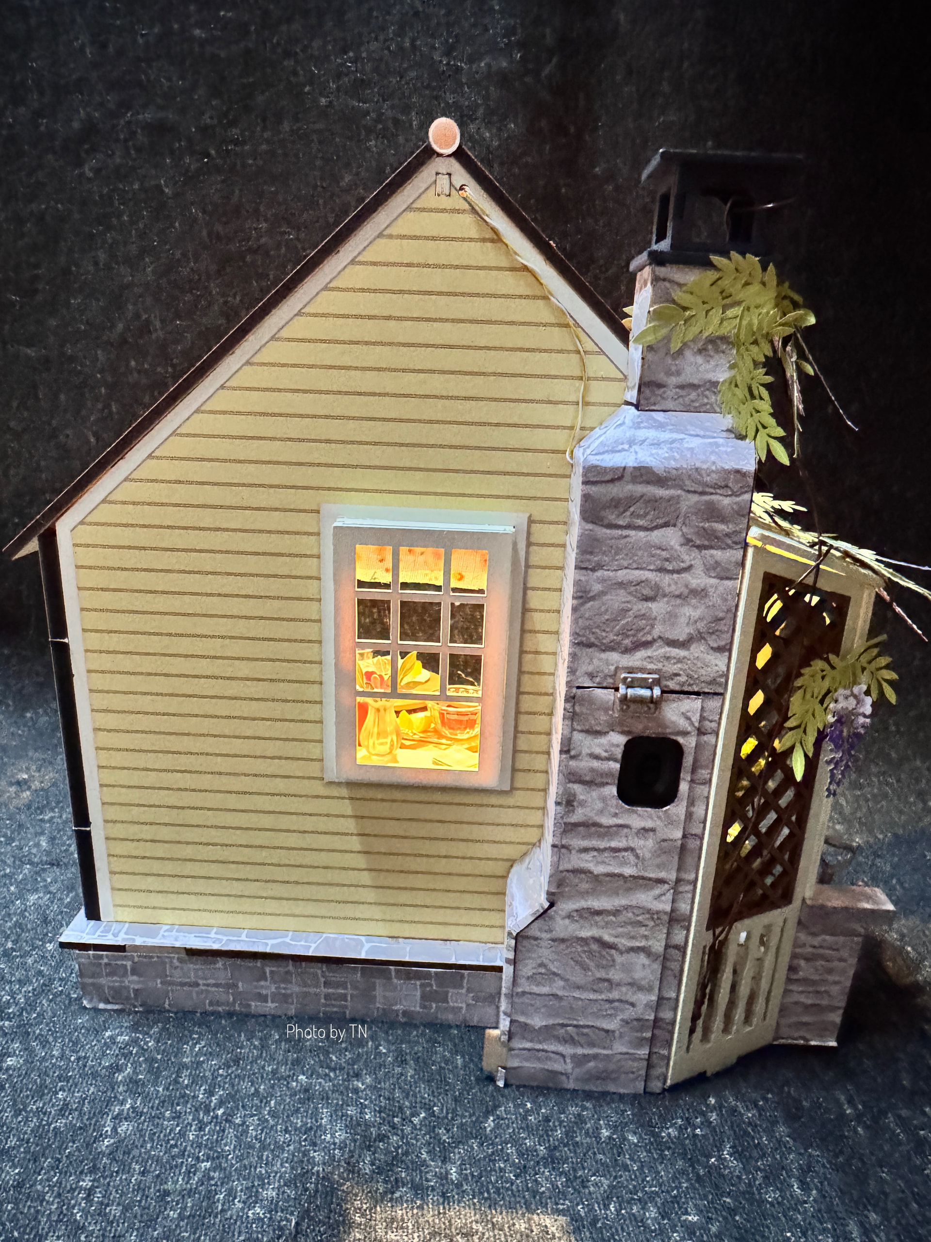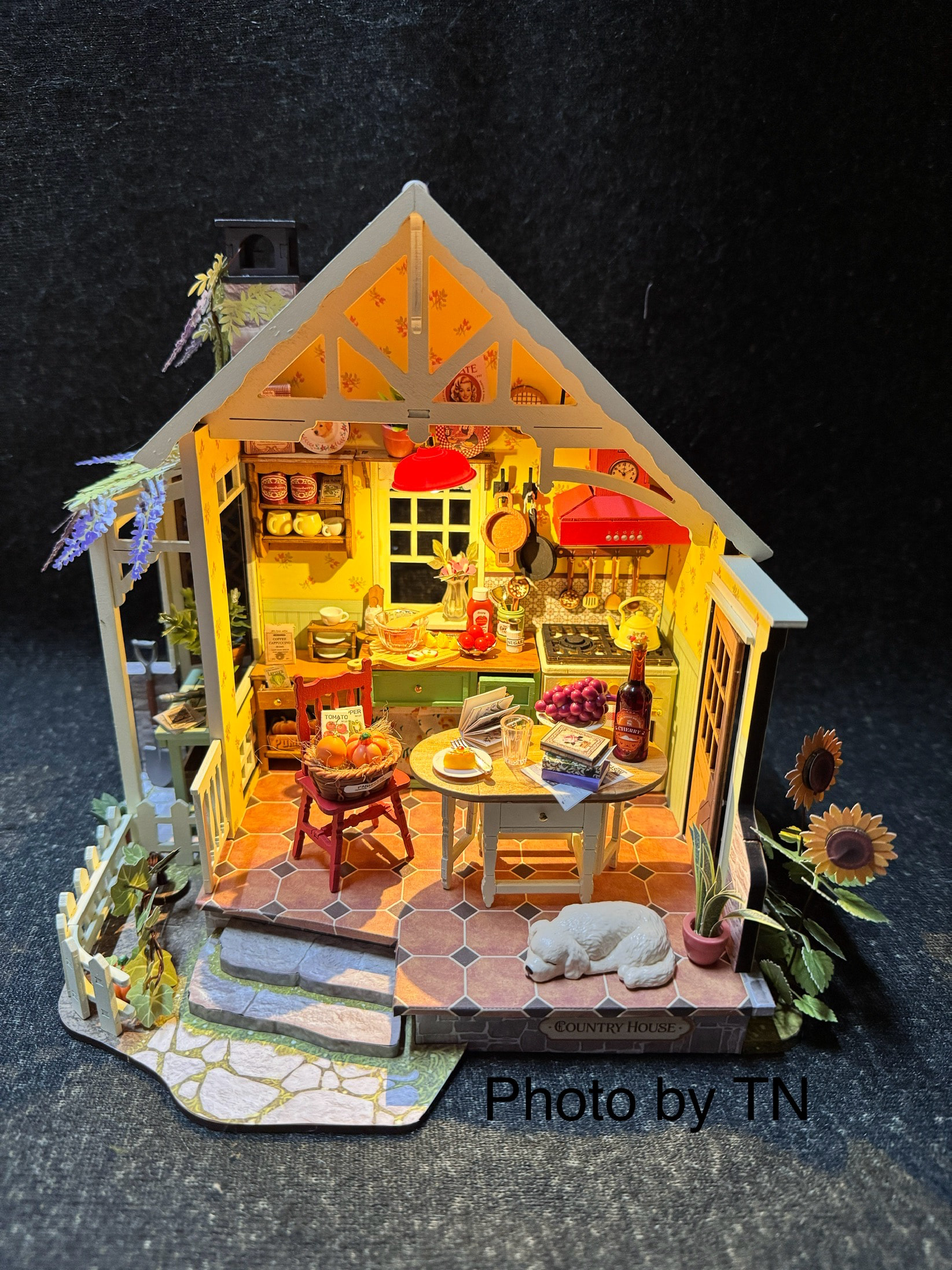 The small house in the picture is like a warm slice of rural life, subtly miniaturized. Under the simple A-shaped roof, warm yellow light spreads throughout the space, making every corner feel lively and inviting.