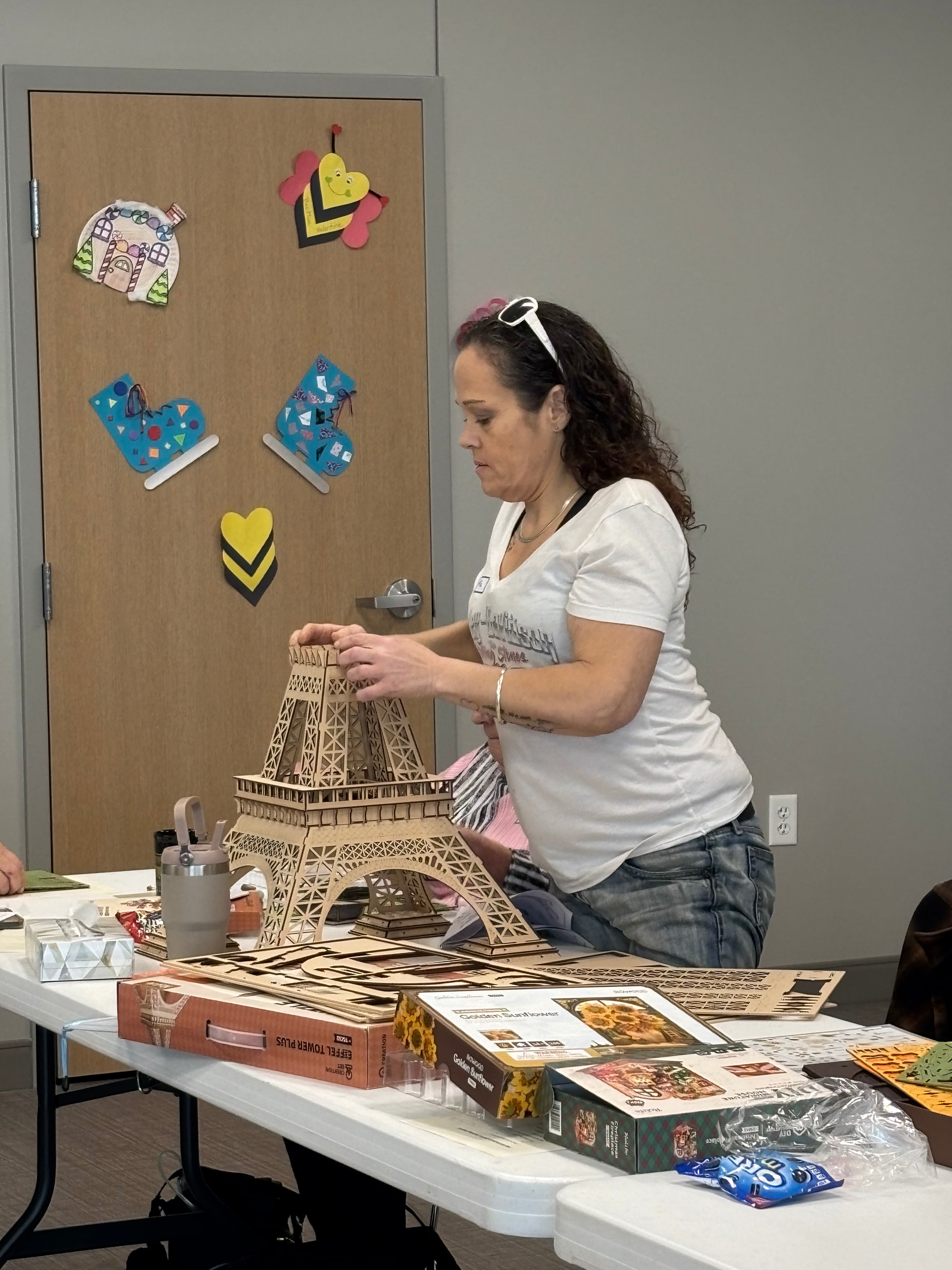 Everyone chatted as they built, munched on snacks and drank water or coffee.
