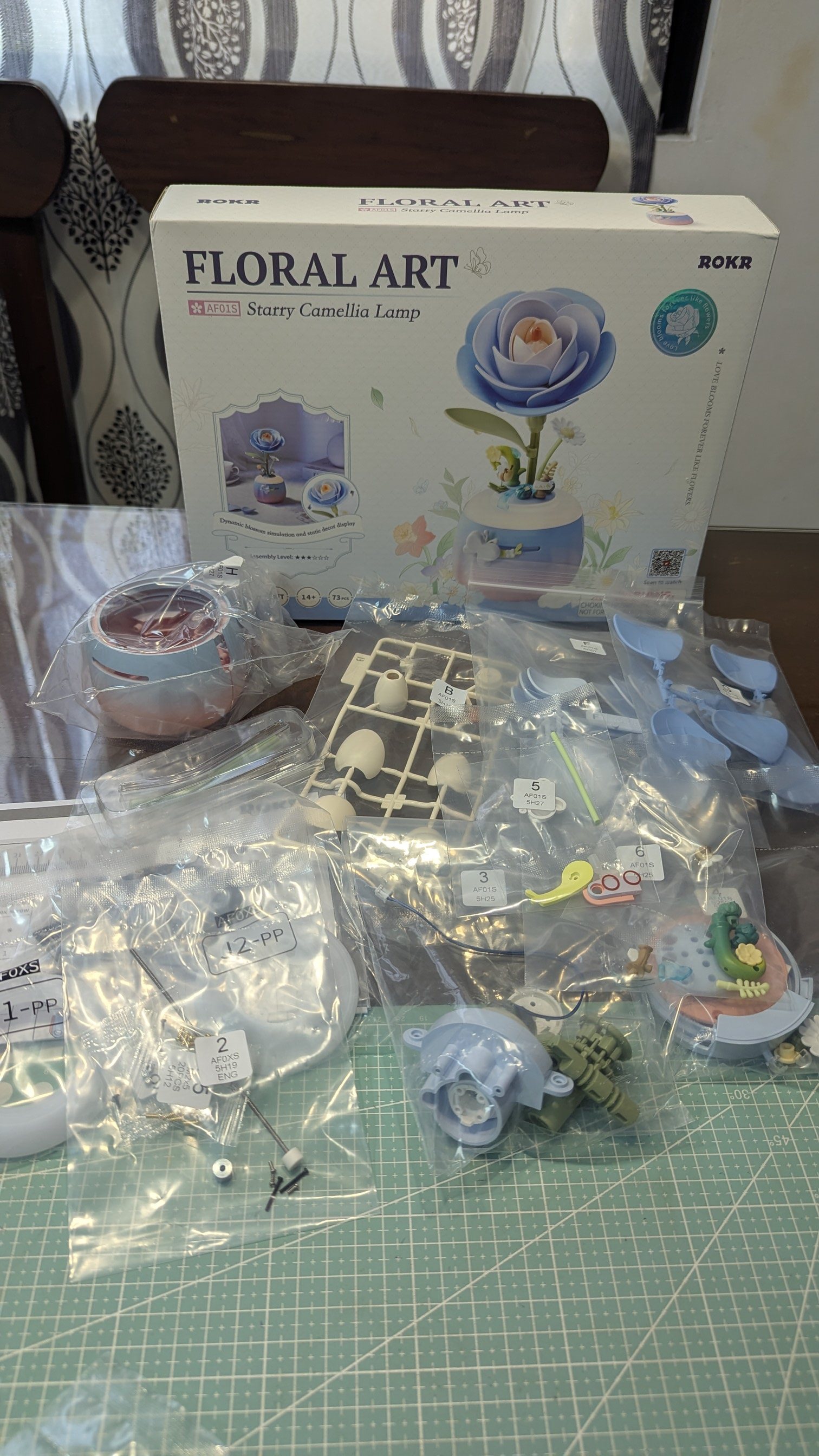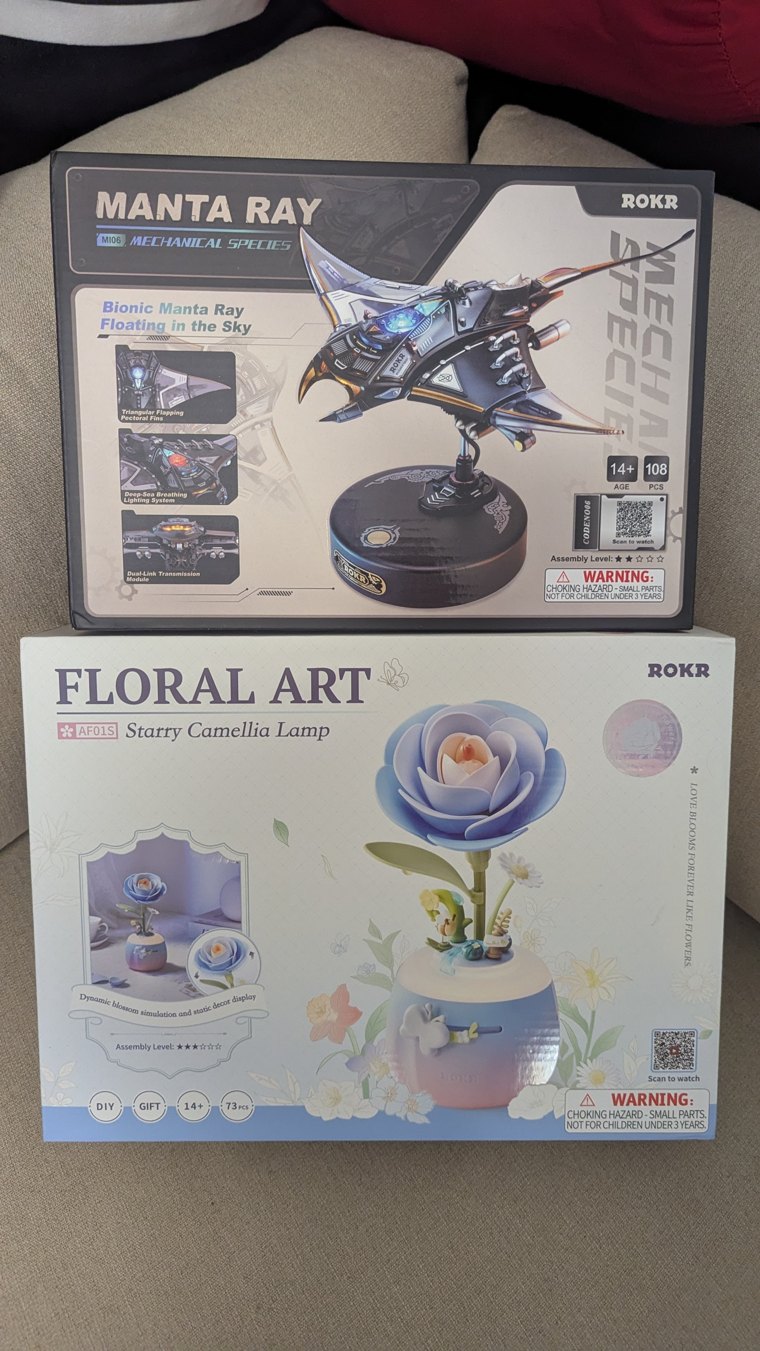 For Easter Sunday, I decided to build the ROKR Starry Camellia Lamp and my husband unexpectedly joined me in the table with his ROKR Manta Ray