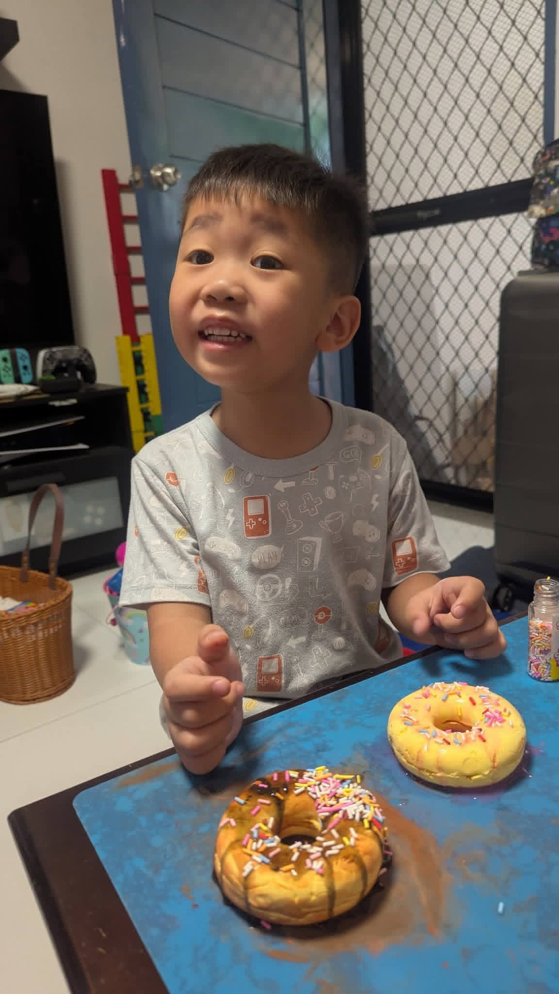 Omg he’s the absolute cutest! Are those one of those scented squishy doughnuts?