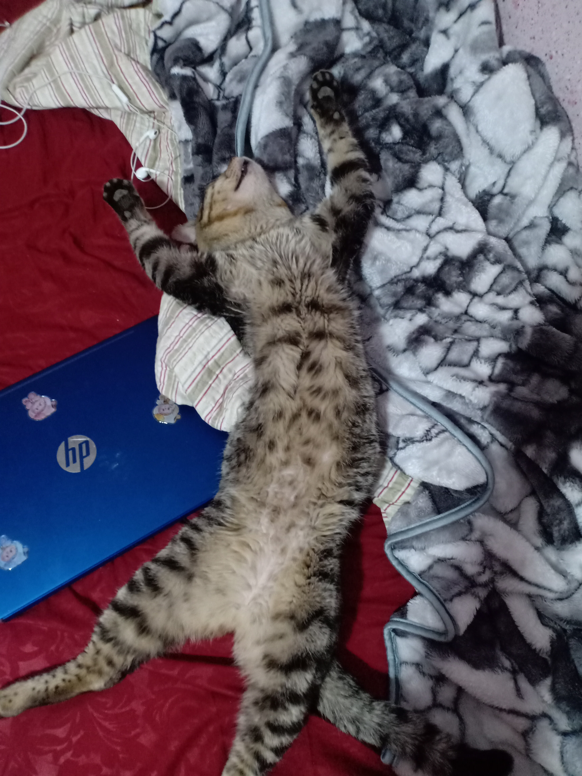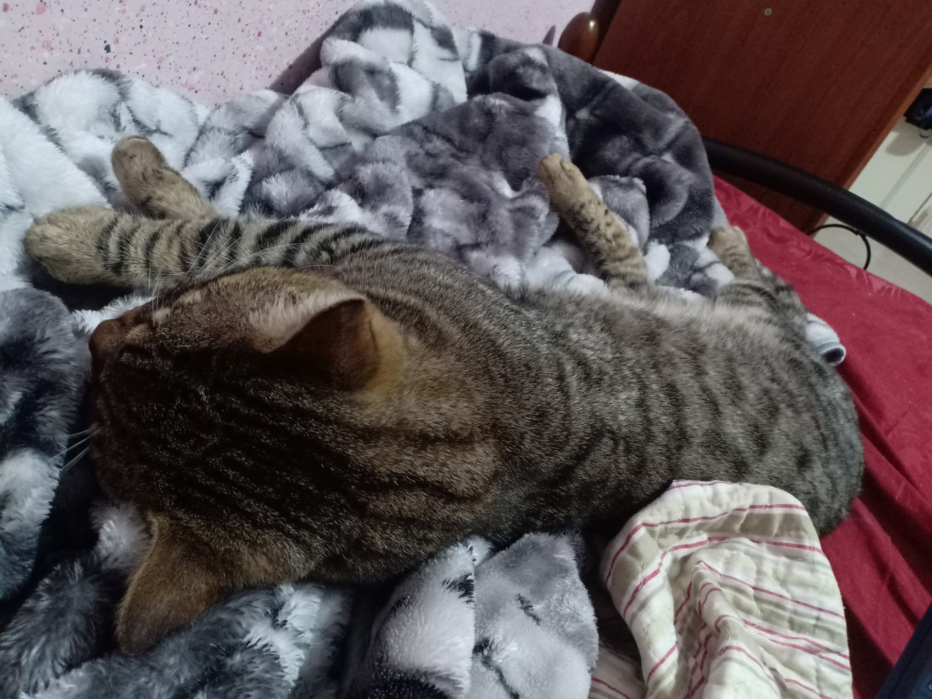 Sleeping like he pays the bills when all he does is bully the neighborhood’s cats and scream at us to feed him ![]()