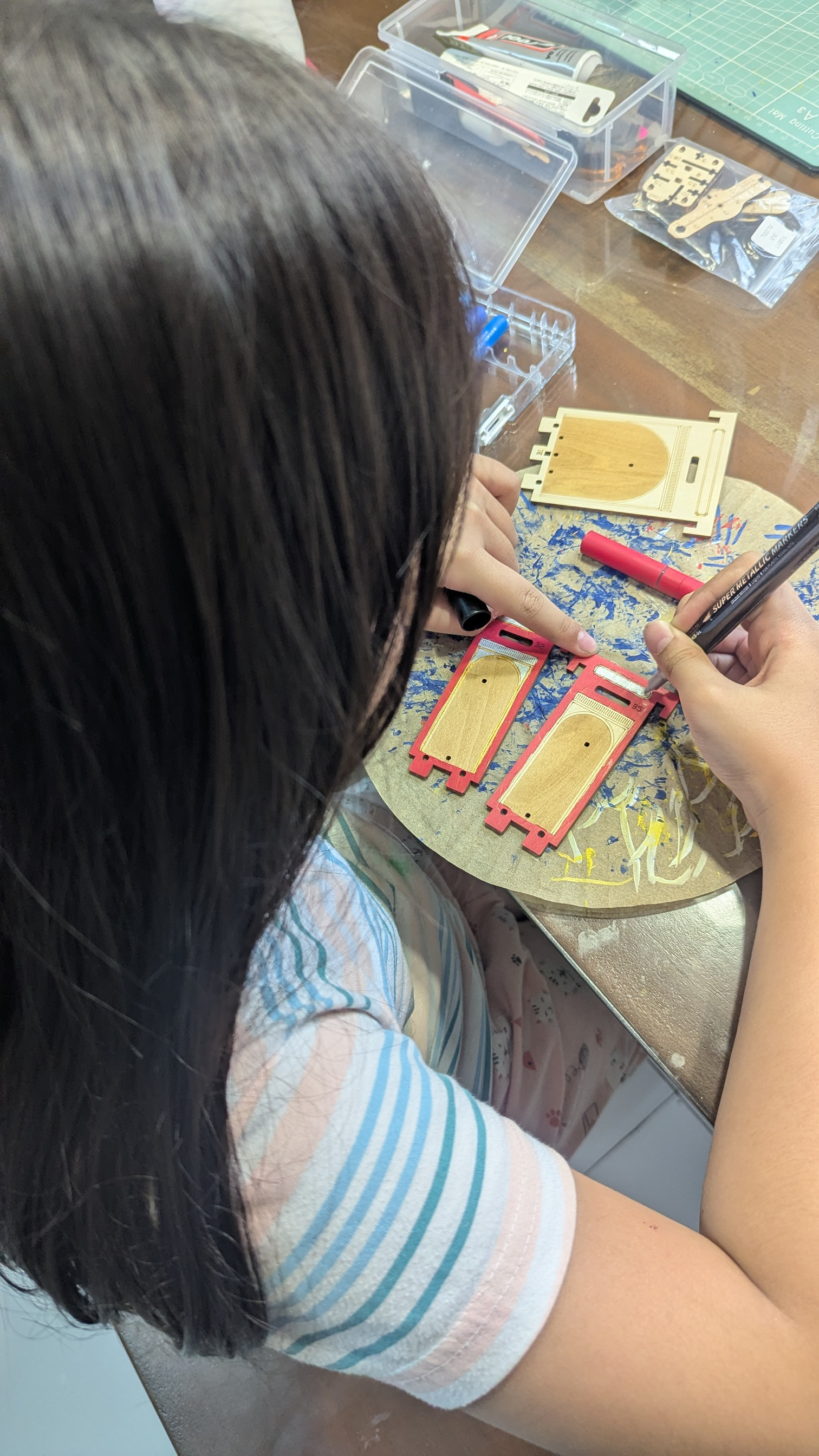 My heart is for the fact that this is now a family affair…not for them kicking you out of your craft area… Your daughter is doing a wonderful job with the painting.
