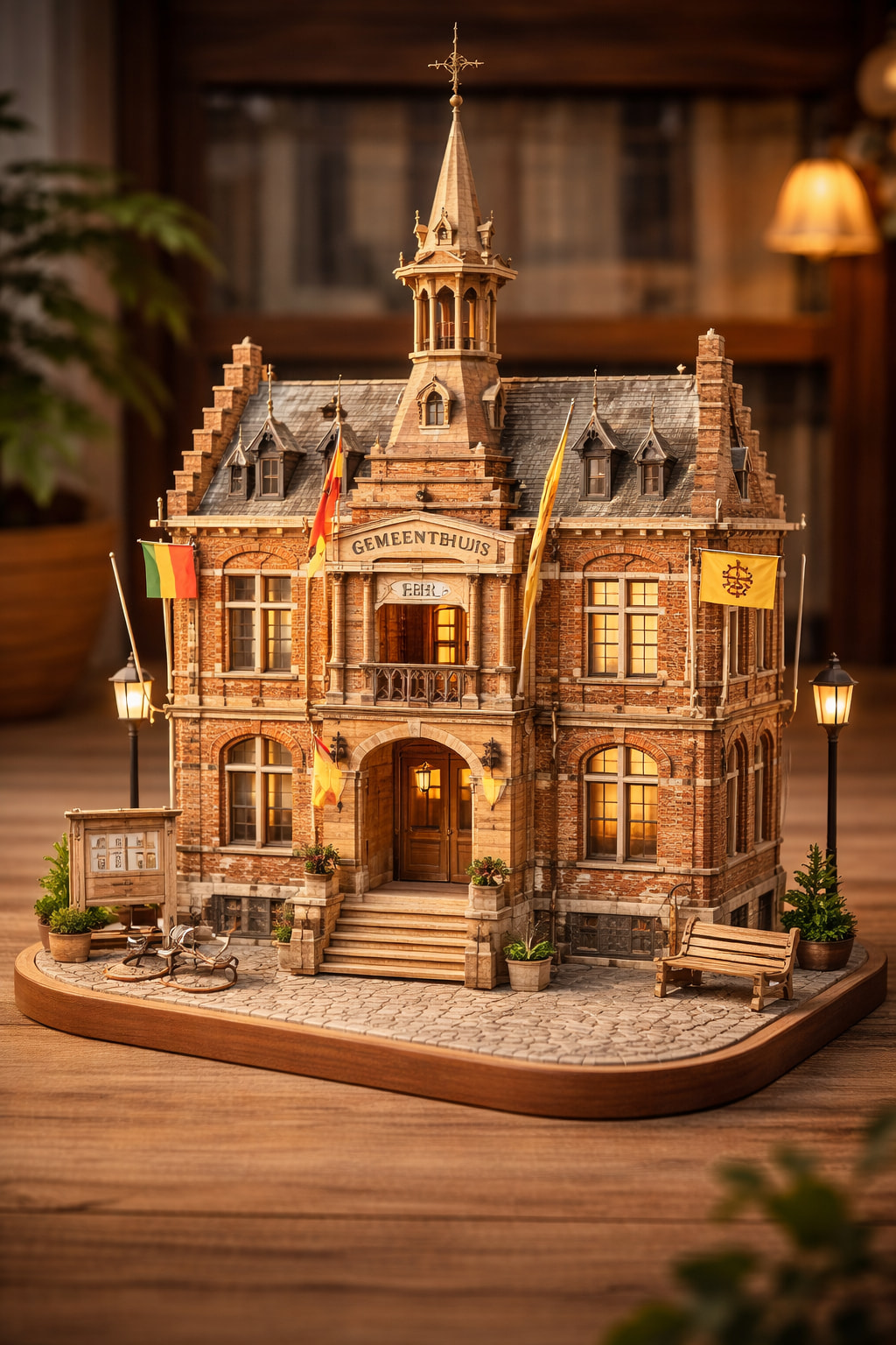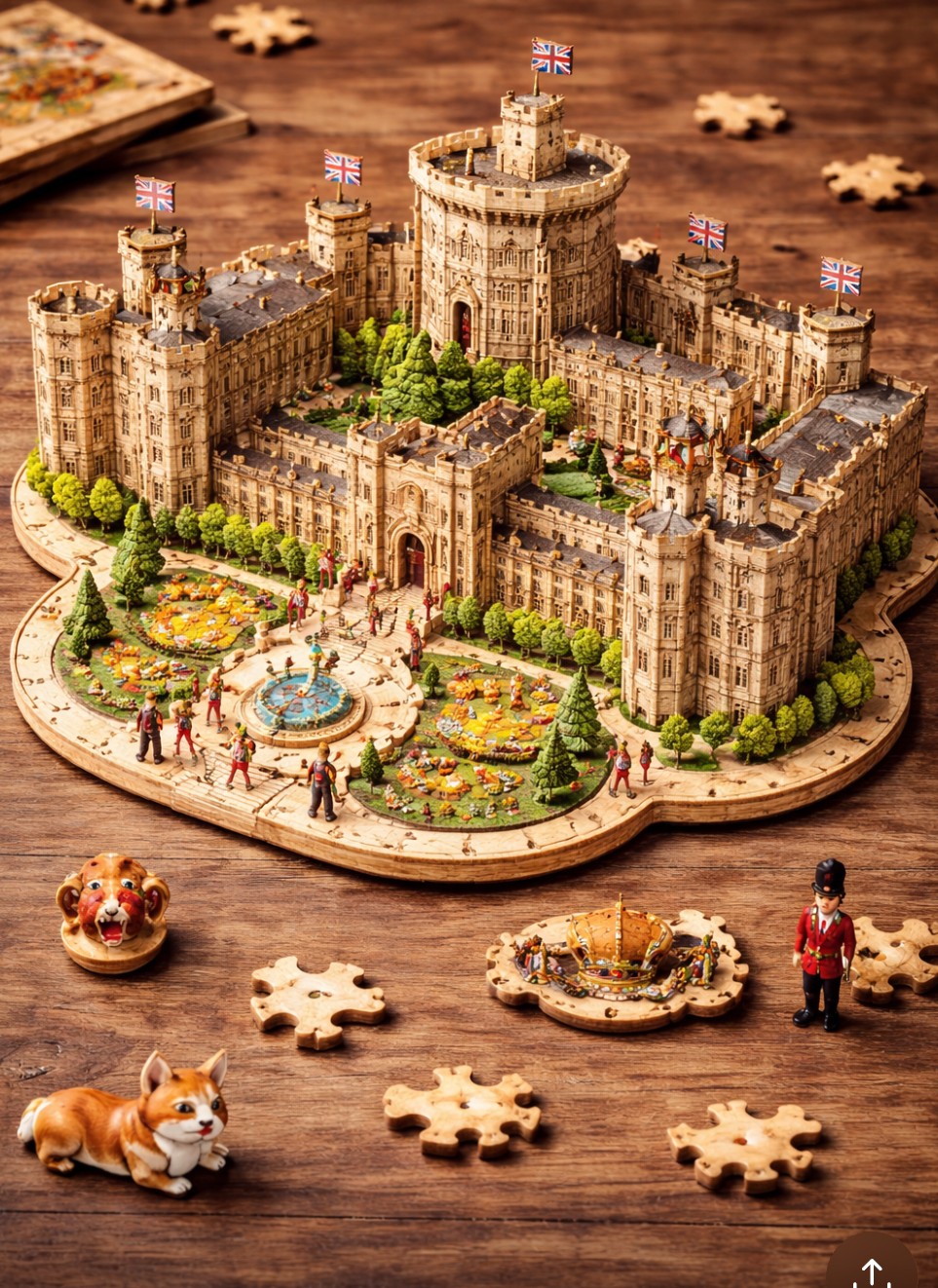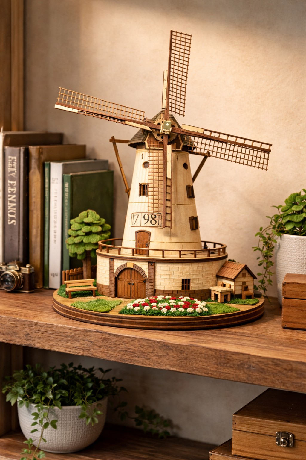A detailed wooden miniature model of [LANDMARK], in the style of Robotime DIY kits, warm natural wood texture, soft lighting, intricate structure, collectible scale, realistic craftsmanship, cozy atmosphere