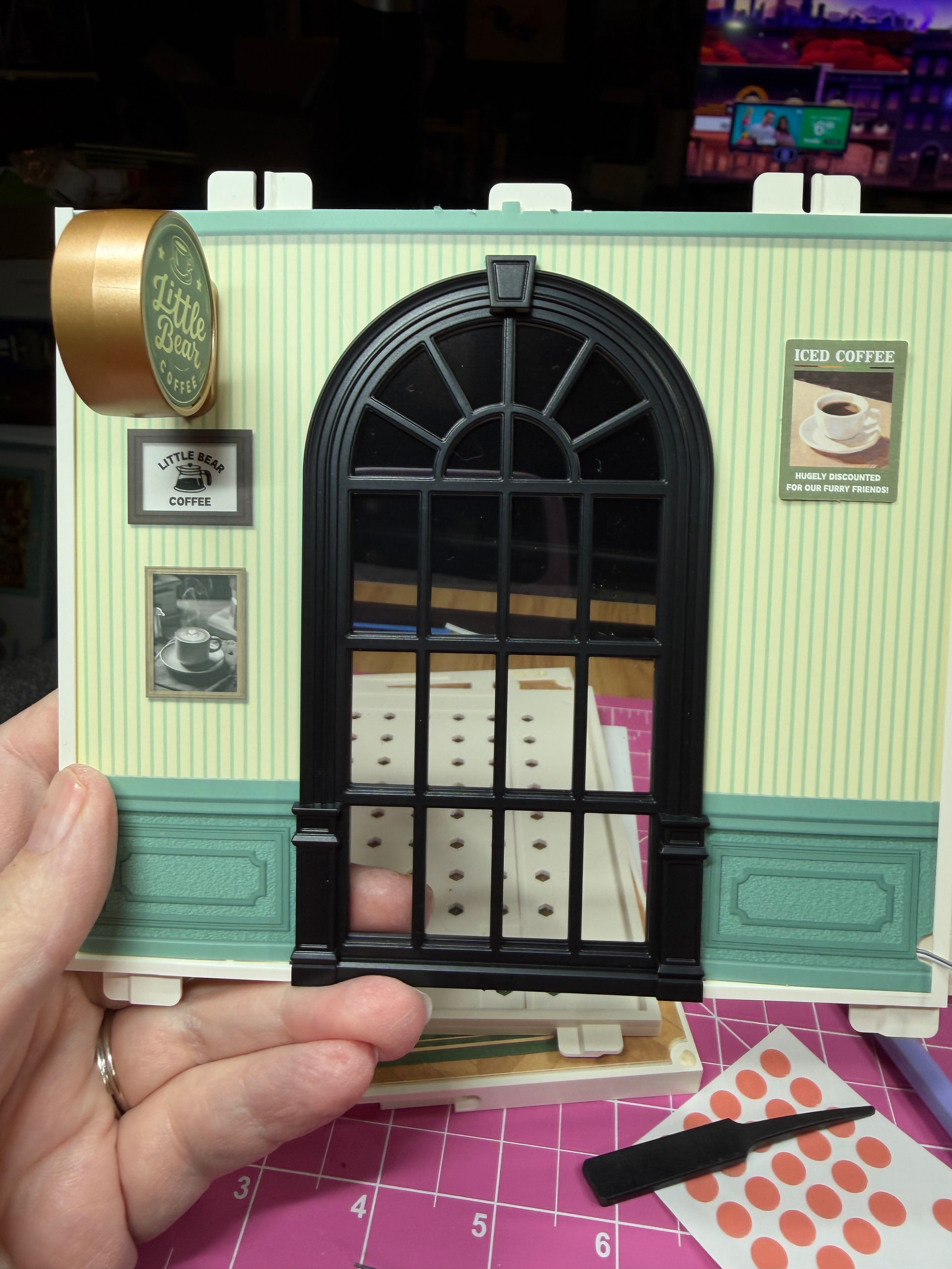 I didn’t end up doing a lot of customization on this one beyond moving a few things around, but I did use a little superglue in a few spots where pieces didn’t want to stay put on their own. There was also one sticker placement that didn’t quite look right to me, so I adjusted it to fit the space better.
