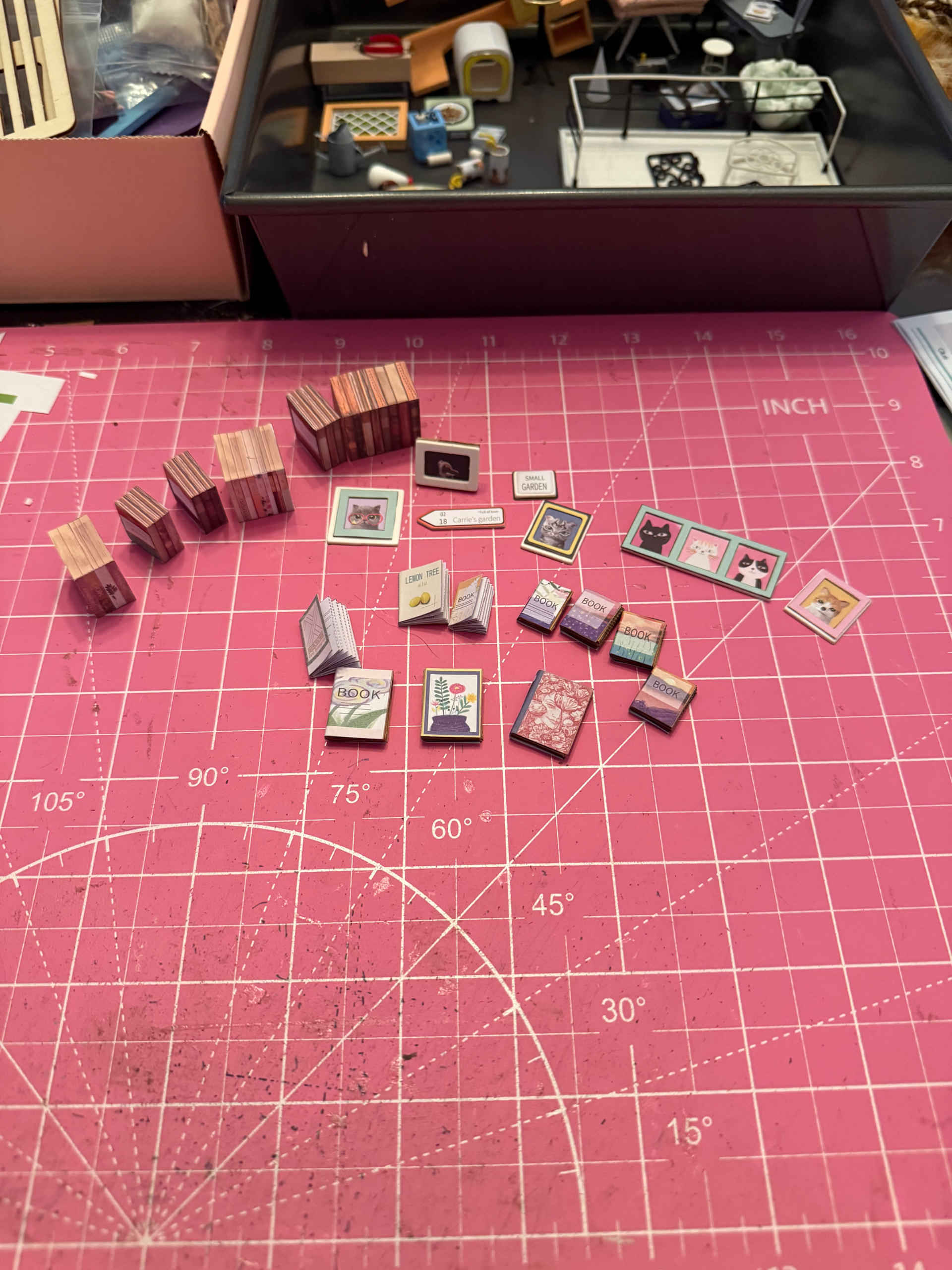 So just easy stuff, books and paintings and whatnot. Tonight is my Friday, so I’ll be off tomorrow and I can get started on the 20 plants I have to make, some of which are made out of clay which I haven’t done before, so that’s exciting!