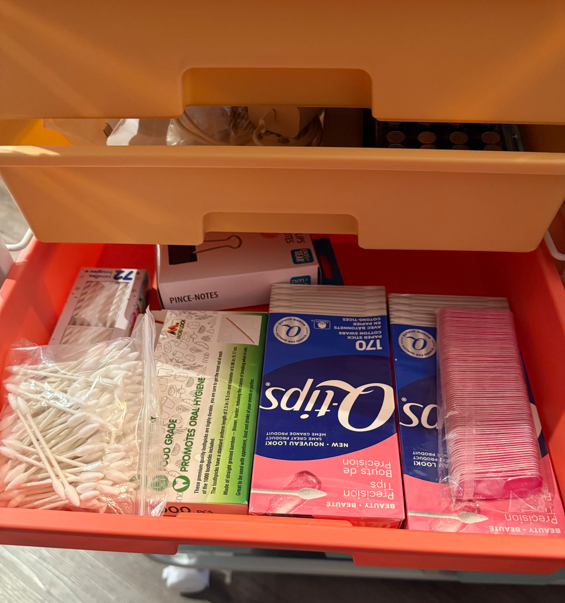 Next up is spare consumables, toothpicks, pointy Q-tips, files, etc! I really like using the pointy Q-tips, makes it easy to clean up in tight spots!