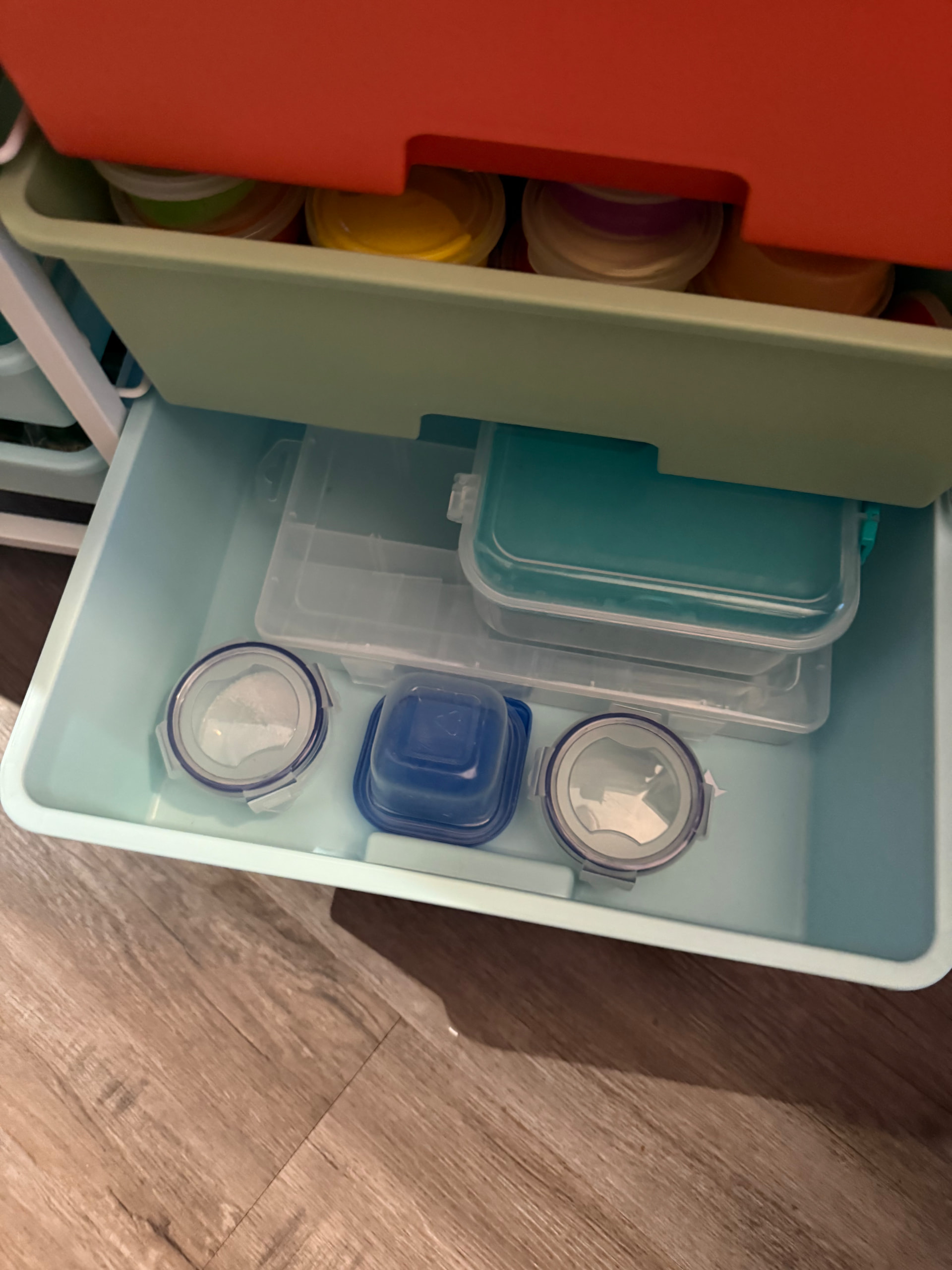 And finally, the last drawer is just random containers for when I need to organize stuff in my build, like if I have to paint a bunch of different coloured items, or make a stain, etc!