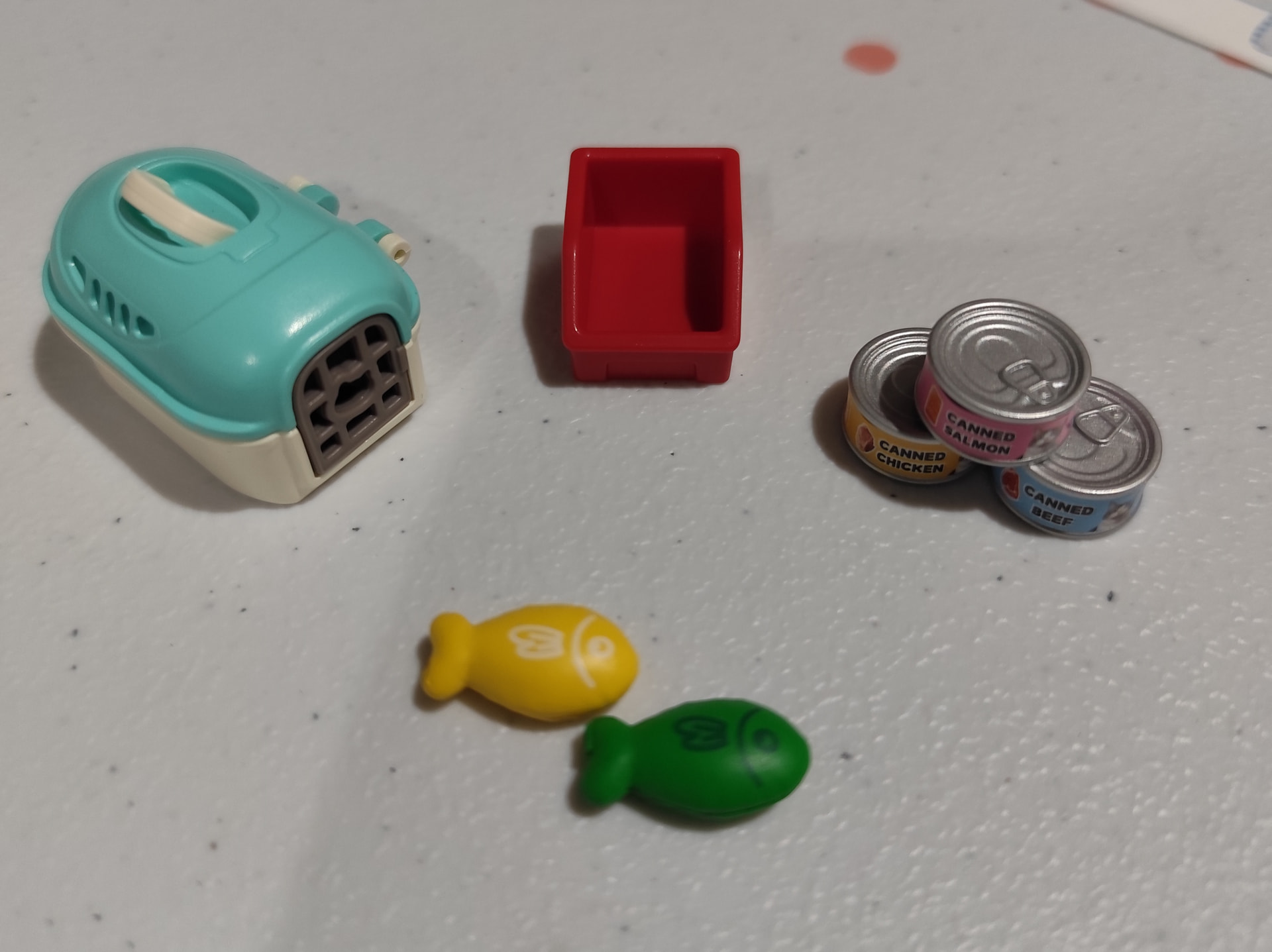 I found the Furry Friends’ Home easy to assemble and very satisfying. It comes with several small packages that you put together to create that shop-like appearance. Thanks to the layout, I added more elements and characters to the scene, like the cat’s little ball, other pets in the back houses, and the “customers.”