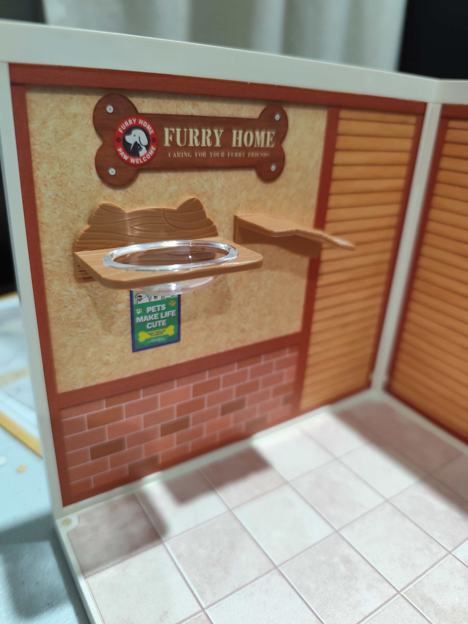For those who enjoy customizing, I feel like there’s a lot you can do with this model. You could place posters of your own pets around the shop or make a small clay figure and display it there. I wanted to give it my own touch by changing part of the walls with adhesive sheets to make it look a bit more pink ![]()