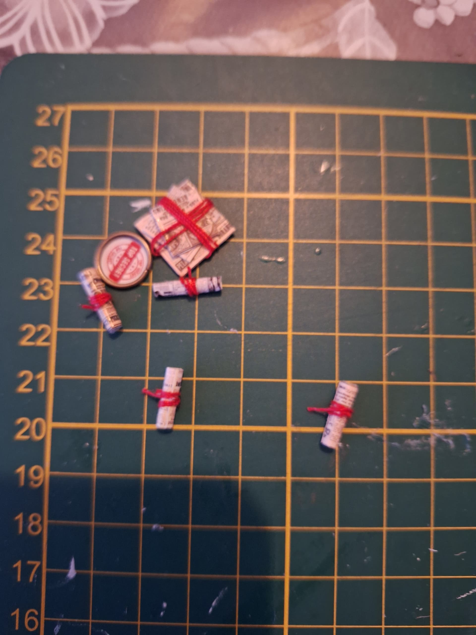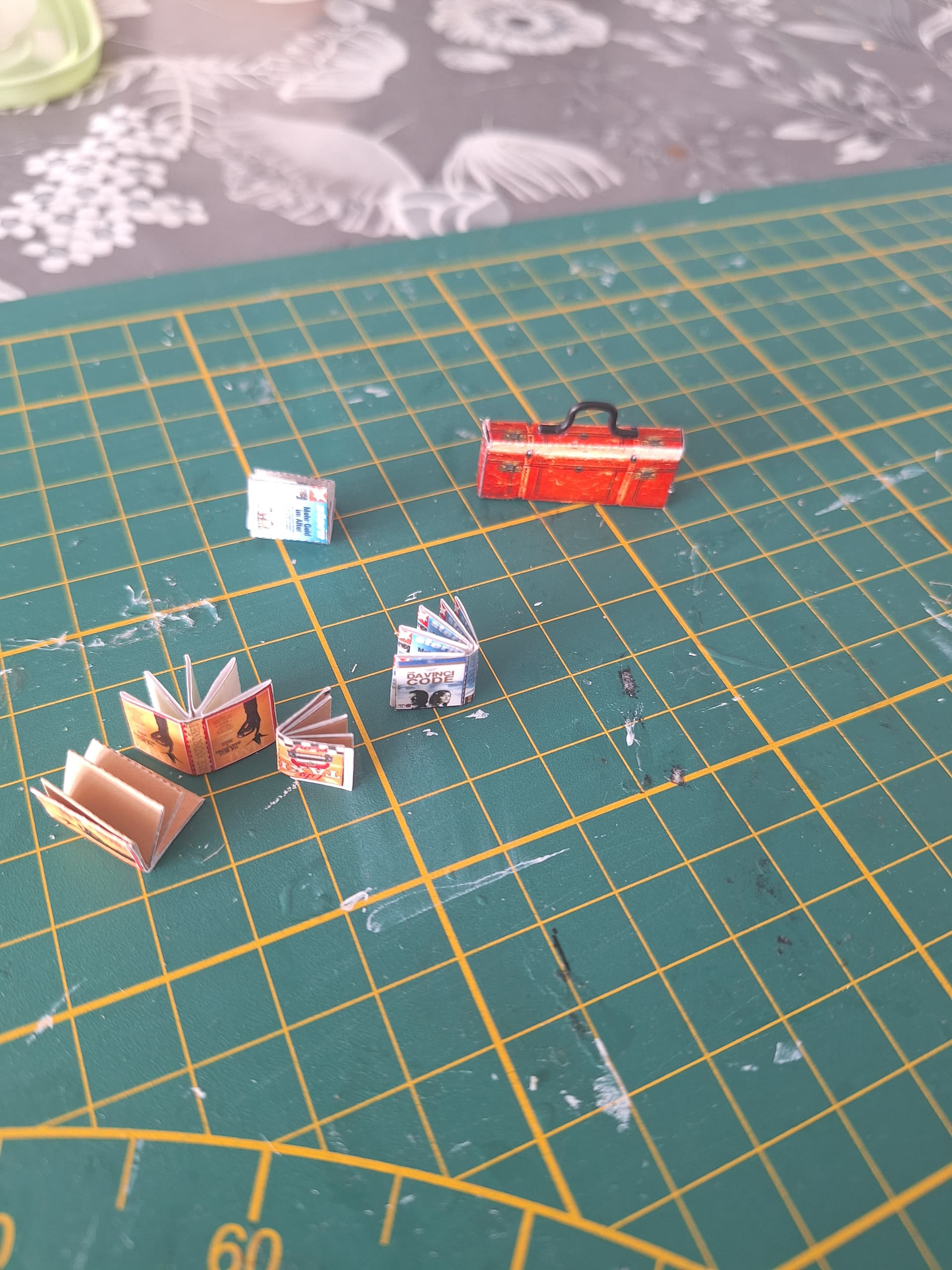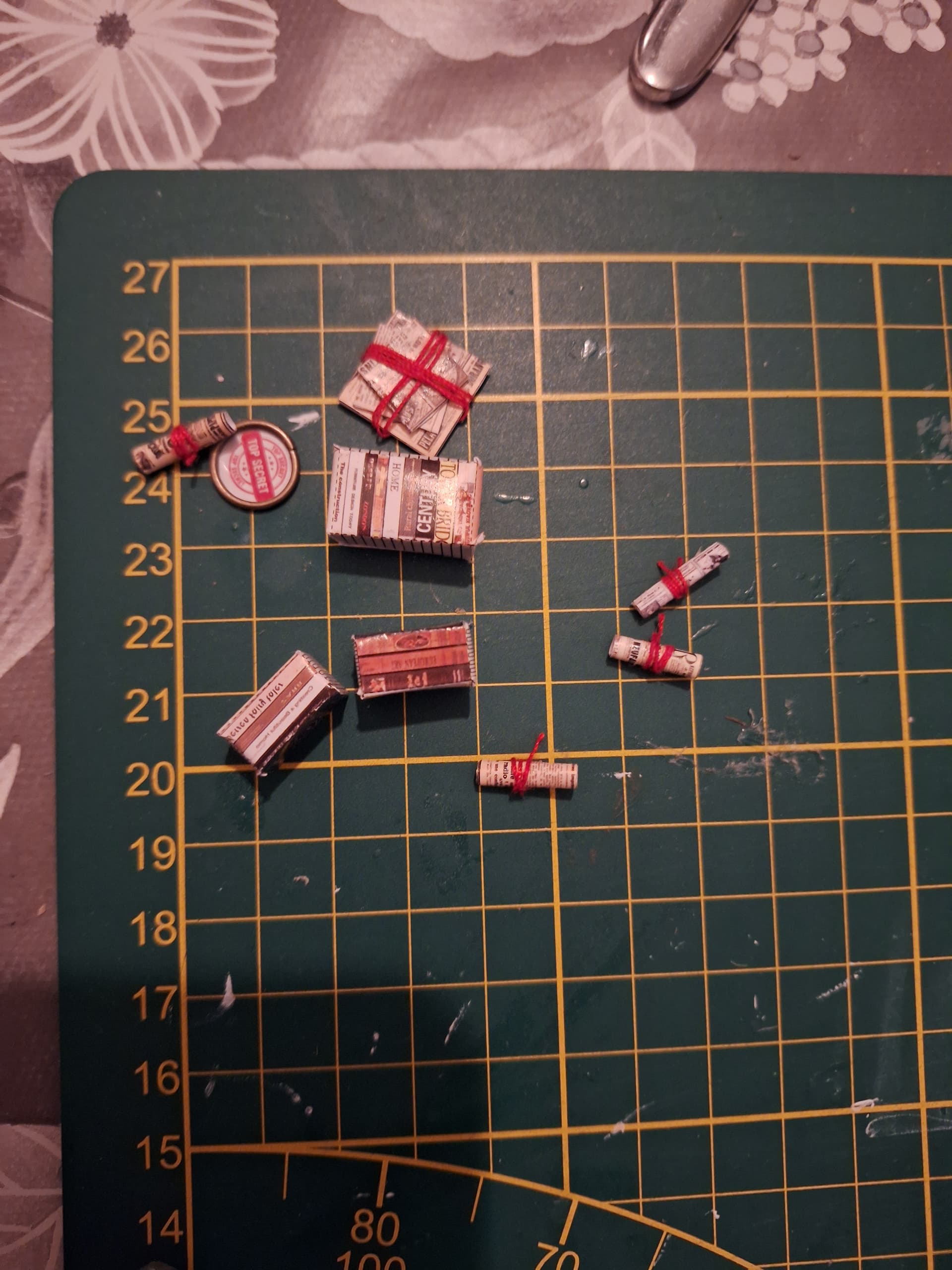 Made some progress on tjr detective agency. Love making all the little things. The quality of kit is actually very good. It was fun folding the newspaper and wrapping the red wire around it. I saved the box from sunshine town to store everything in because it didn’t came with a box. I use the small brush from sunshine town to spread glue on the small parts. I also did some wire work to make the handle for the suitcase. So proud of myself.