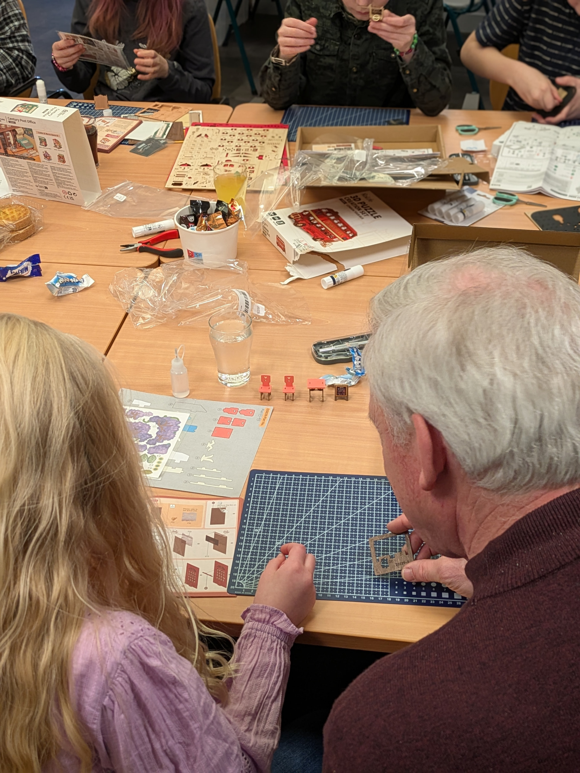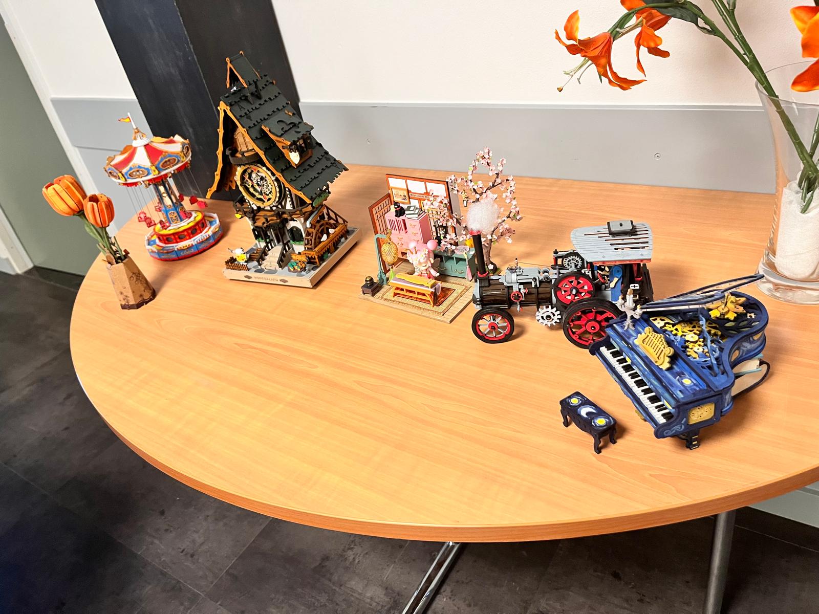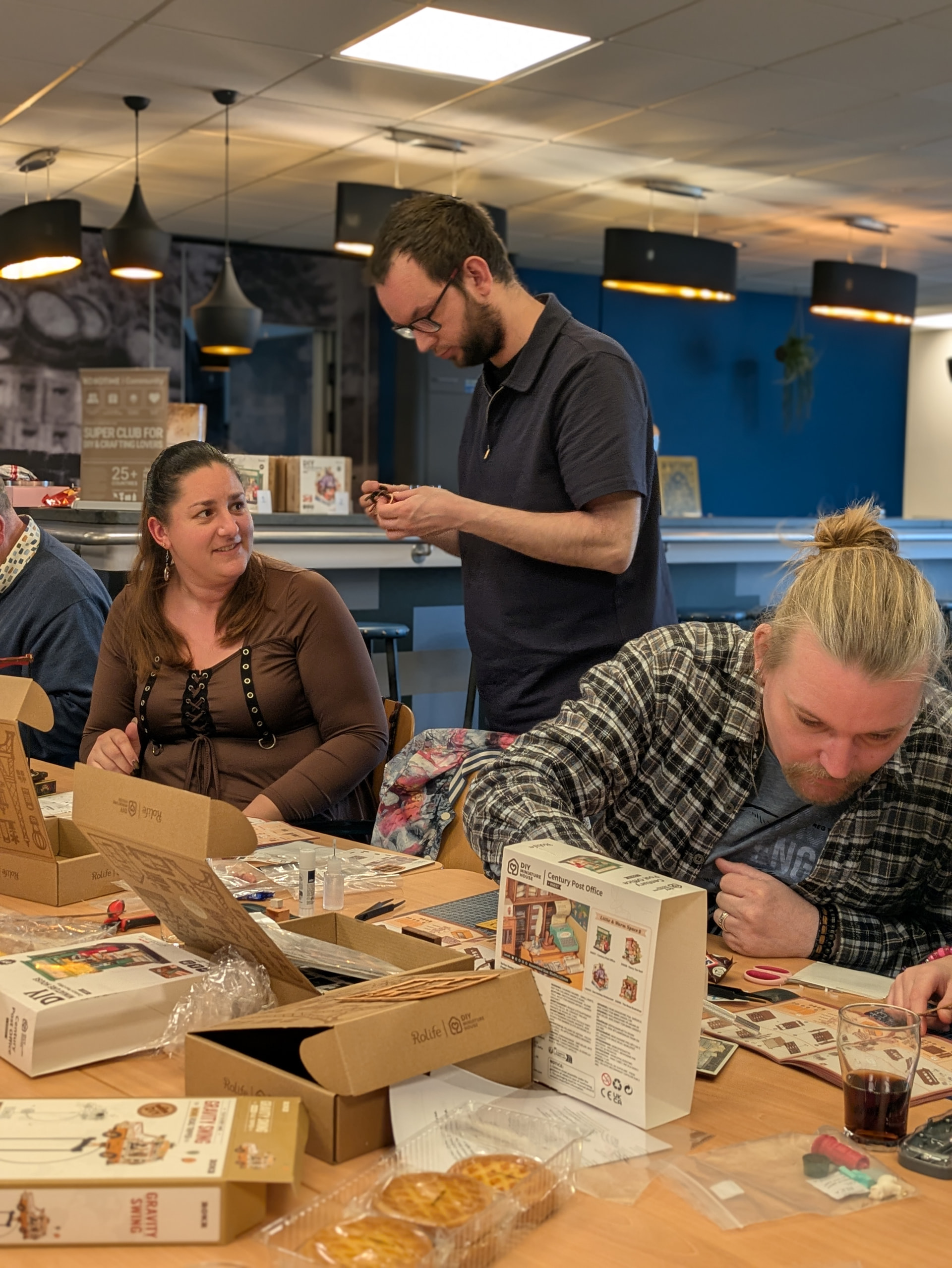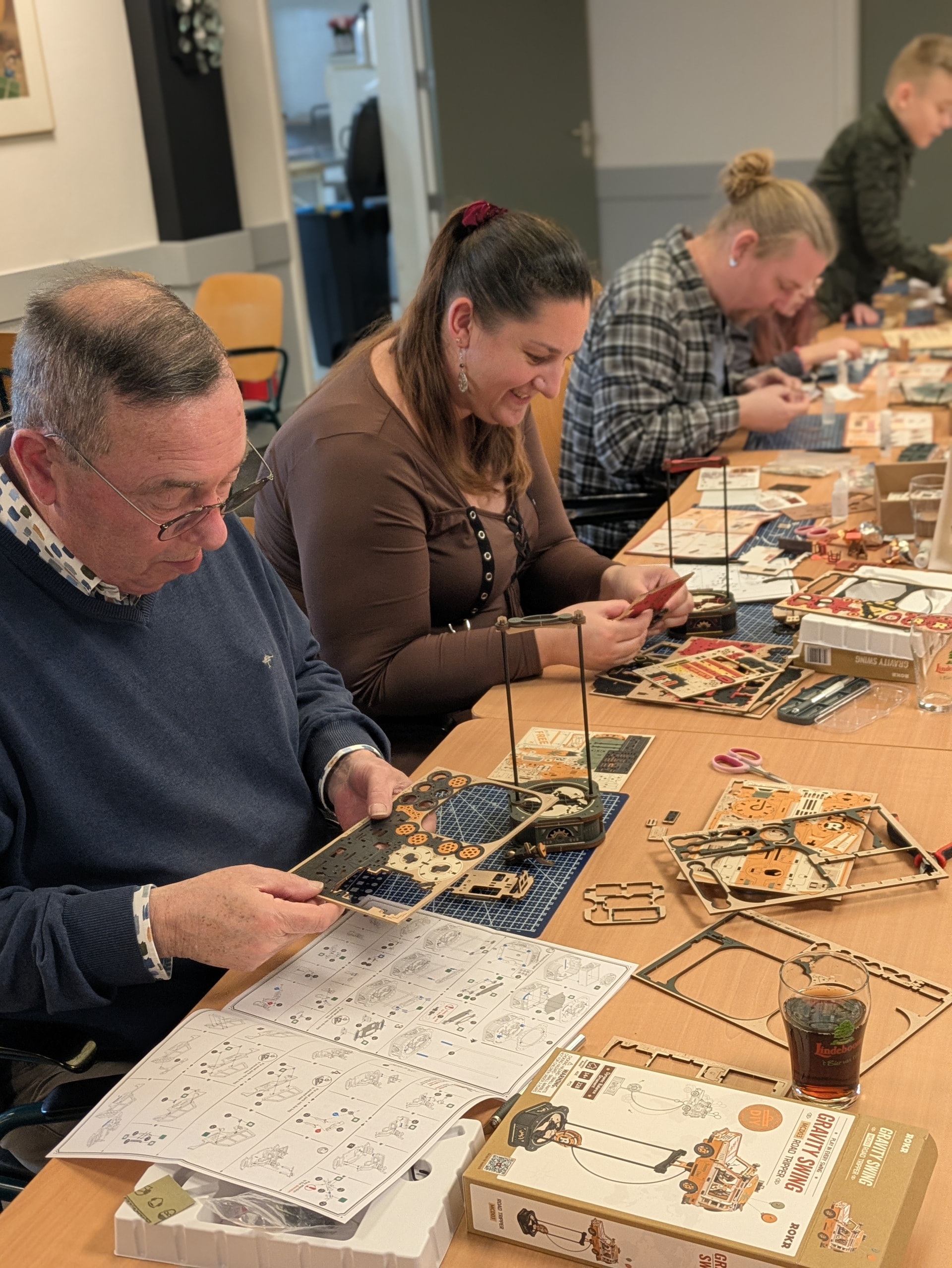 Everyone was happy with the kit they received. After an introduction about Robotime, it was time to get building. There were some experienced builders, but also a few inexperienced ones. It was fun to see how everyone helped each other. Here and there a part broke, but luckily there was plenty of superglue. Everyone was focused on building which made them completely forget that I had also brought something tasty .