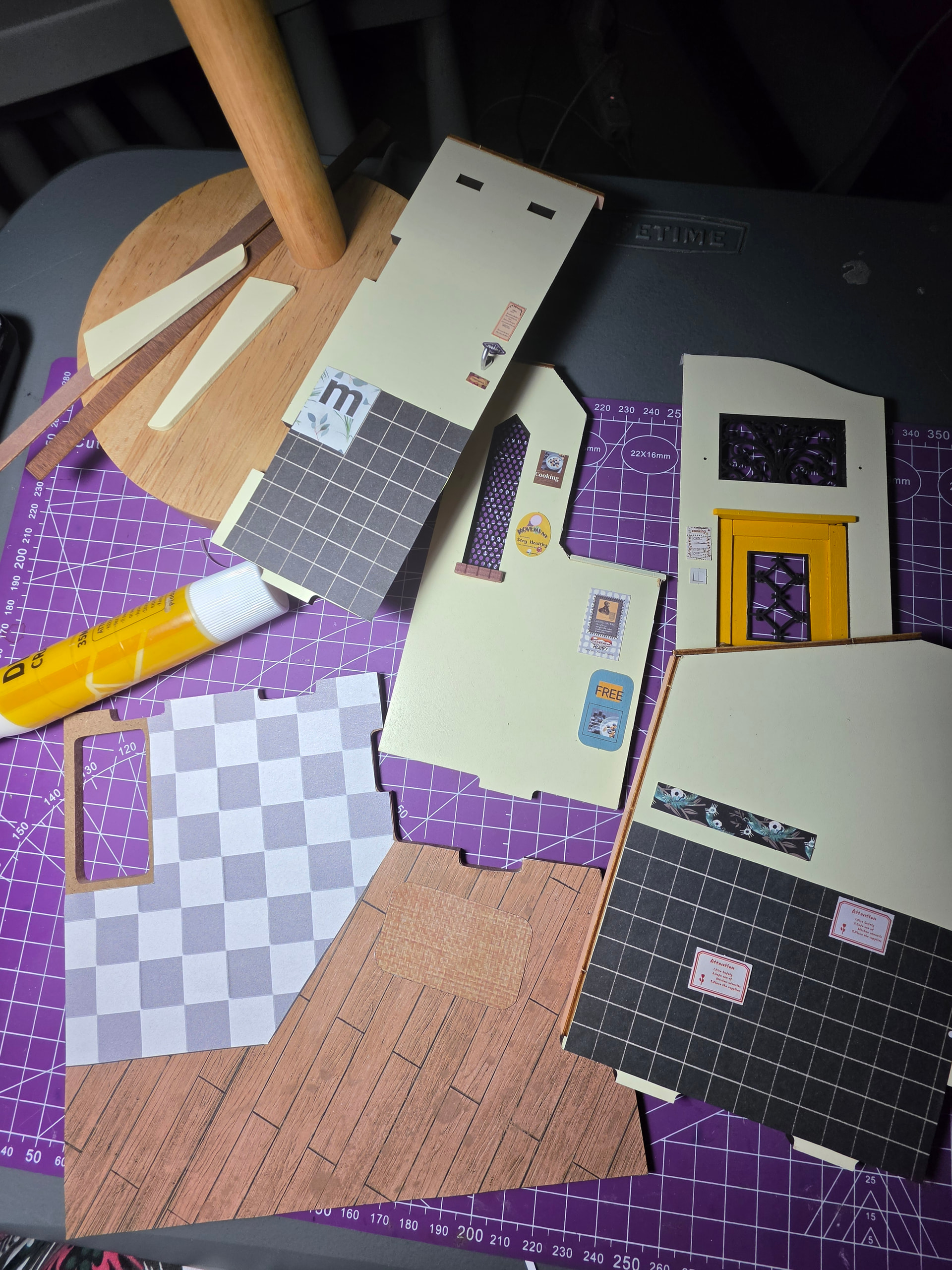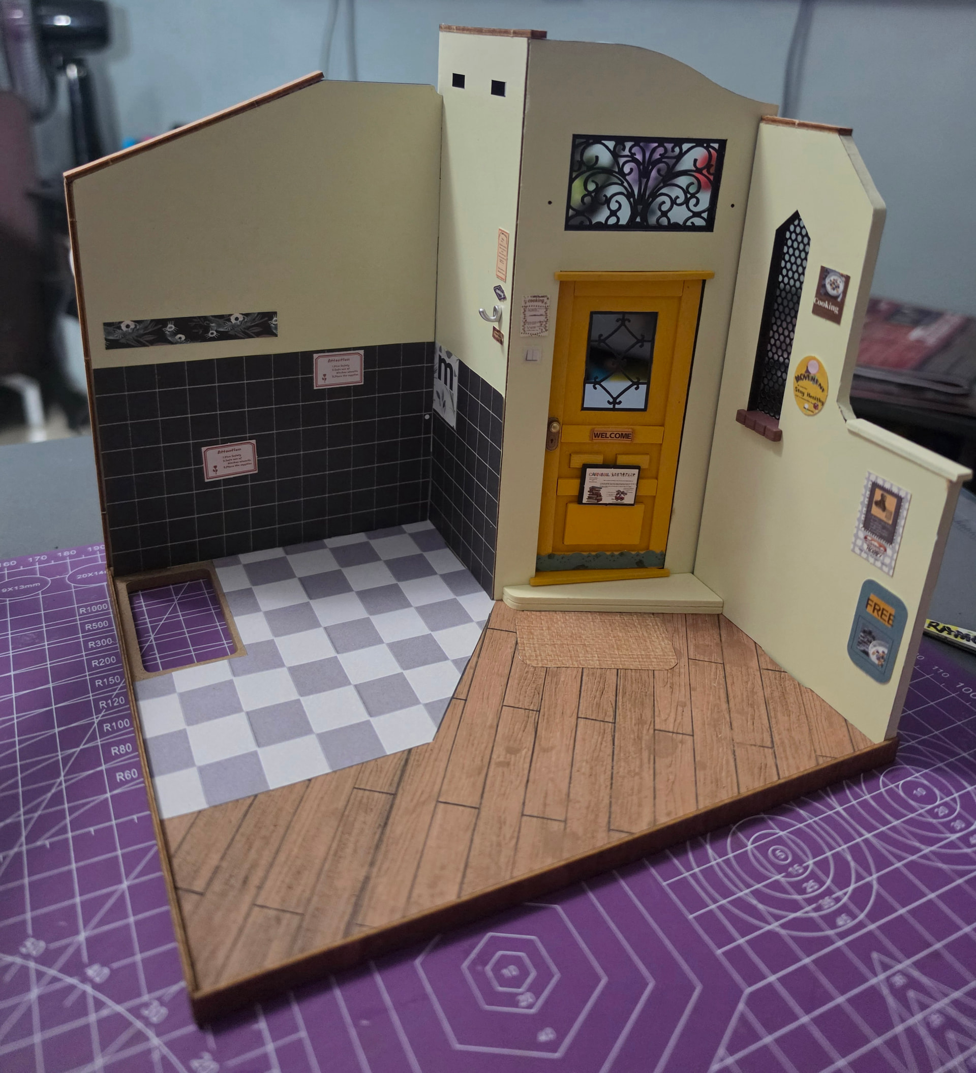 I just finished assembling the kitchen’s framework and I’m satisfied with how it’s coming together. I’ve built quite a few DIY miniature houses before, but this is actually my first time working on a space that focuses on the structure of a home itself. I usually build kits that are related to dessert shops, restaurants or book-themed stores, so this feels like a refreshing change of pace.