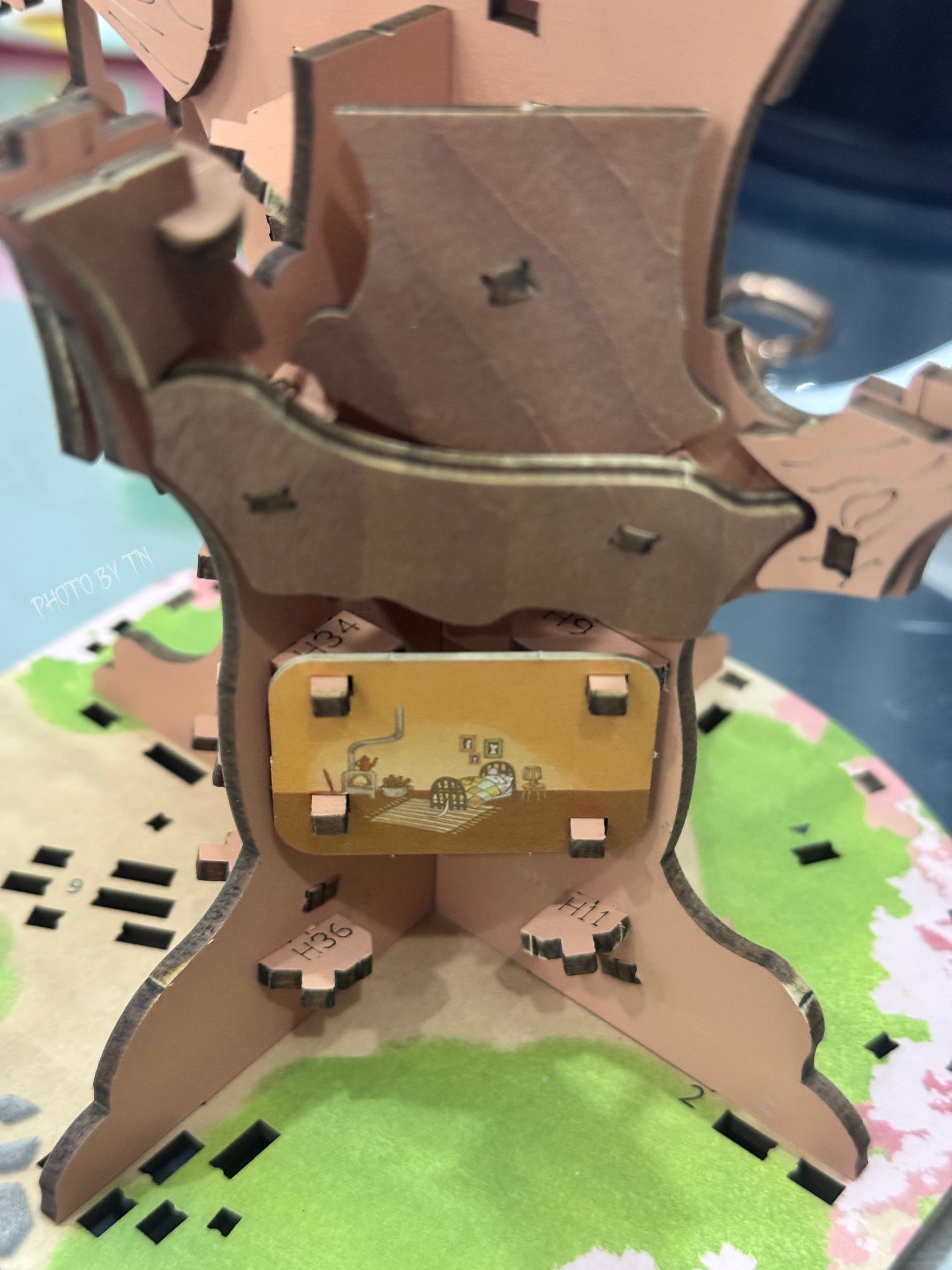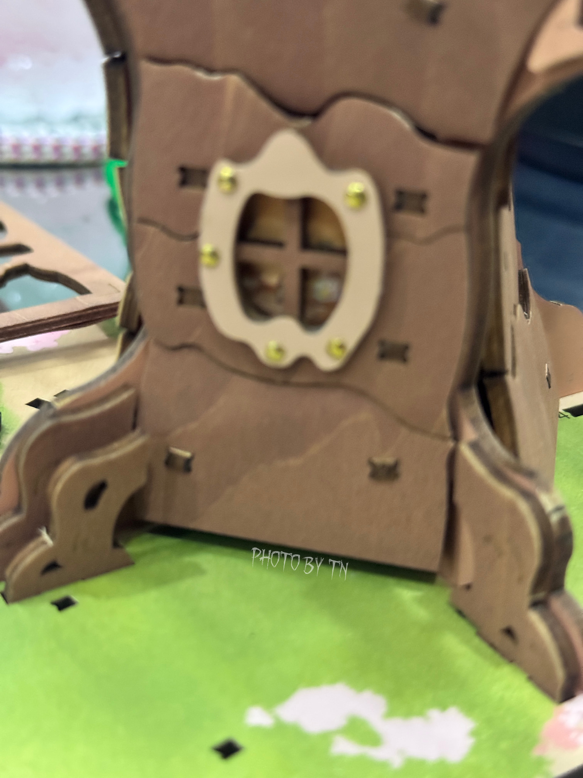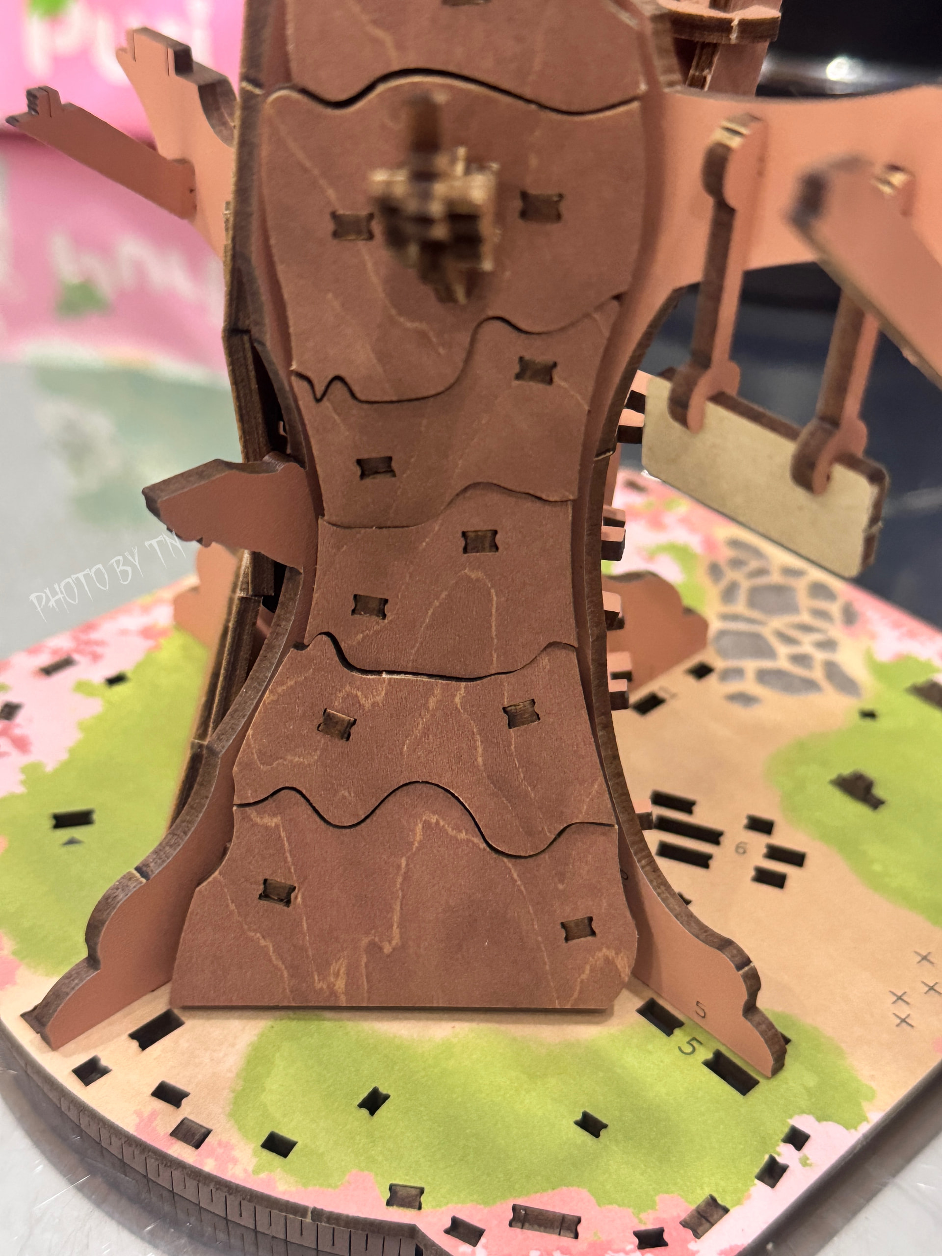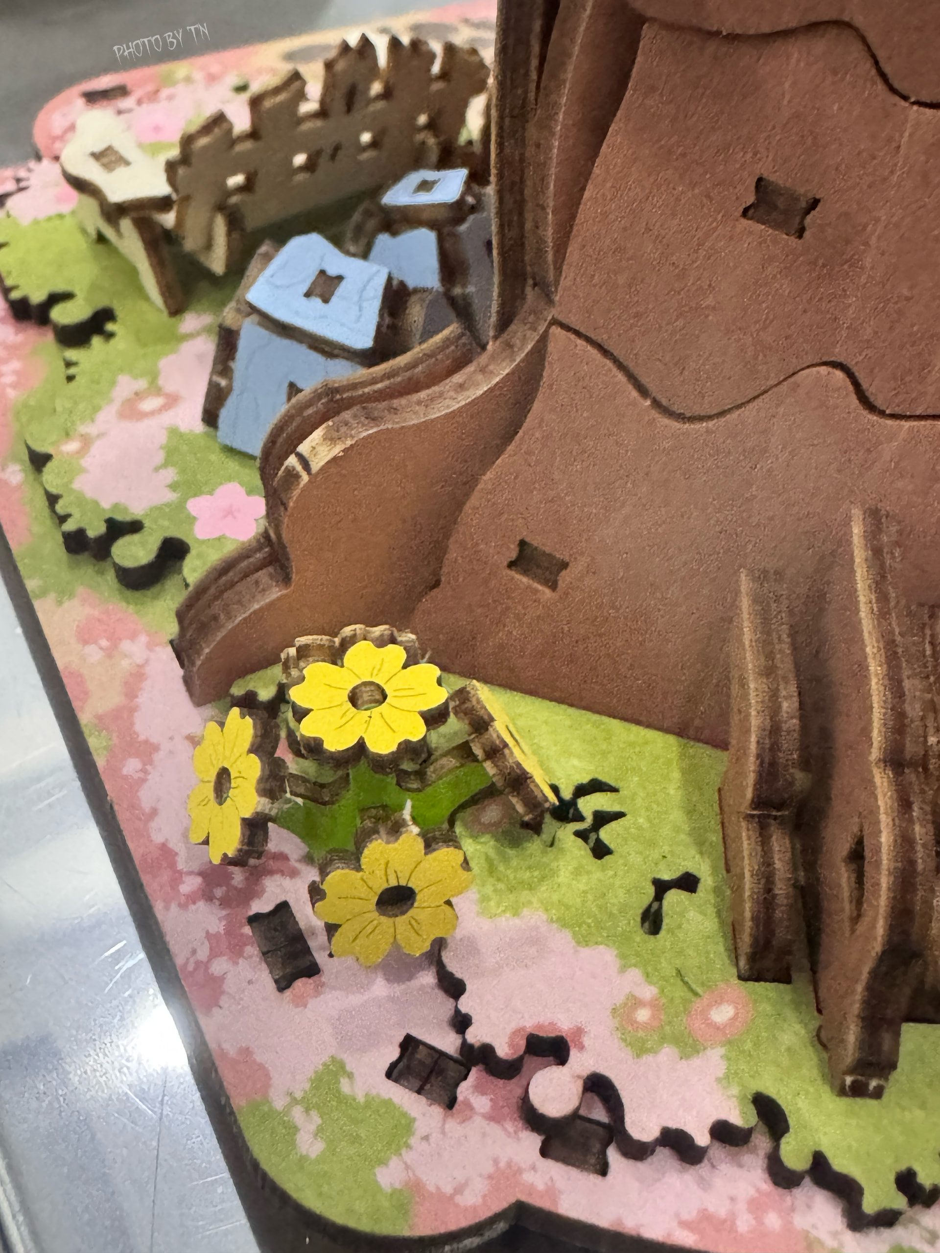 After finishing the cherry blossom layers, I started attaching the tree. Everything was detailed with instructions; I just followed each step, and the complete tree was finished. I really like the little bench next to the base. It gives me a feeling of tranquility, like sitting under the tree in the afternoon, watching everything around me. No noise, no busyness, just a moment to find peace of mind.