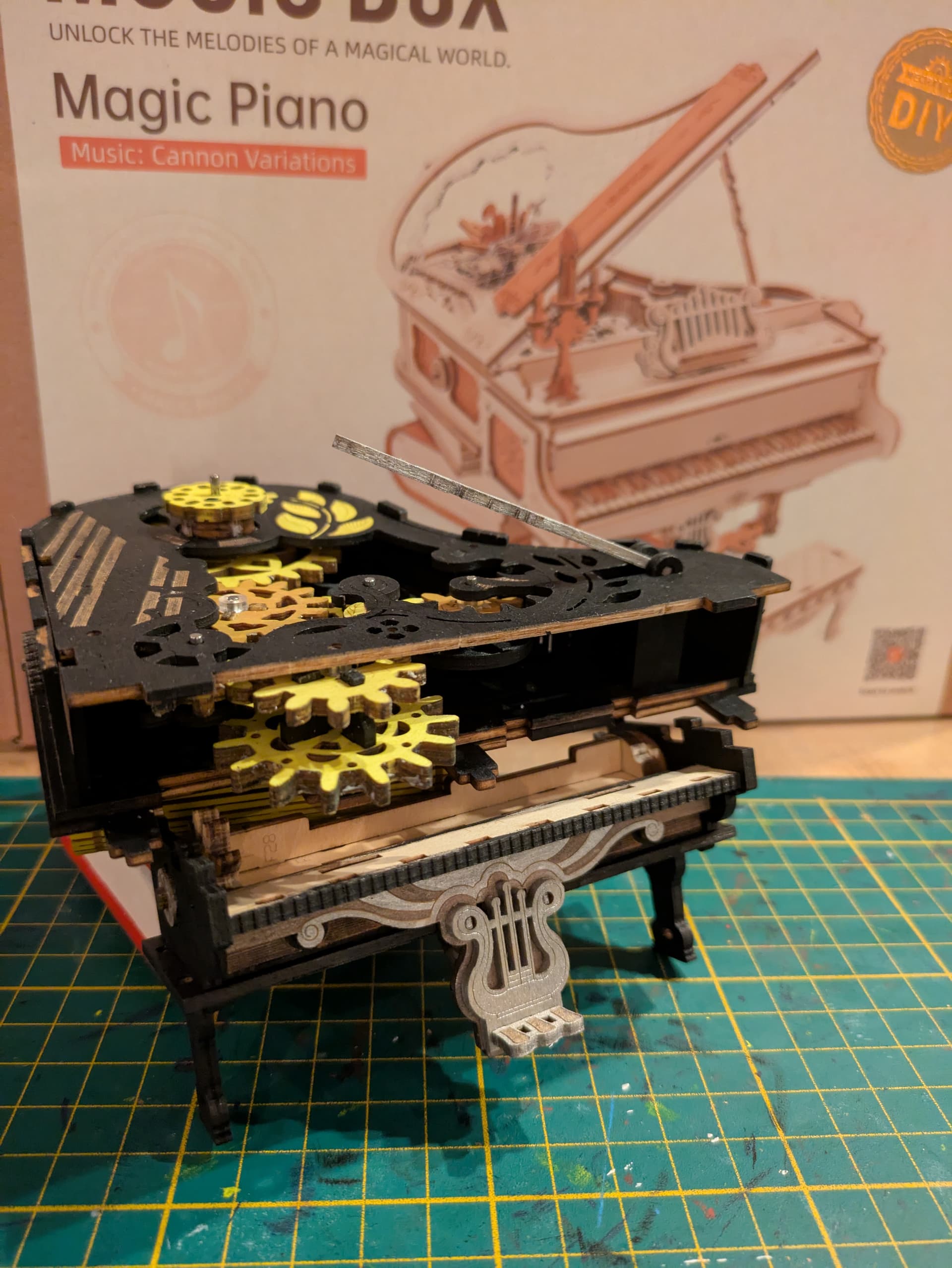After a week of building, I’ve already made good progress on the piano for my niece. I still need to get used to the colors, but this is how she chose it. She actually wanted all the details silver, but I think that’s a bit too intense with the black, so I added a bit of a bronze color.