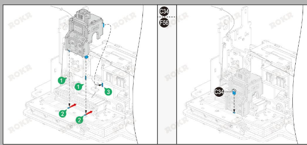 Because of that, I can’t properly put piece C34 in front of it, because since that part is not properly moved, the hole prepared for C34 to fit is not 100% accessible