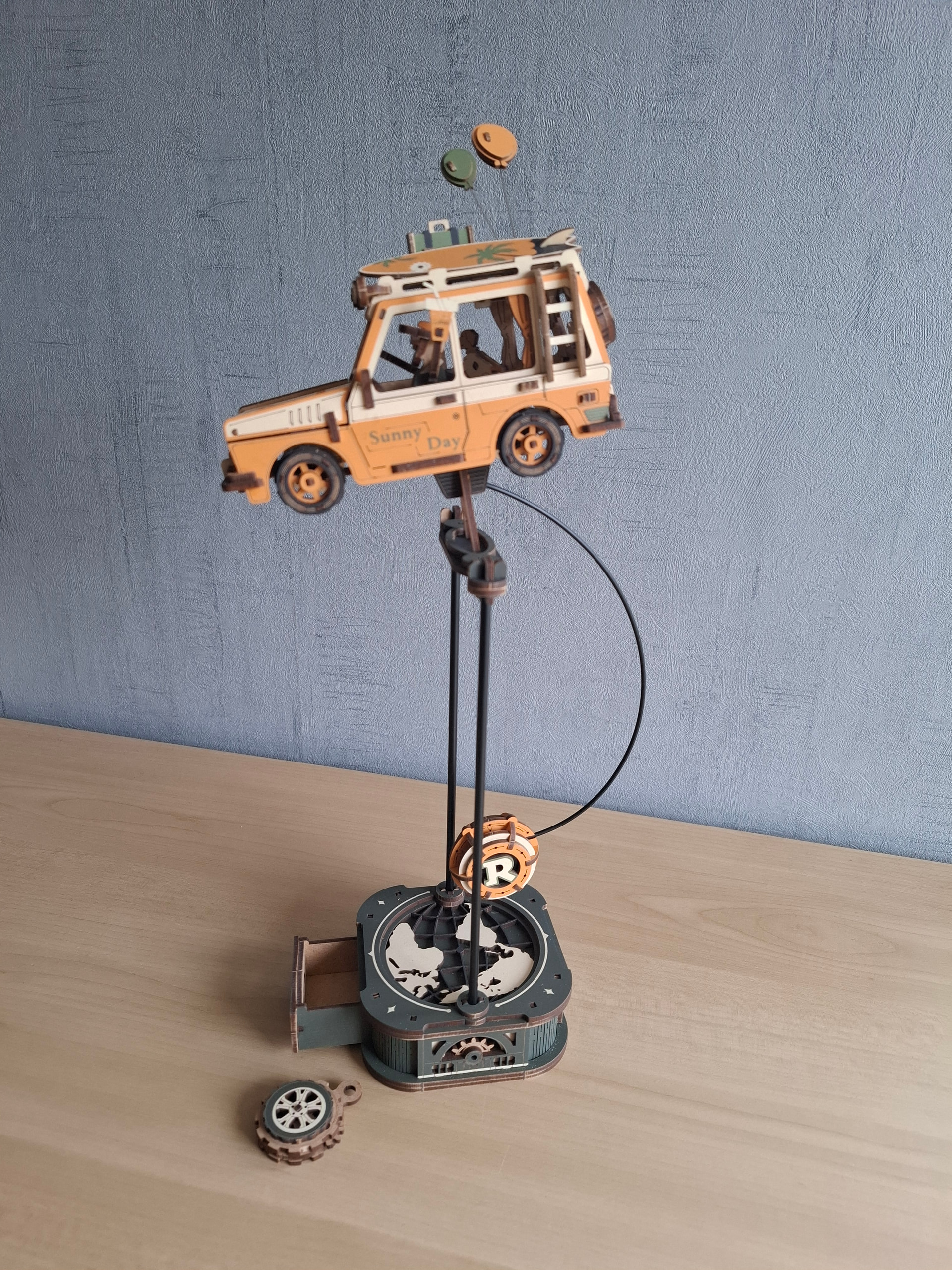 Finished it this afternoon, this is the third one I did in this series, this is most difficult one of the 3 I did in this series, I went and to my daughters room with it and poked here and said “yellow car !!!”. So this was a real challenge build for me, lots of super tiny pieces on a very detailed build. I had a breaks, a pieces on the dog that I fixed, the windshield wiper I decided to glue on the outside of the front car window, but this way you get a better view on the man inside the car and the little details inside the car, The man inside isn’t moving that smooth then the others in the boat and the plane I think.
