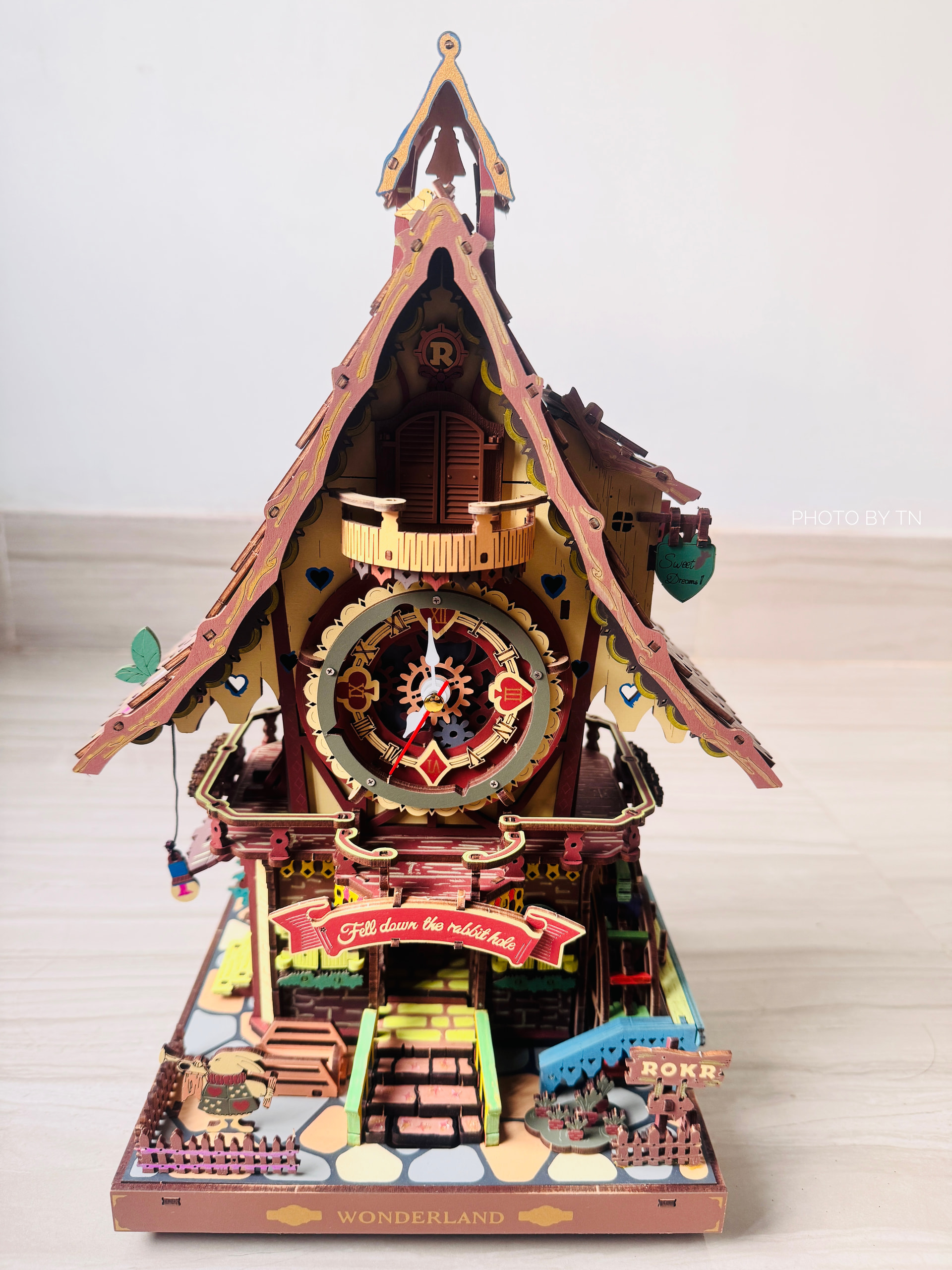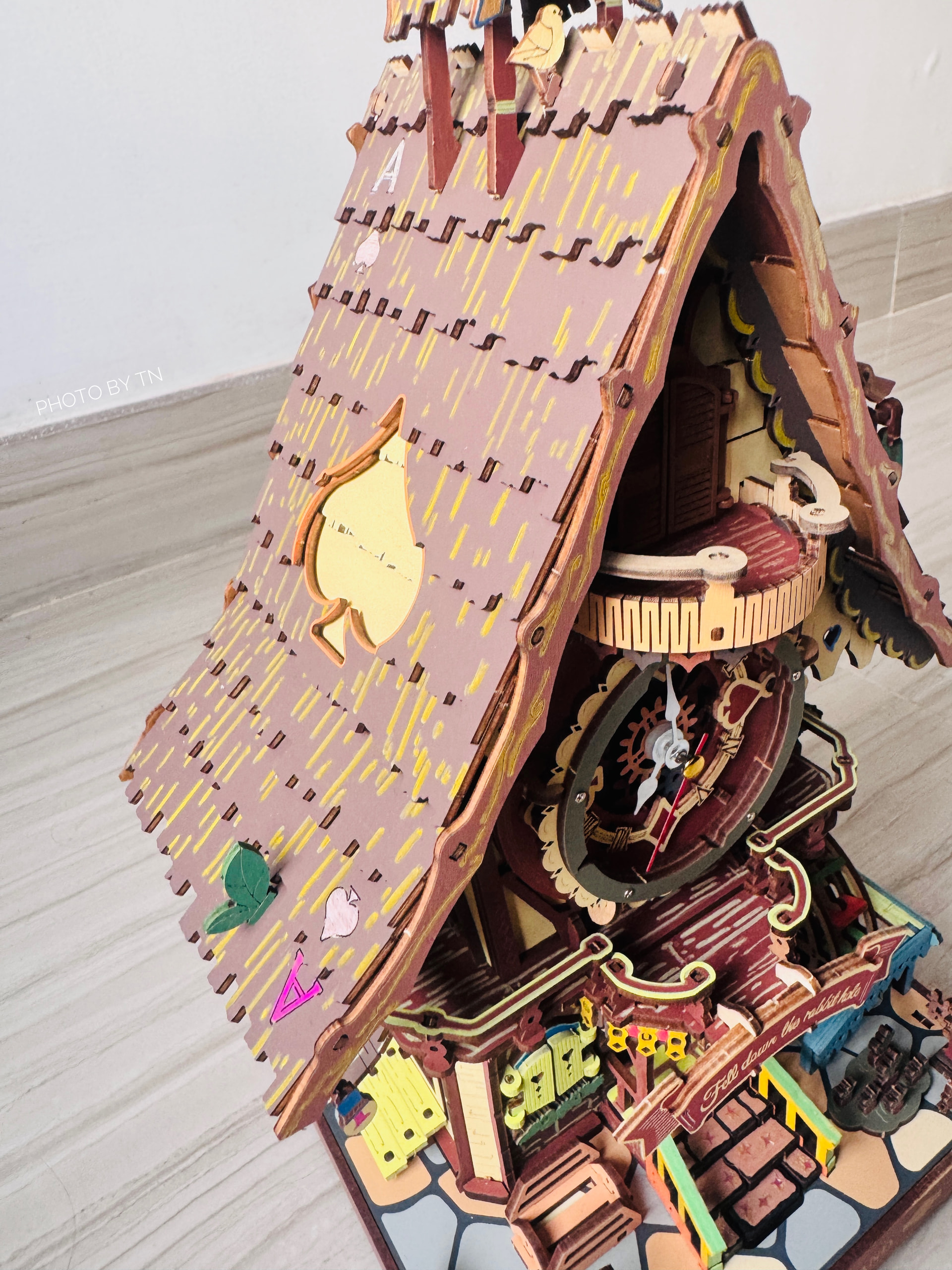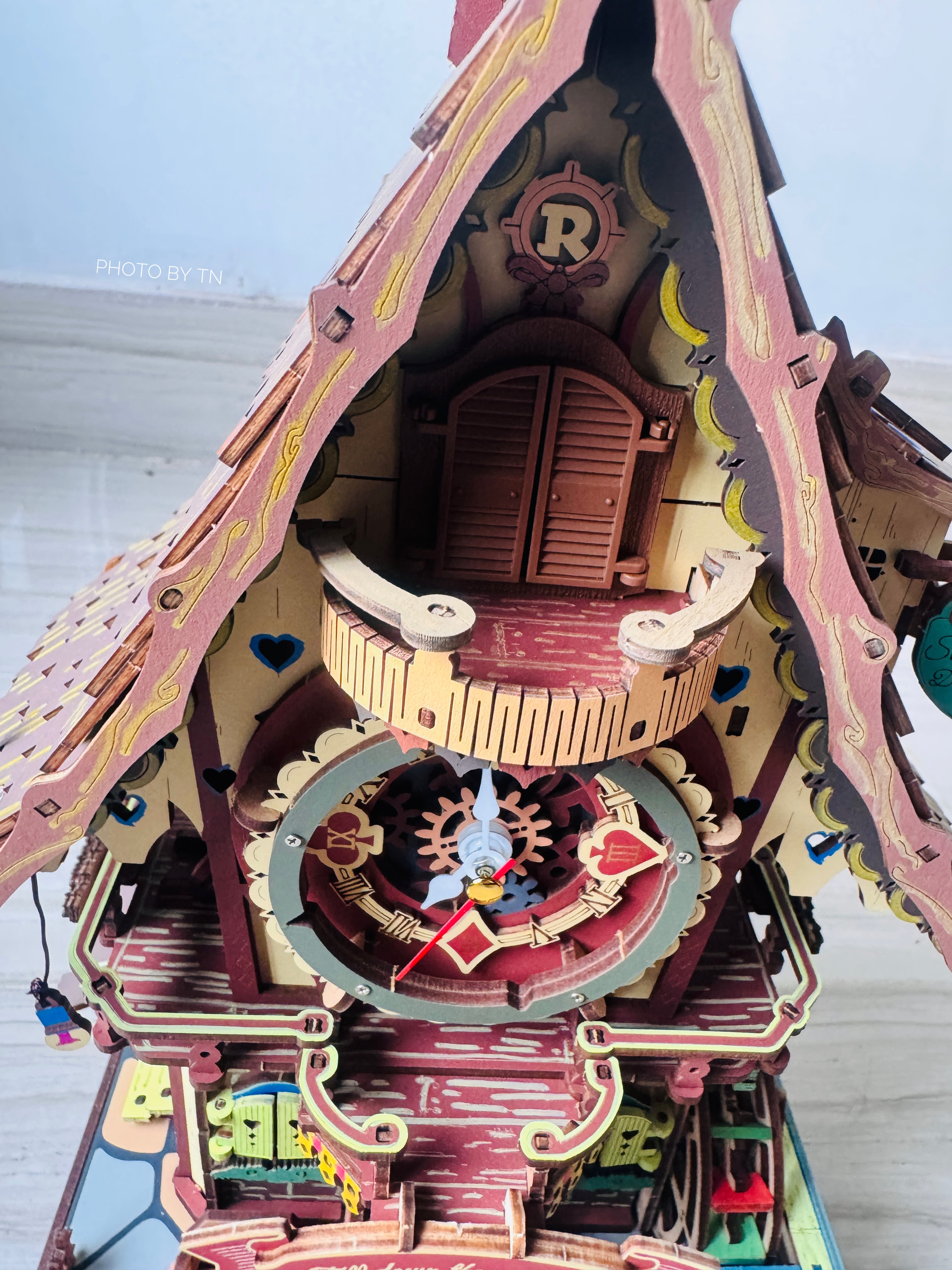 Carved from warm wood, the clock waits silently until the hour arrives. Then, with a gentle click, a tiny door opens, and the little cuckoo bird appears, calling out its cheerful song — marking the passing moment in the most delightful way
