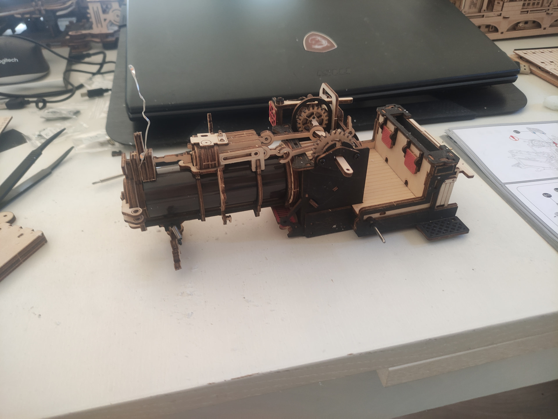 I think I am about halfway now and I can conclude… That this is definitely NOT your beginners kit. Do not start with this one if you have not got any experience with building kits at all. Please take my word for it. It has so many metal pins and gears that lock into others (and vice versa, because it can reverse as well), and moving parts it is (in my opinion at least) probably one of the most (if not the most) challenging builds I have done so far. I am actually surprised that I did not break anything yet.