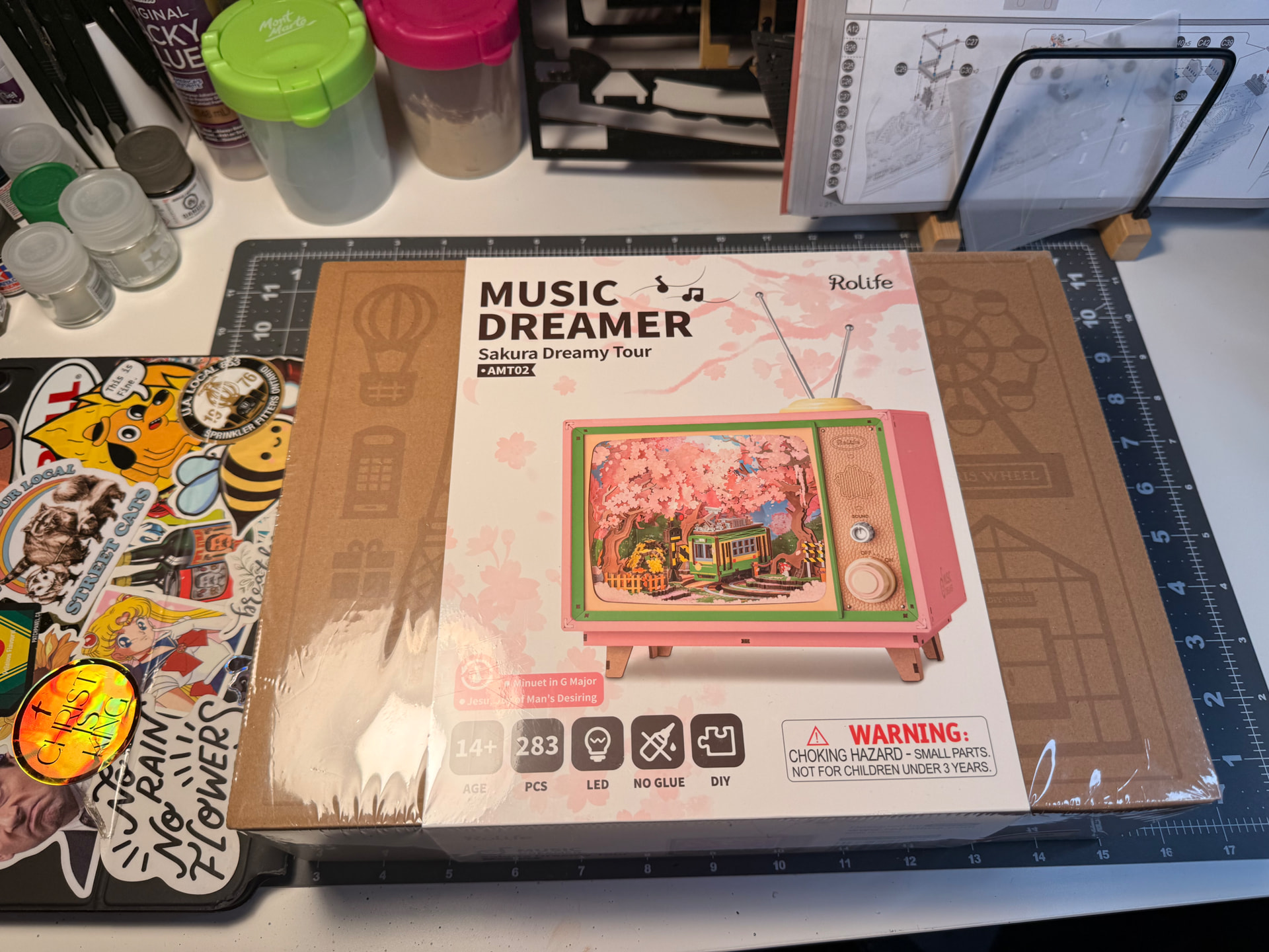 So I open the box. The scent of fresh wood and paper rises. Petals seem to drift before a single piece is even placed. I take a breath, pick up my paint brush, and step gently into this new little world.