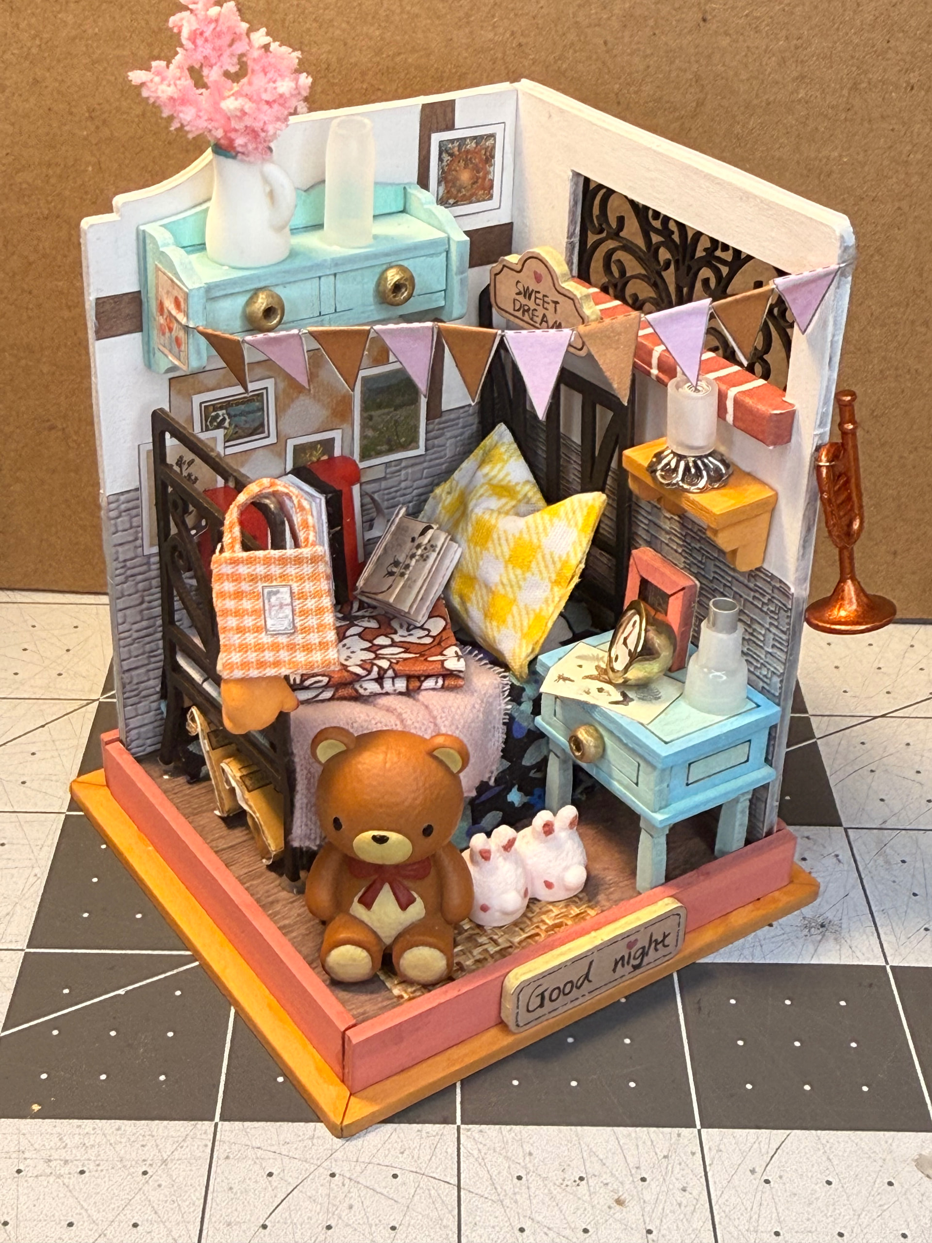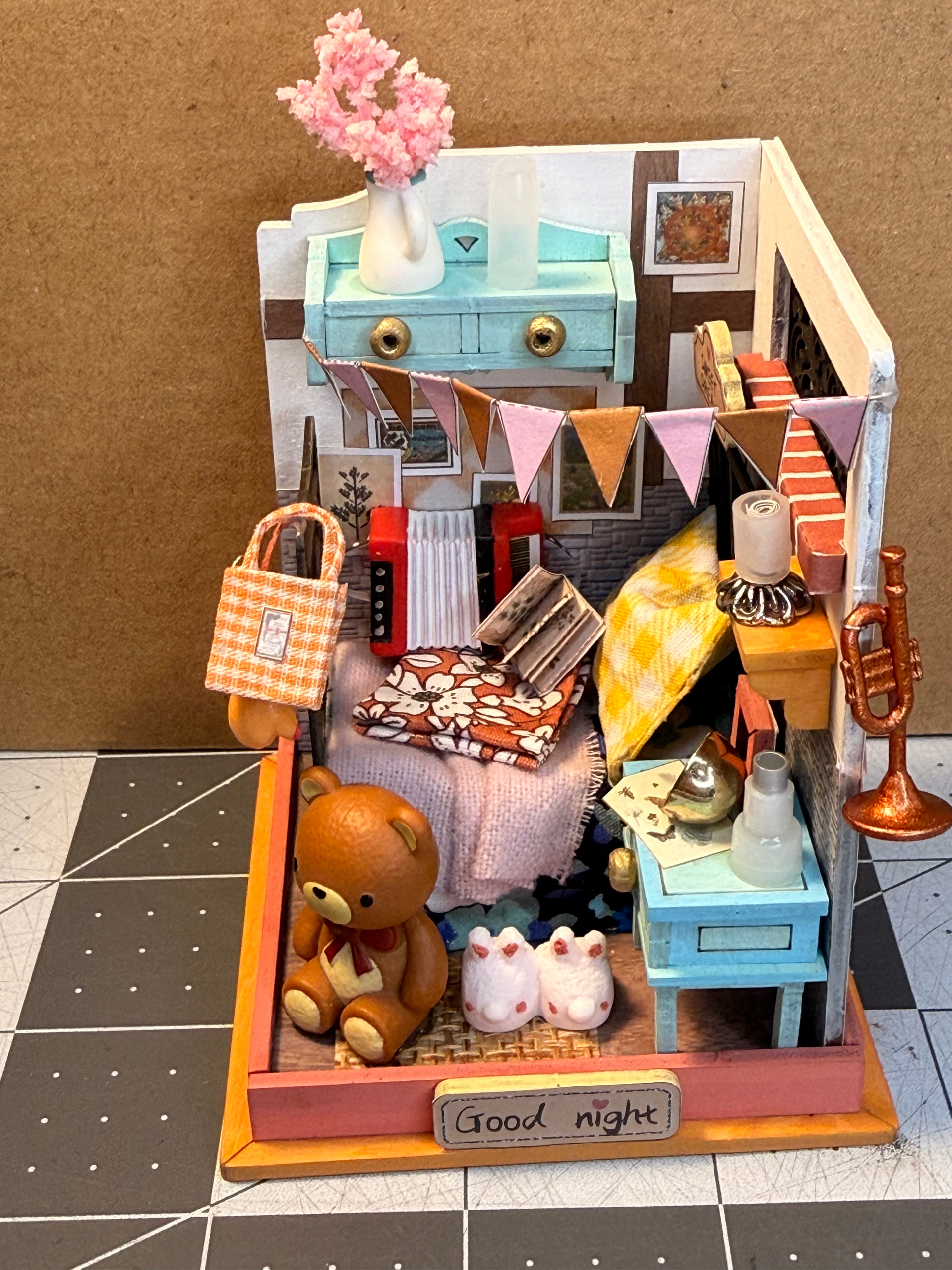 I truly believed I was signing up for a quick, cozy one hour build. Instead, I found myself cutting, painting, and gluing every tiny piece, two evenings in a row. A small kit with a big personality.