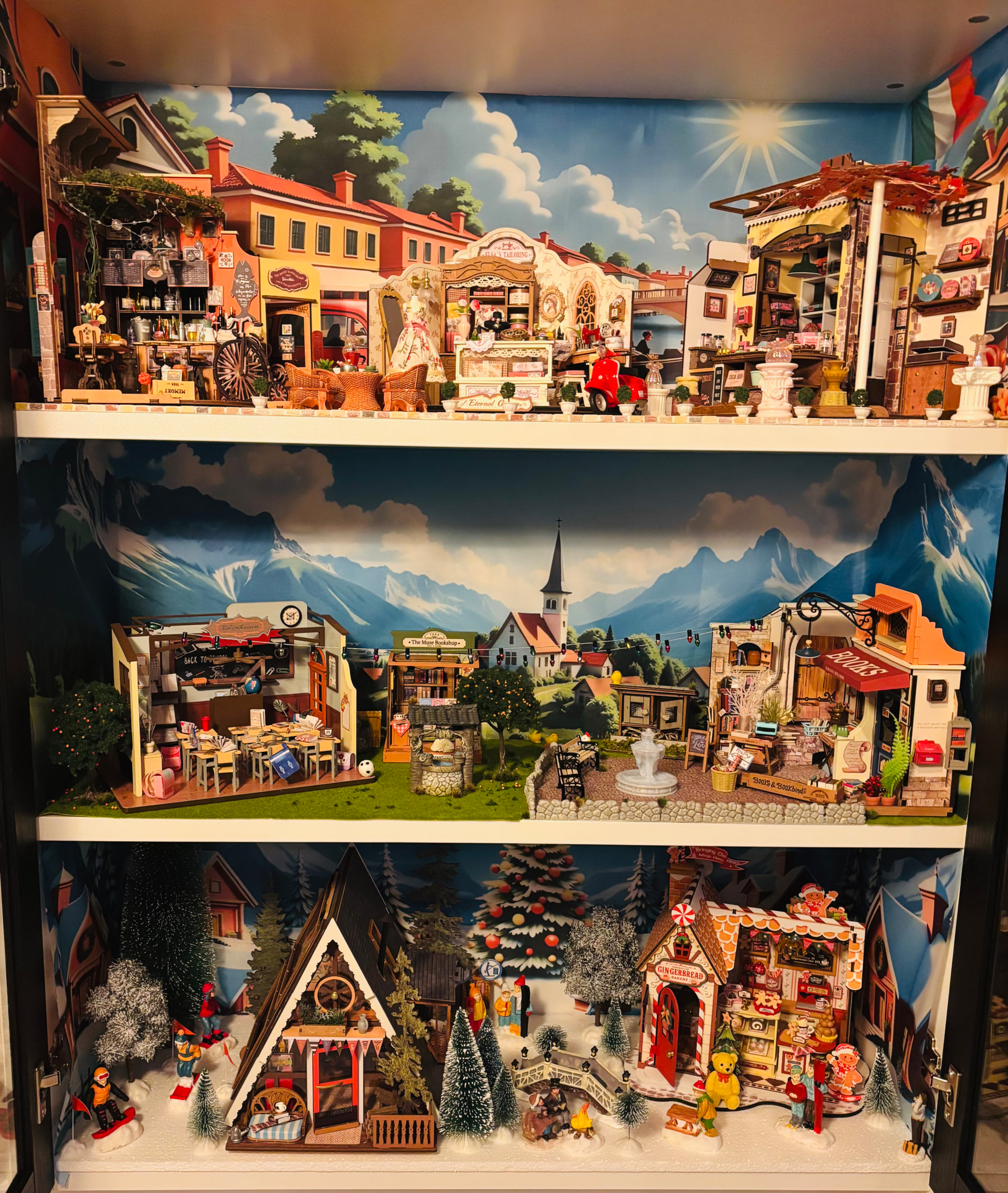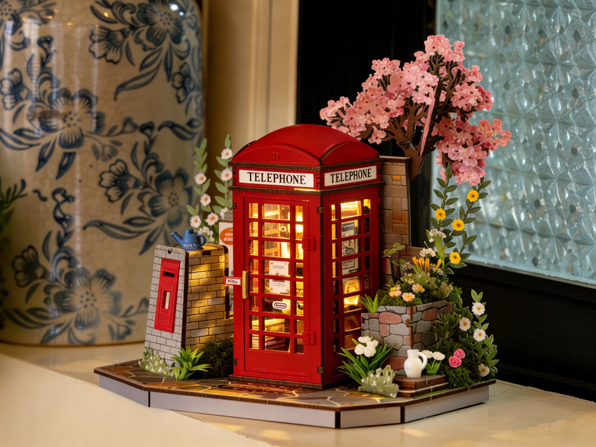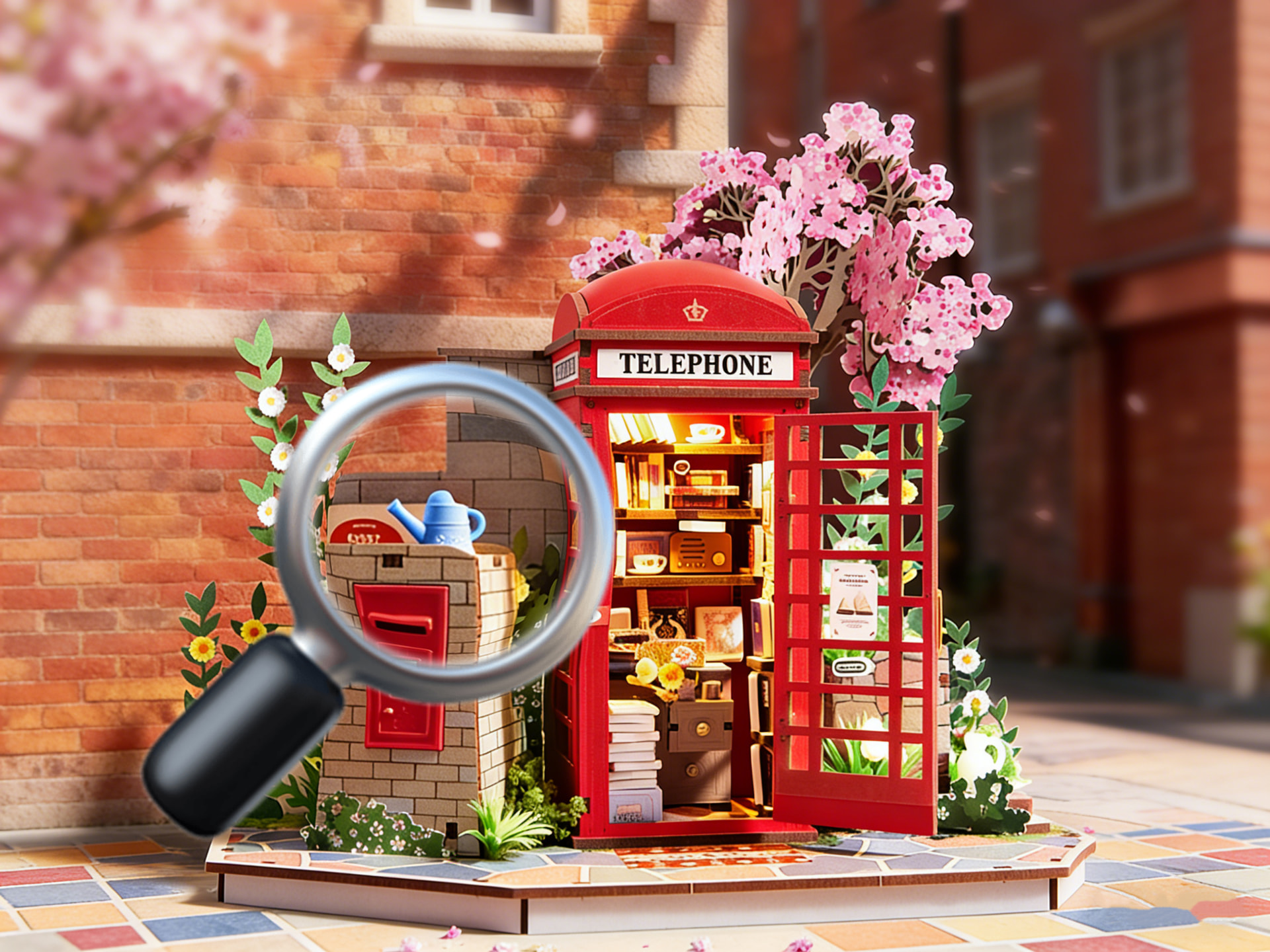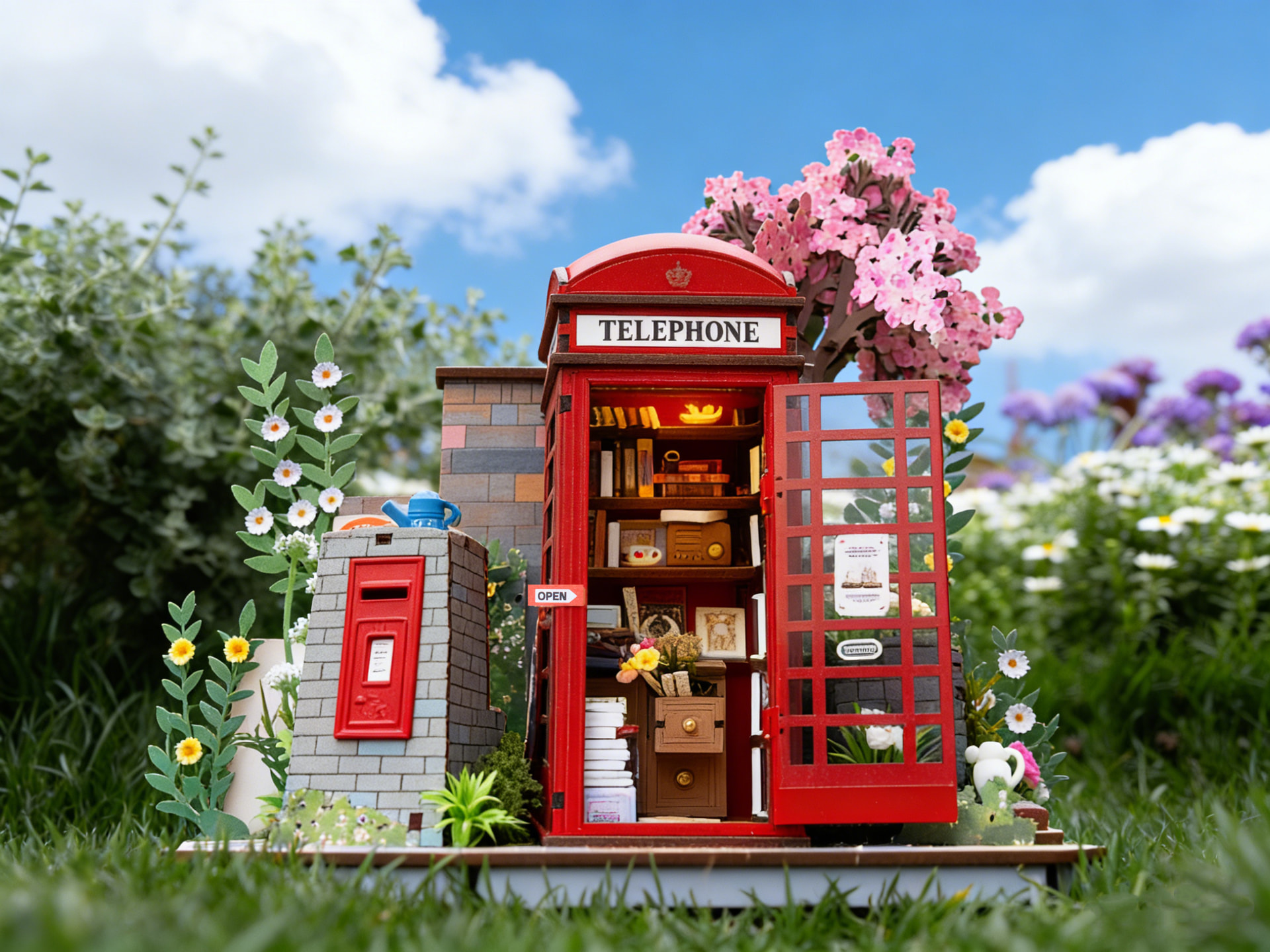 Step into this miniature book Booth, and you’ll discover a tiny world gently wrapped in time. The iconic red building is reimagined as a shared reading space: flowers climb along the shelves, and a soft amber glow flows through every corner, like a quiet, undisturbed afternoon in a Nordic town.![]()