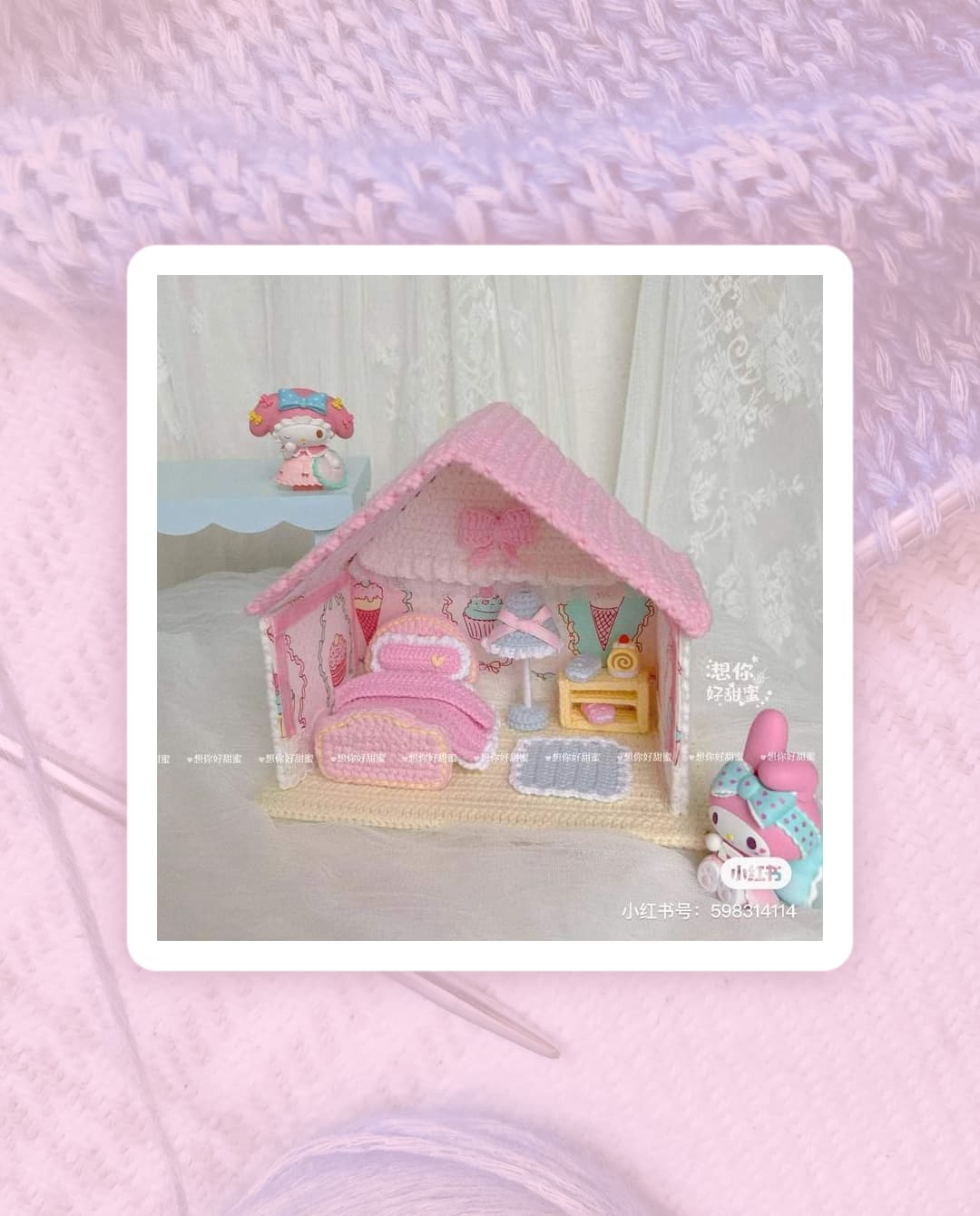 - Knitted furniture and home décor. A rug, a blanket, or a pillow made from mini granny squares can add coziness and the atmosphere of a real home to your miniature interior. You can also knit the furniture itself — for example, little cabinets with books.